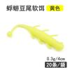 Yellow-jiangdou tail soft bait 20 pieces/pack, Pink-jiangdou tail soft bait 20 pieces/pack, White-jiangdou tai...