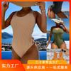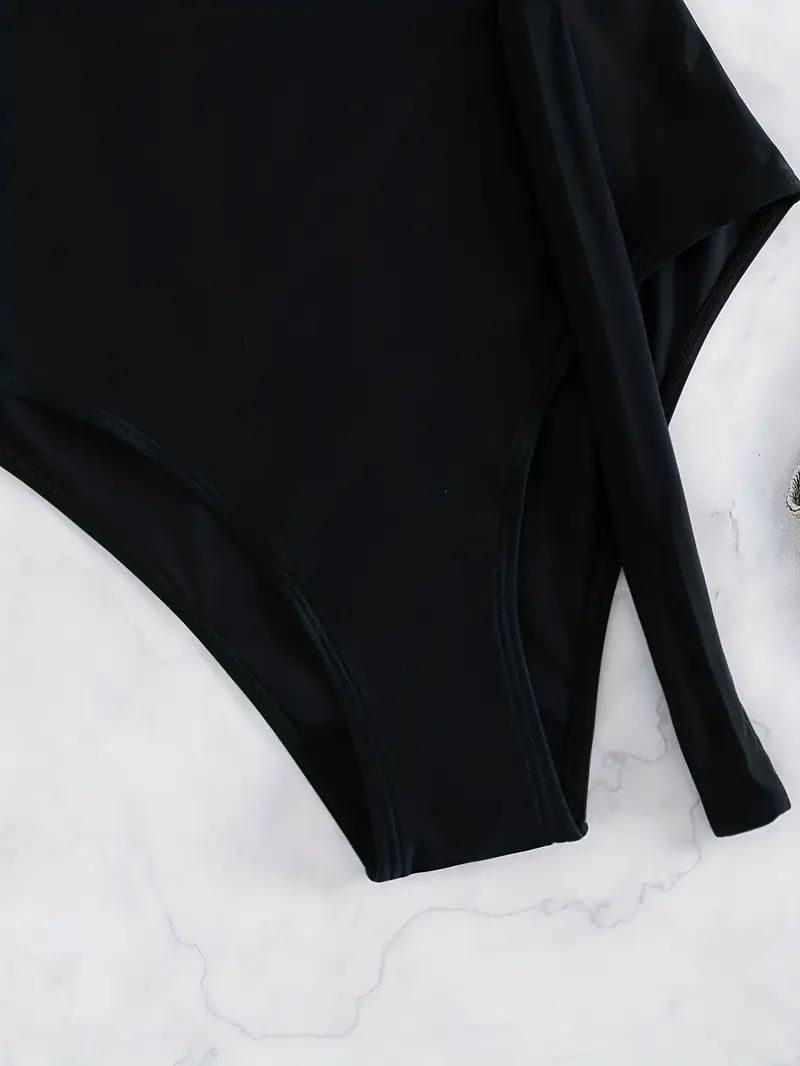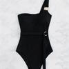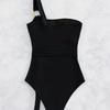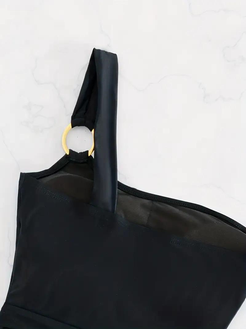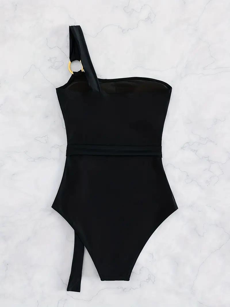 Traje de baño de una pieza sexy de alta calidad, de color sólido, estilo europeo y americano, con un solo hombro, adelgazante y diseño de anillo conservador, 2024