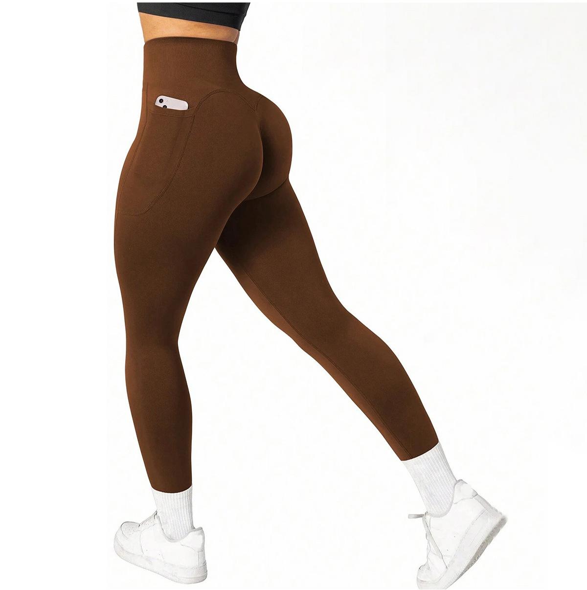 Pantalones de yoga de color sólido para mujer, calzas de cadera descubiertas, para correr, montar, deportes, fitness