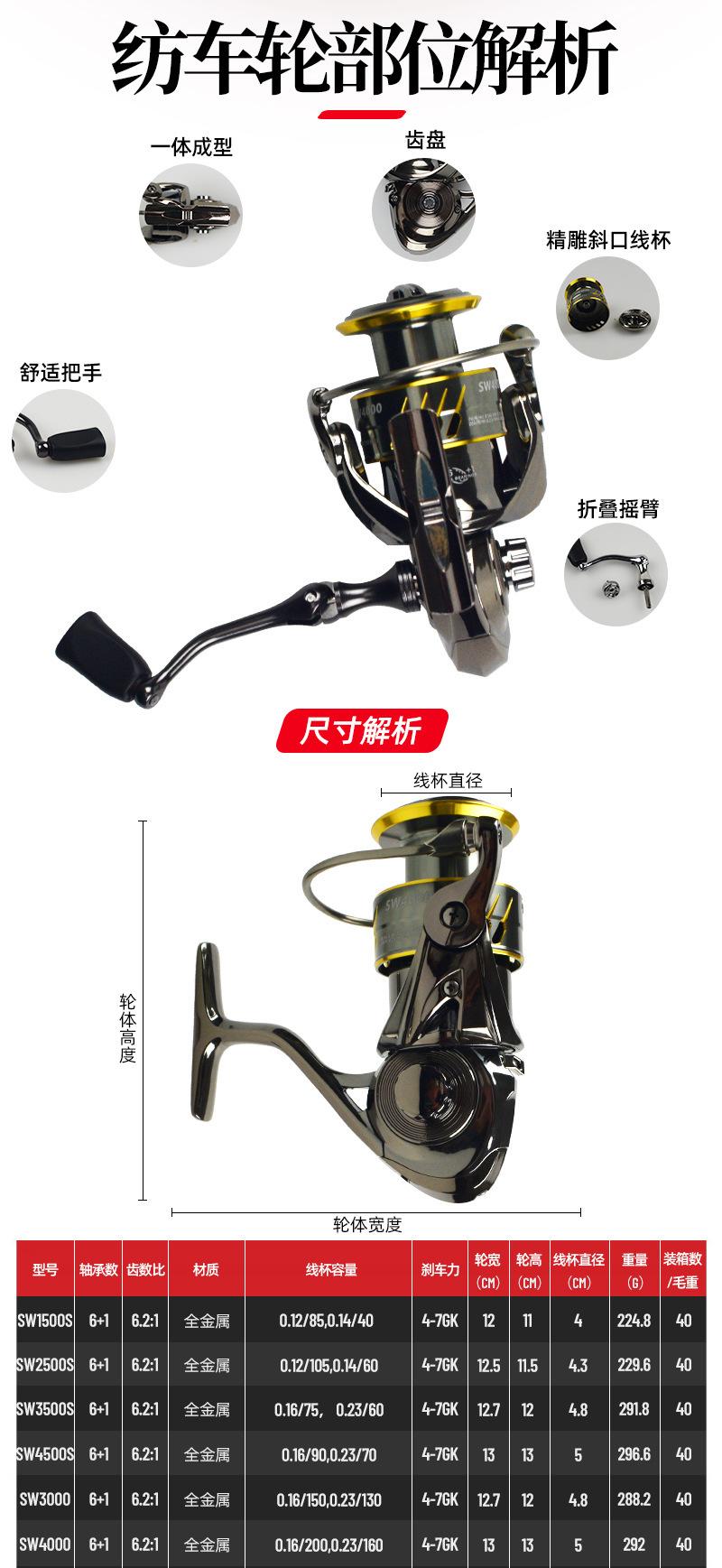 SW Rueda giratoria de metal, de acero inoxidable, resistente al agua de mar, con microobjetos, rueda de pesca Luya, rueda de pesca, rueda de pesca, equipo de pesca al por mayor
