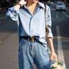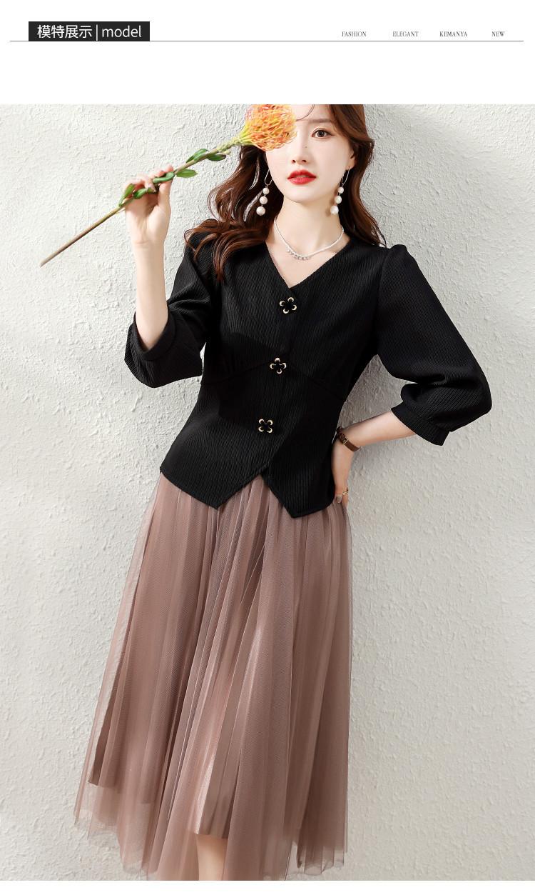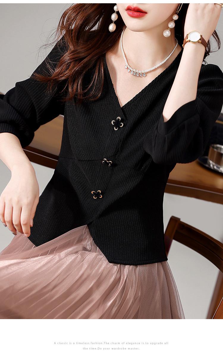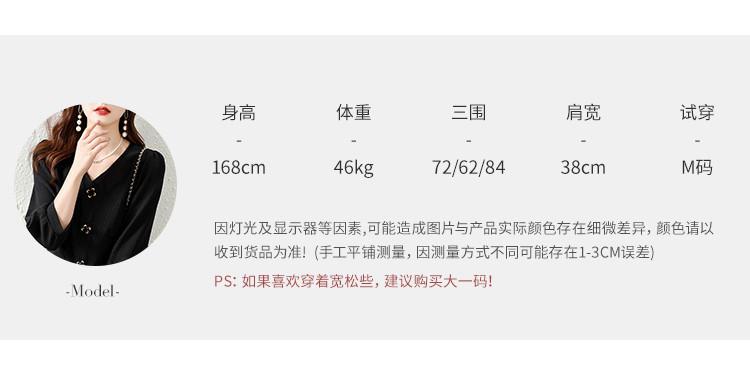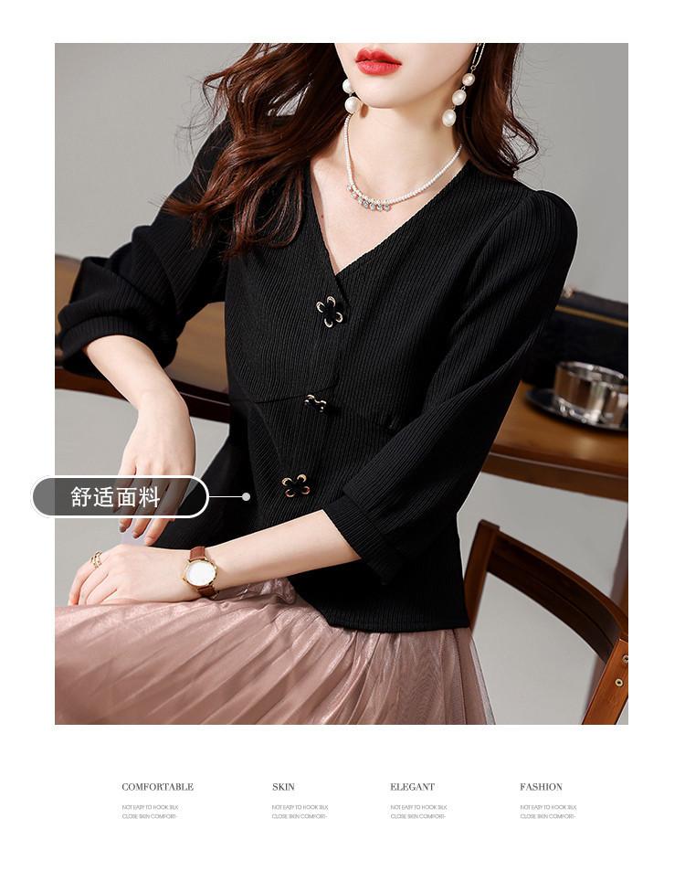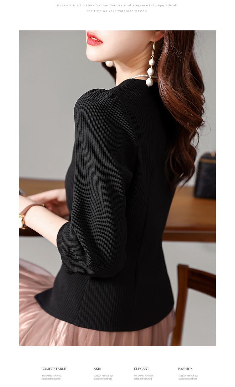 Diseño Nicho Camisa para Mujer Primavera 2025 Nueva Manga Tres Cuartos Cuello V Estilo Occidental Negro Ajustado a la Cintura Look Adelgazante Top Trendy