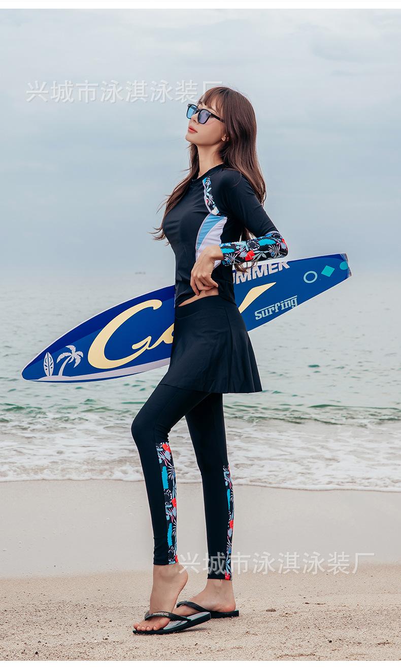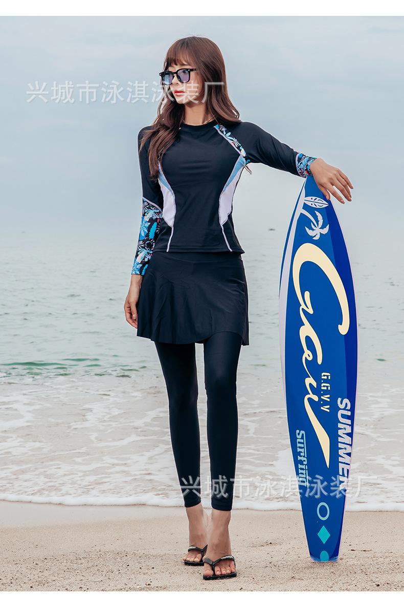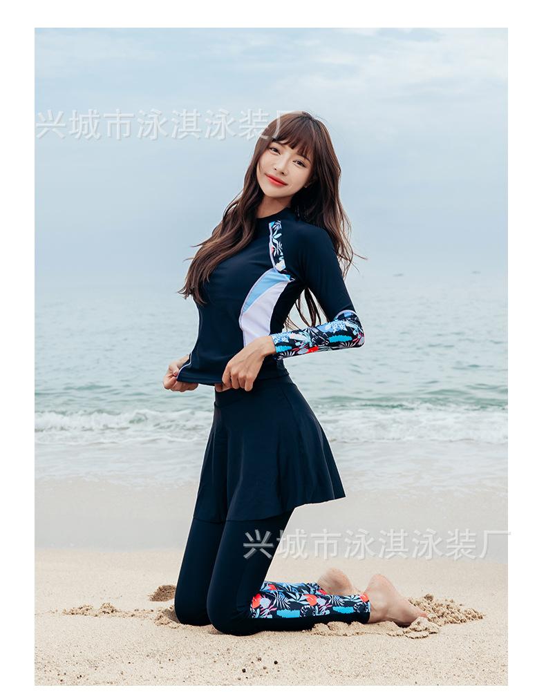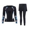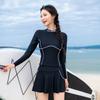 Traje de baño de manga larga ajustado con protector solar, de secado rápido y con falda dividida, ideal para practicar snorkel, surf y buceo.