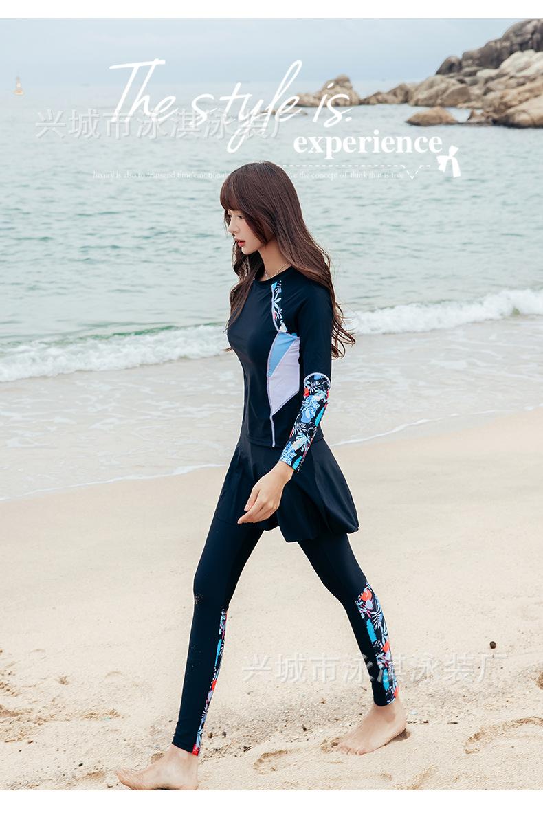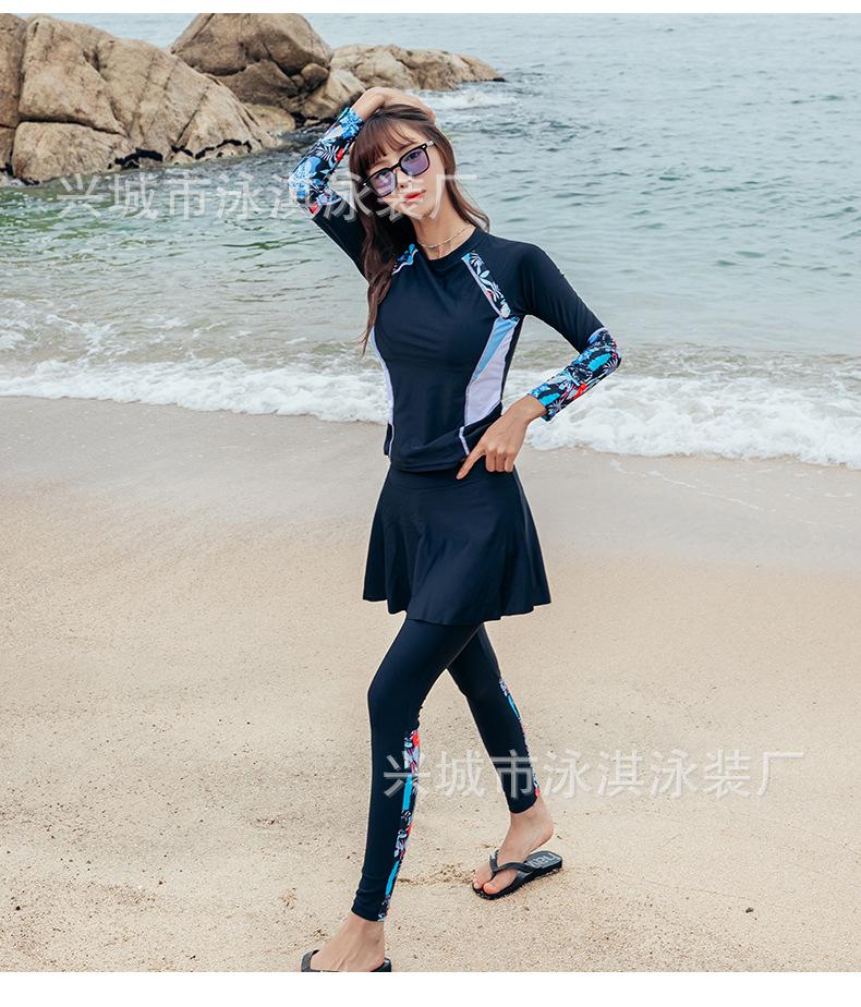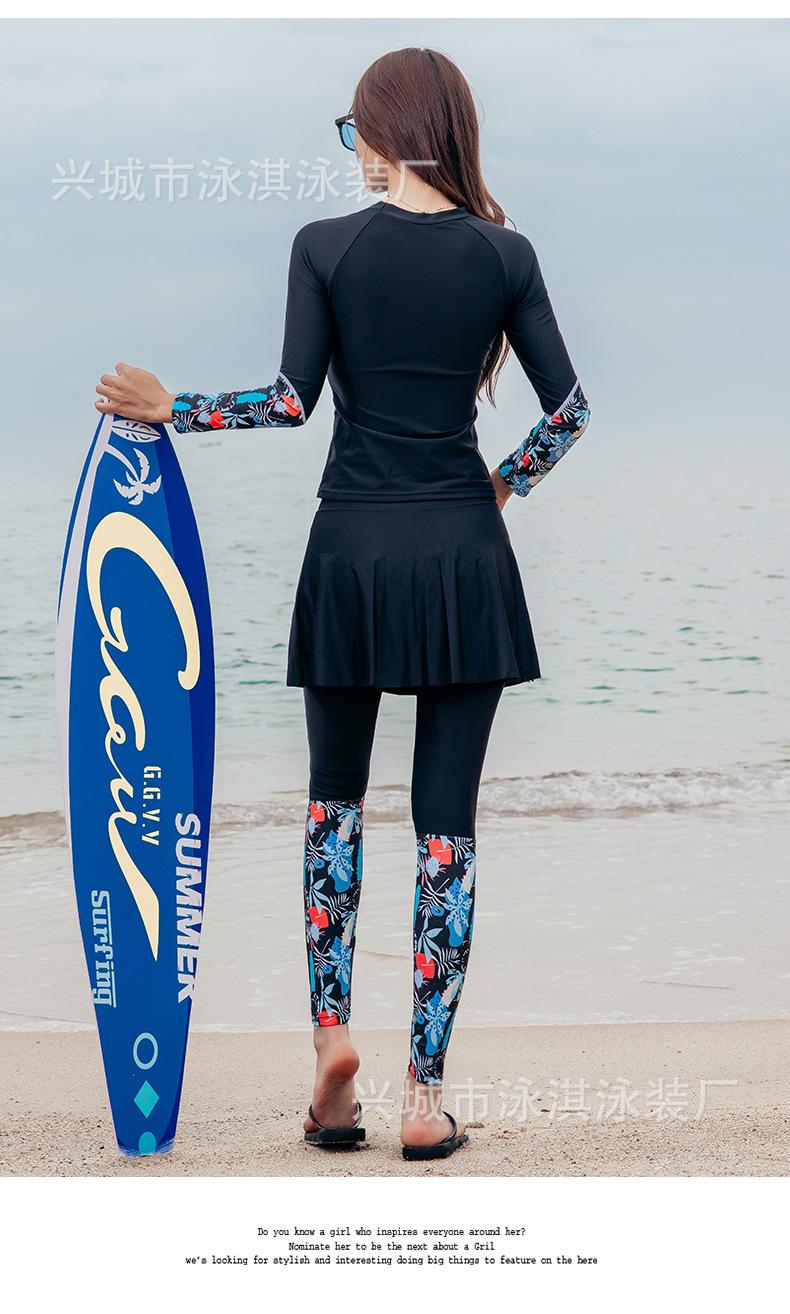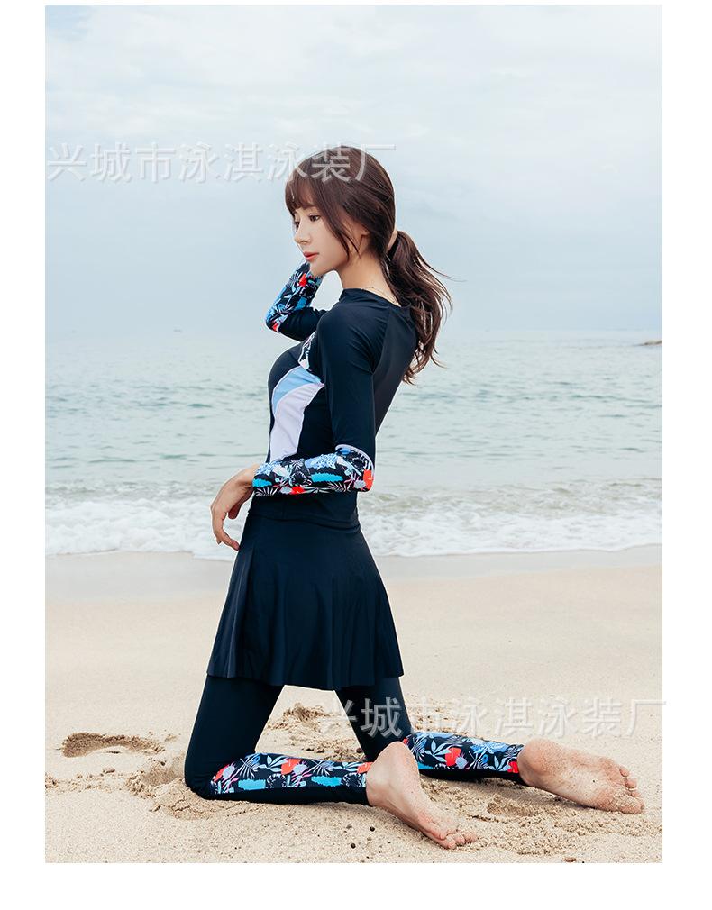 Traje de baño de manga larga ajustado con protector solar, de secado rápido y con falda dividida, ideal para practicar snorkel, surf y buceo.