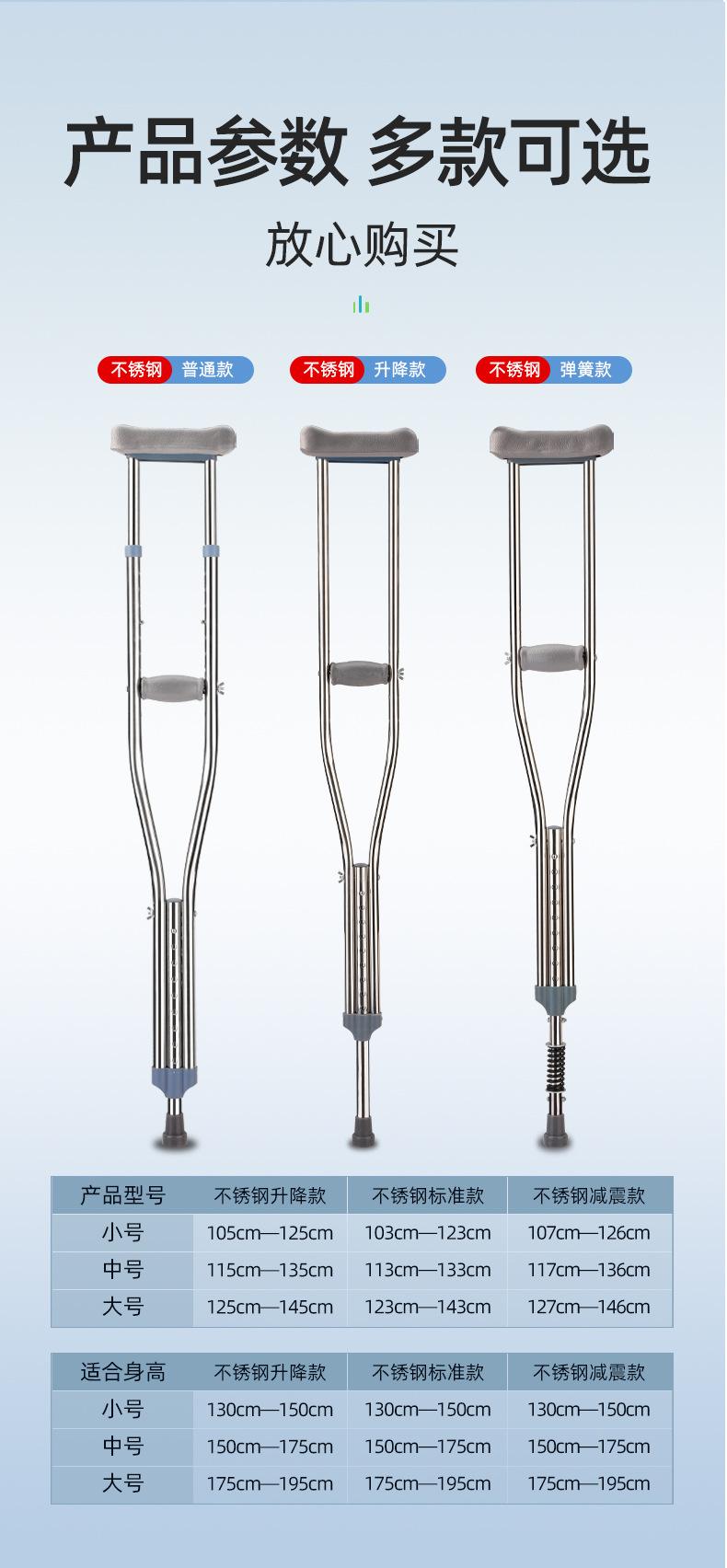 Compra Muletas de acero inoxidable de fábrica, muletas axilares para adultos y niños, ajustables, para fracturas, para ancianos, muletas dobles engrosadas. al por mayor en Joom.pro