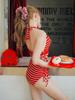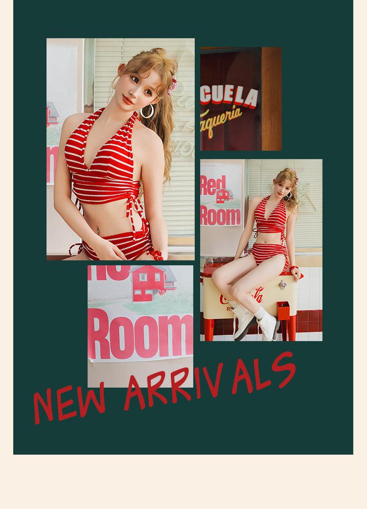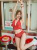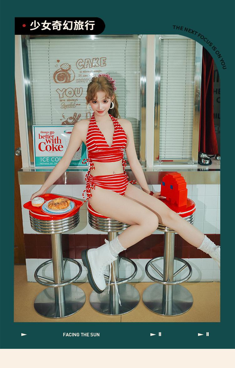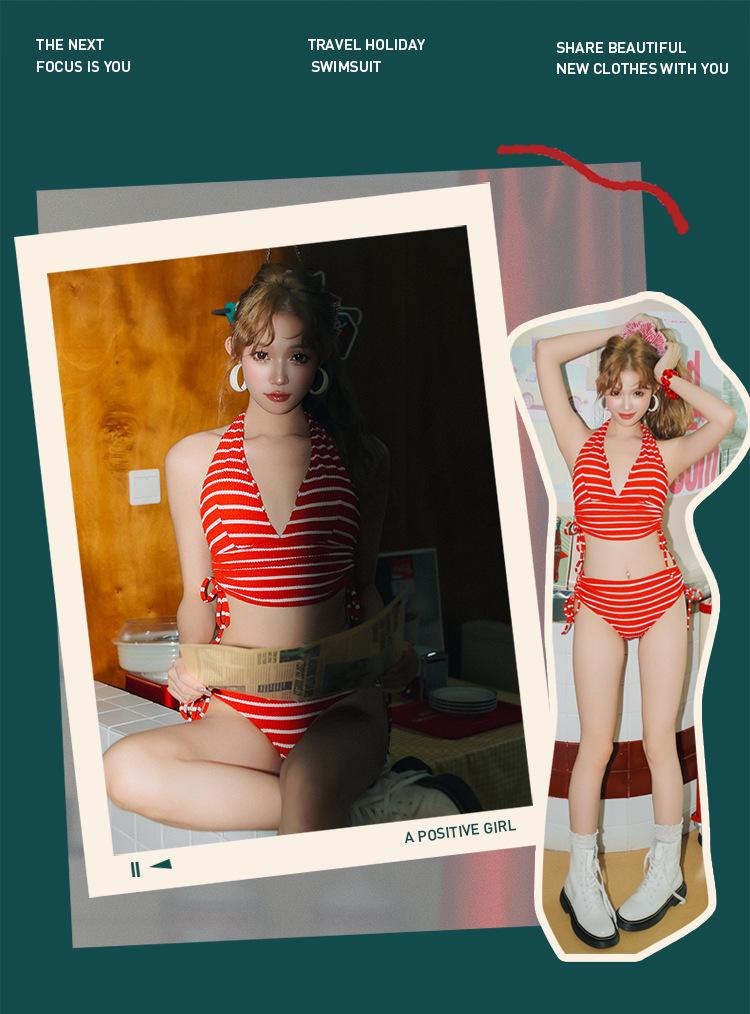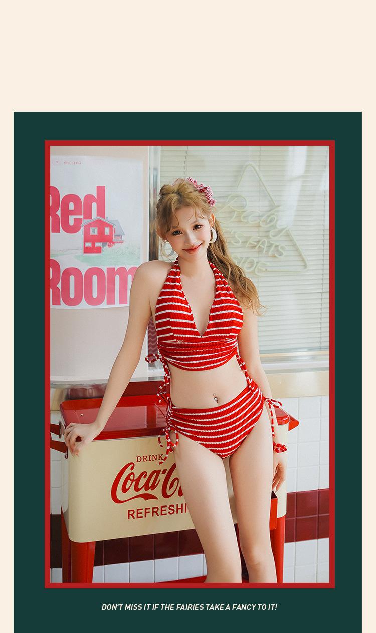 Traje de Baño Dividido de Nuevo Estilo Bikini Sexy para Mujer Raya Roja Traje de Baño Dulce de Playa para Niña Estilo Vacacional para Mujer