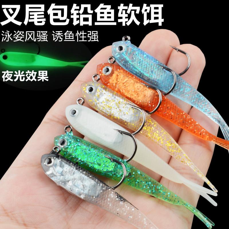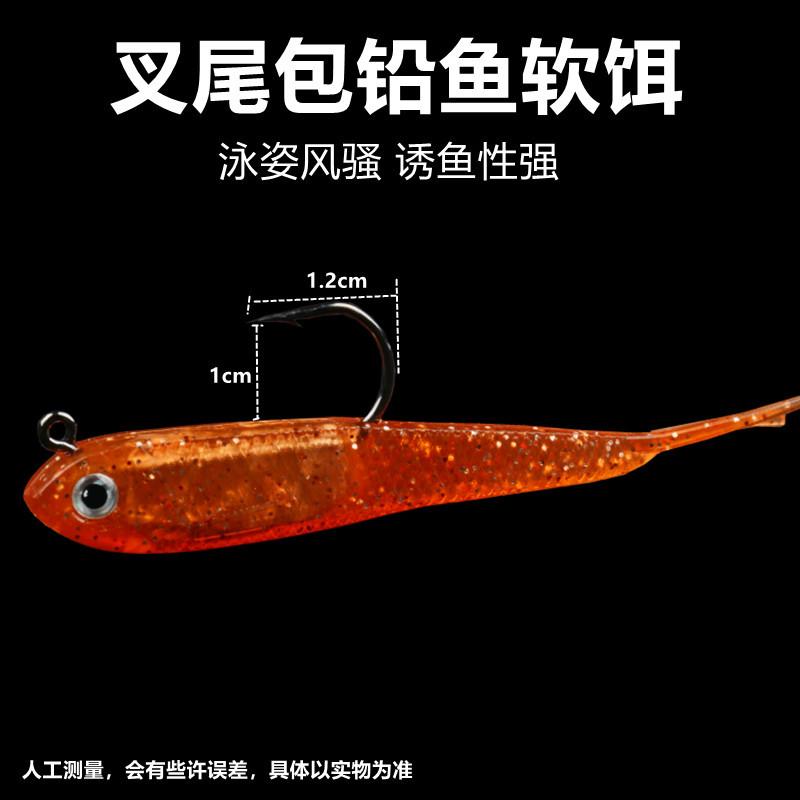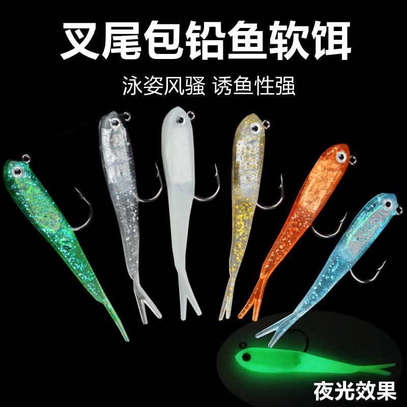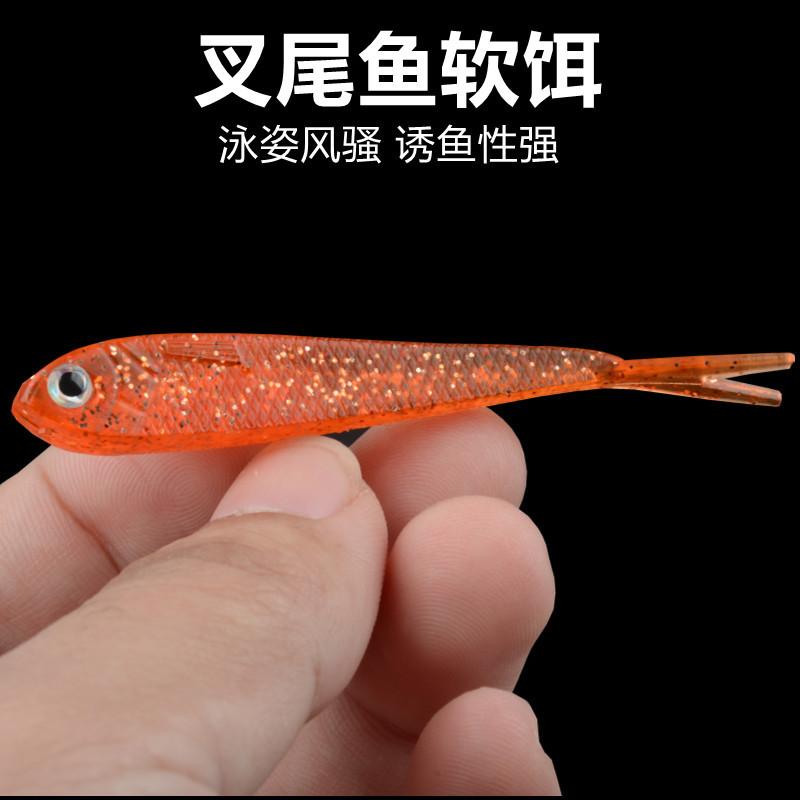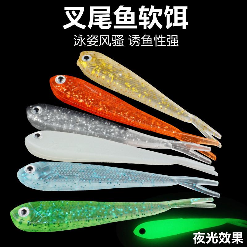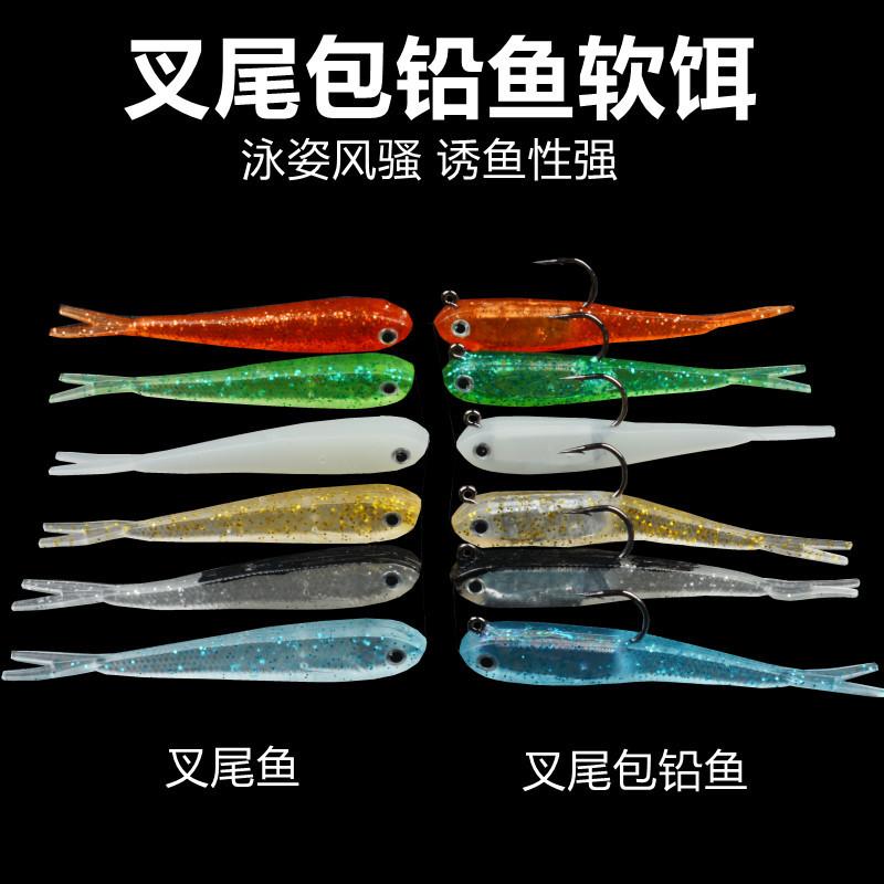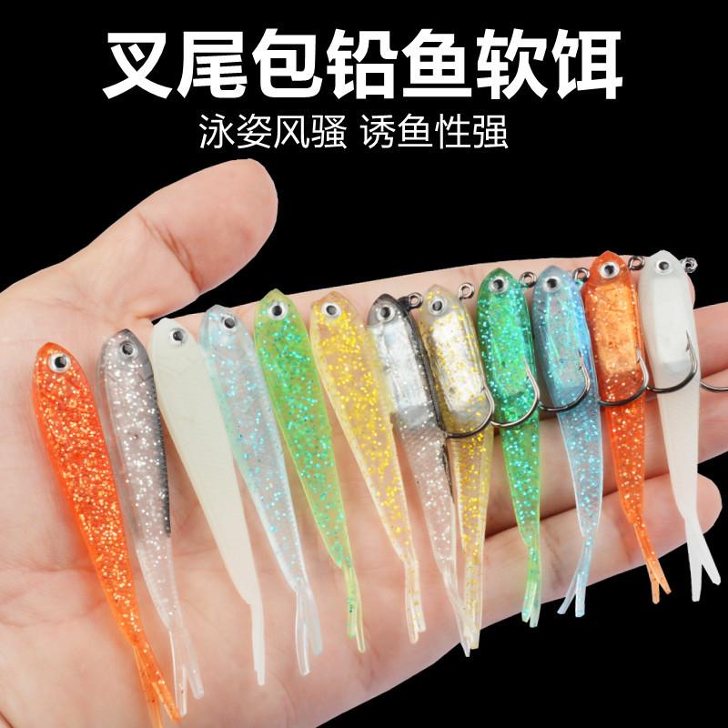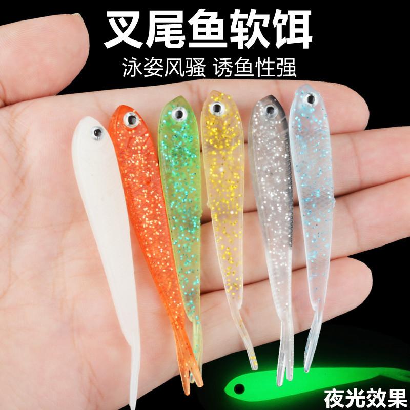 Bolsa de peces de cola de horquilla, anzuelo de plomo, cebo blando, cebo falso, cebo Luya, pez gris pequeño, pez de color pequeño, cebo blando biónico de cola de horquilla, simulación al por mayor