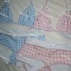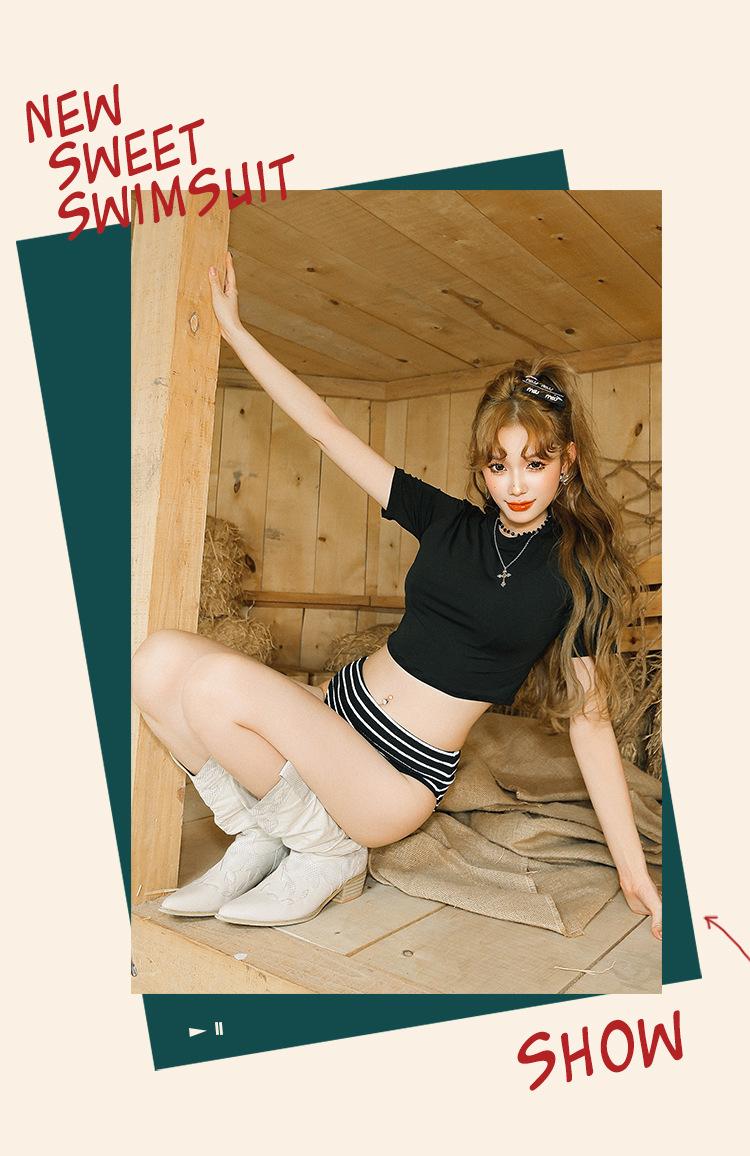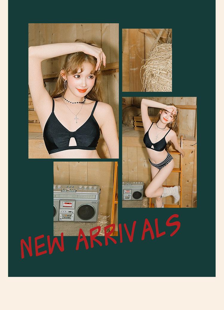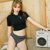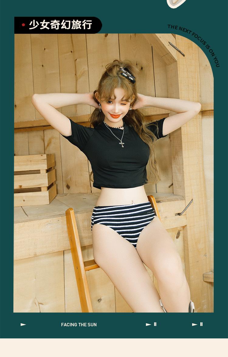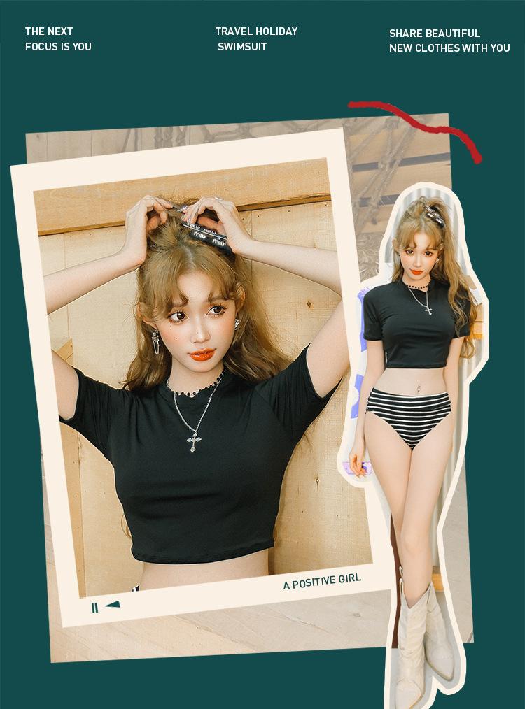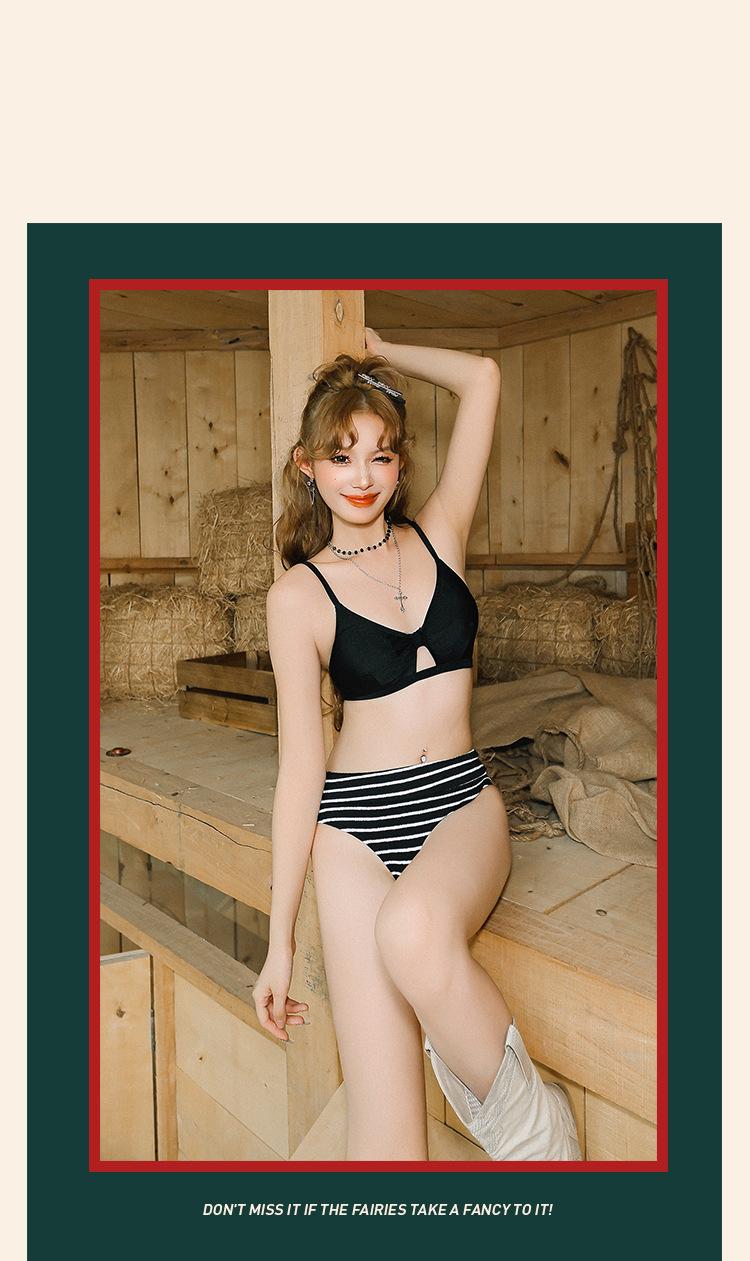 Bikini de tres piezas con abertura y diseño de rayas vintage para mujer, estilo sexy, con pecho pequeño y sencillo