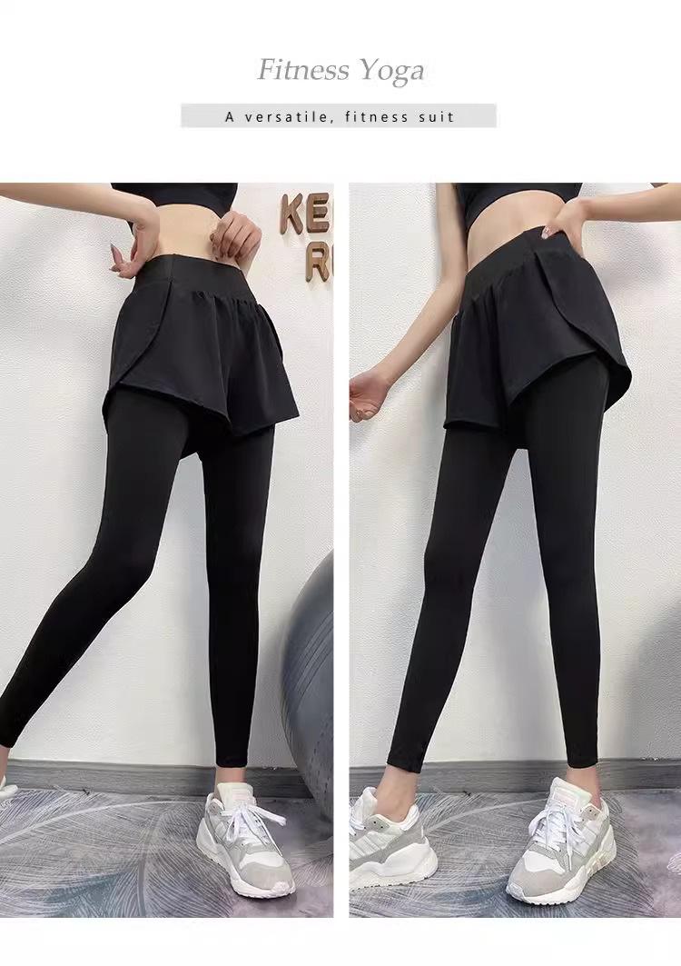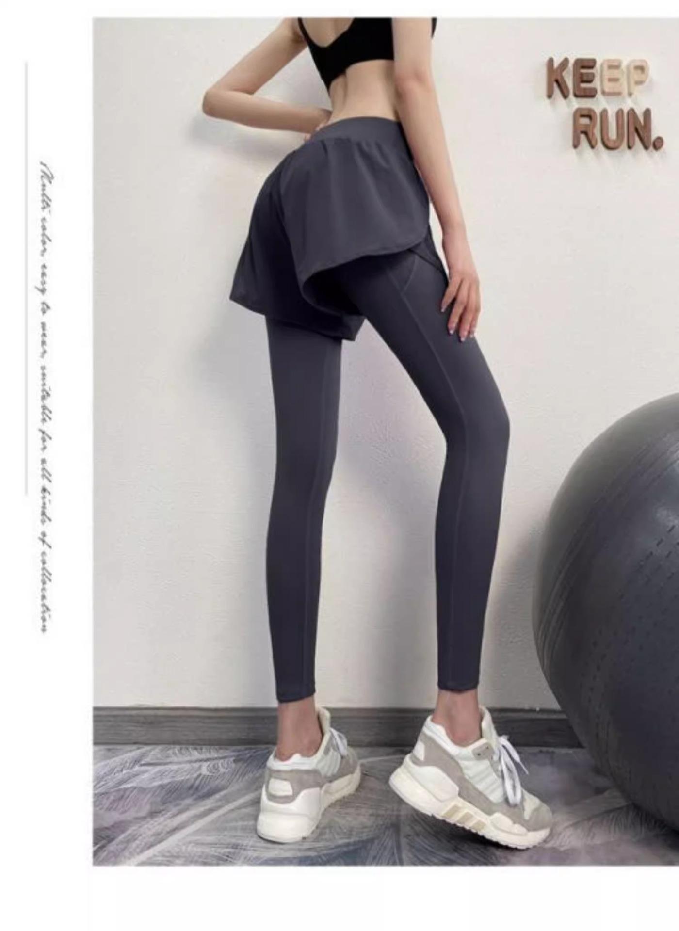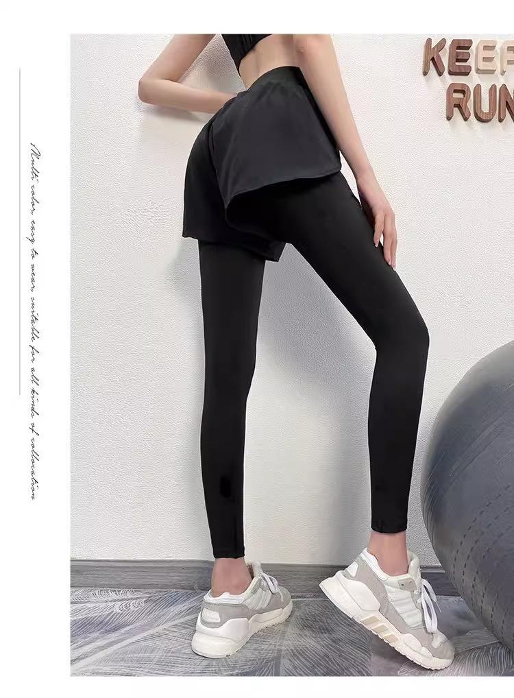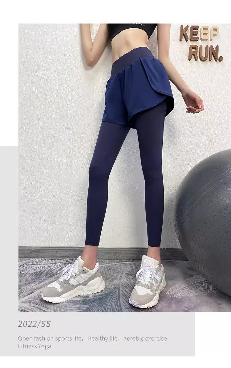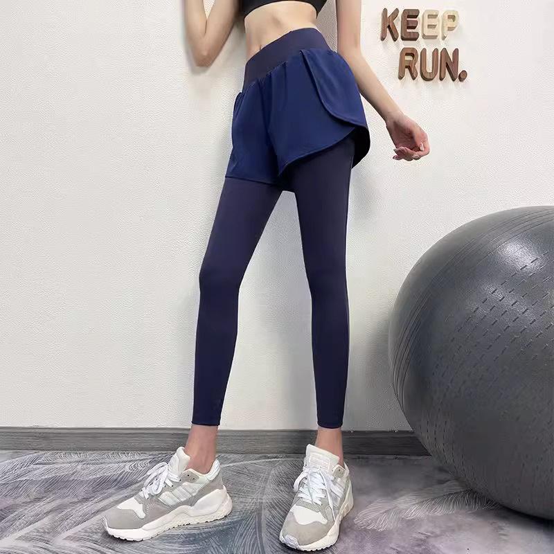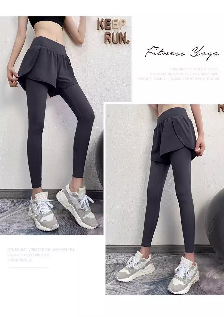 Fitness de Primavera, Correr, Entrenamiento de Danza, Cintura Alta, Levanta Glúteos, Ajustados, Sensación Nude Cubre Glúteos Falso Dos Piezas Pantalones de Yoga