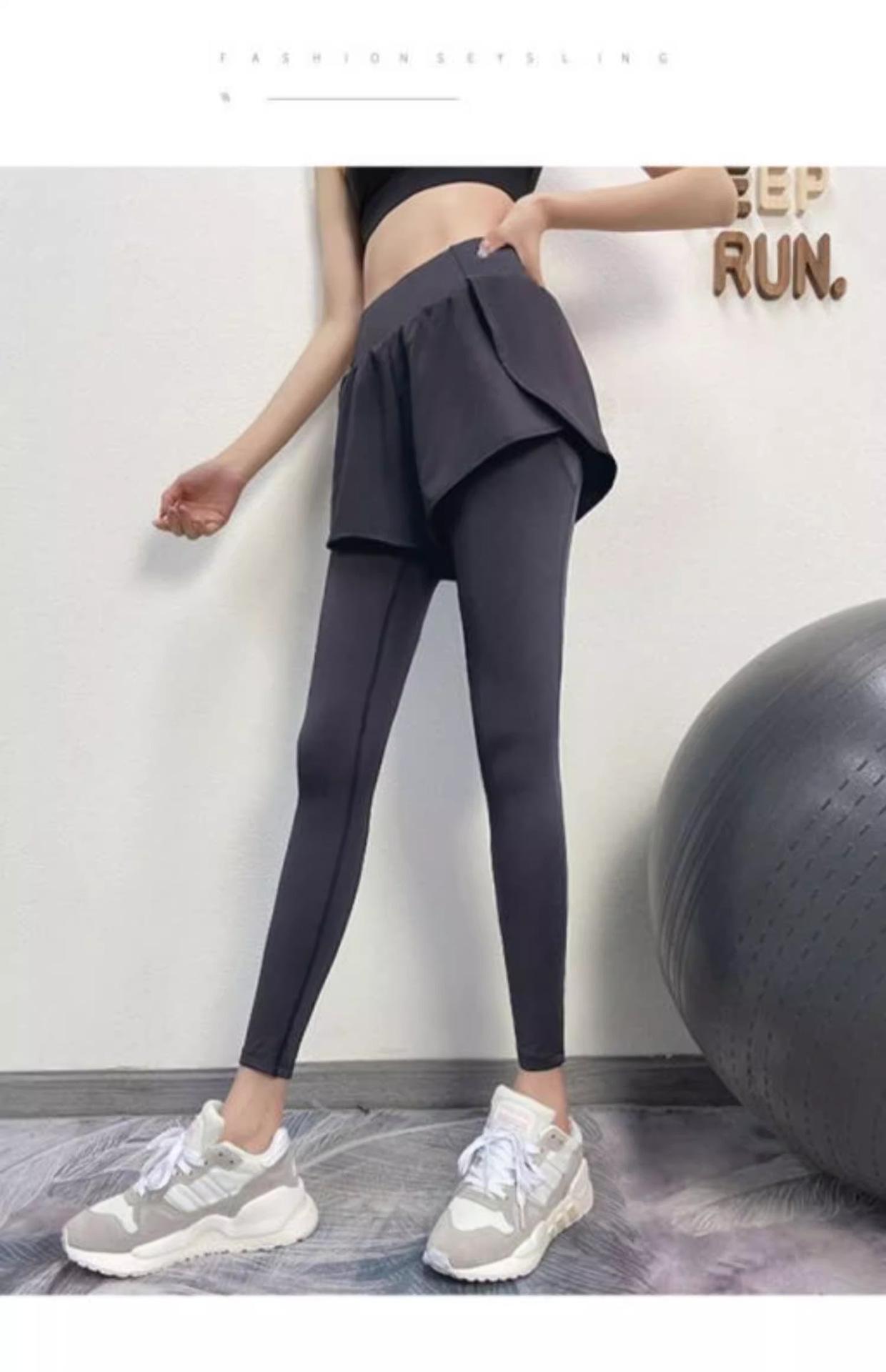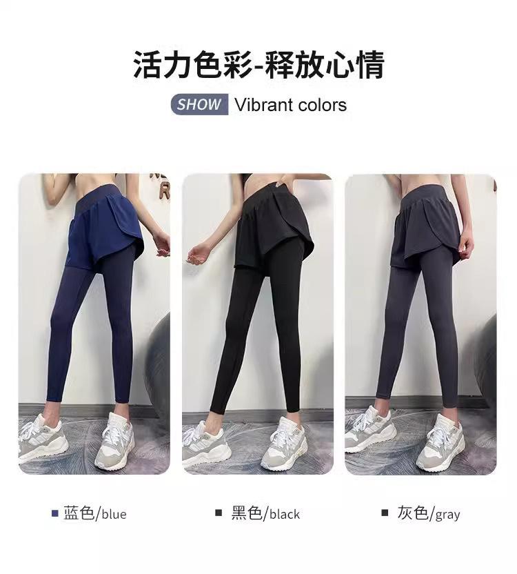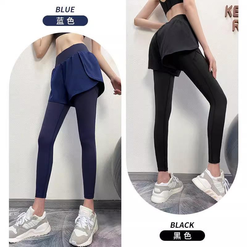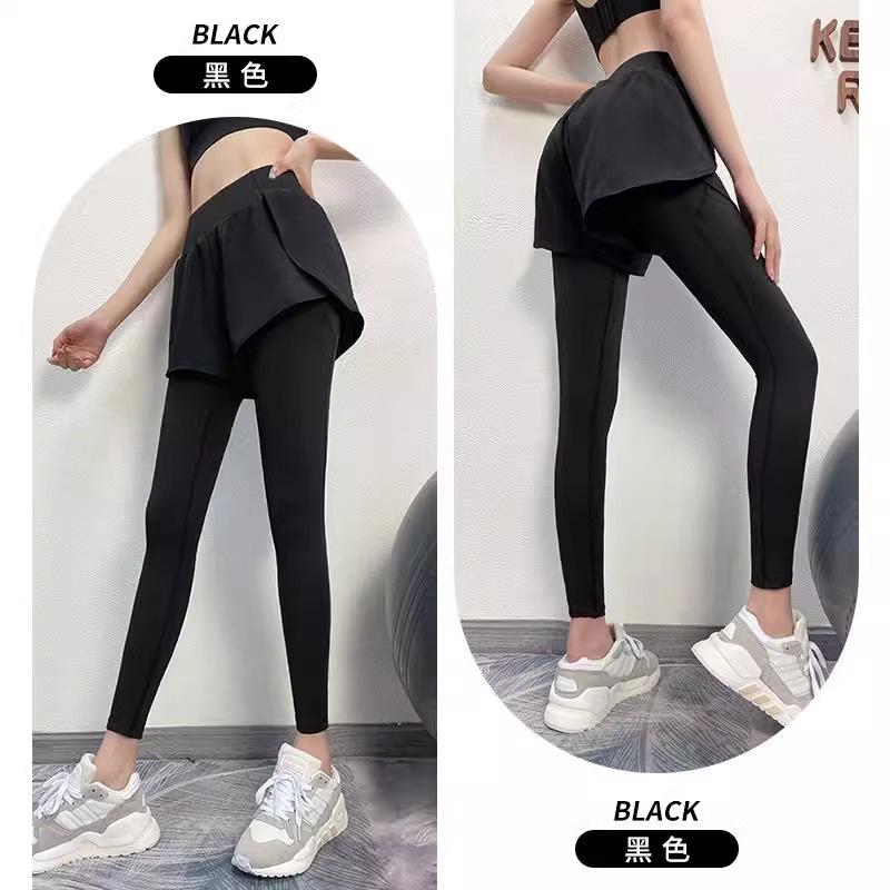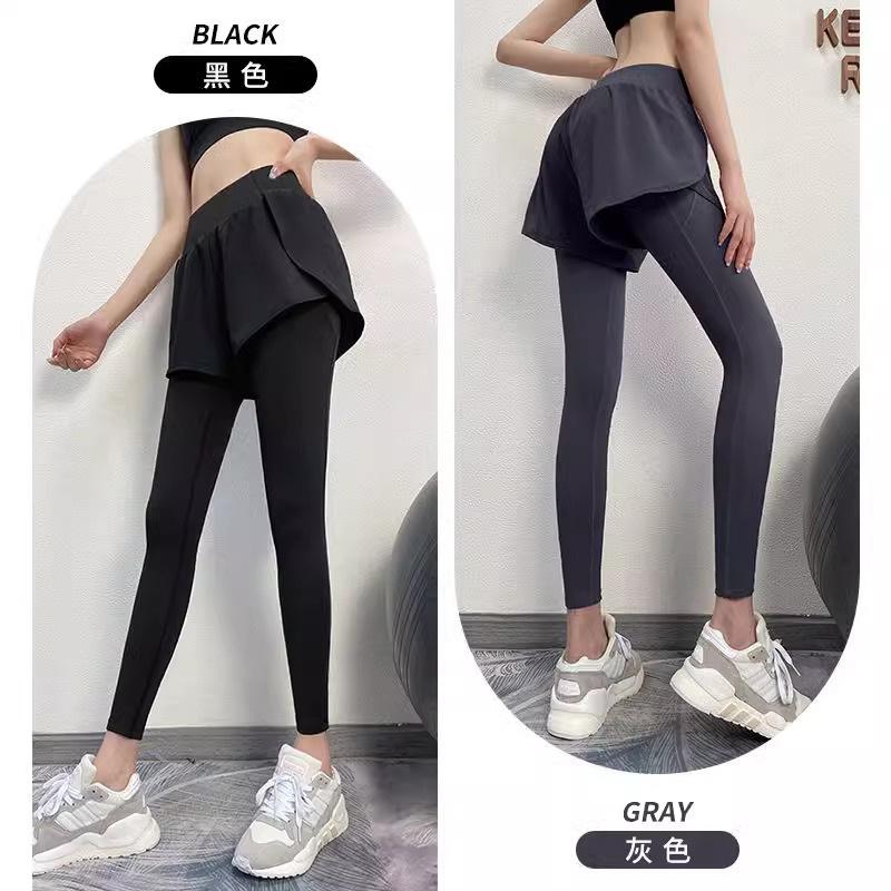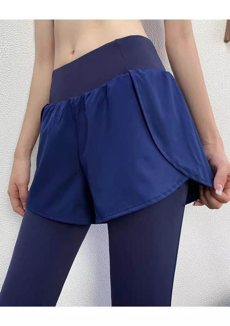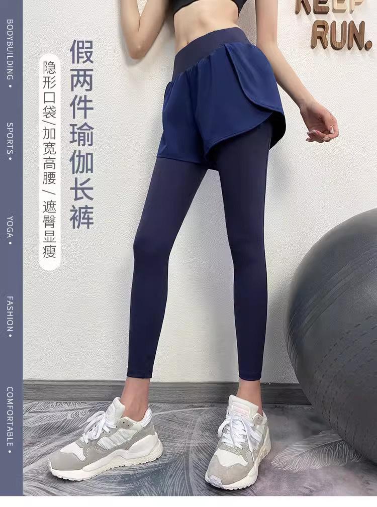 Fitness de Primavera, Correr, Entrenamiento de Danza, Cintura Alta, Levanta Glúteos, Ajustados, Sensación Nude Cubre Glúteos Falso Dos Piezas Pantalones de Yoga