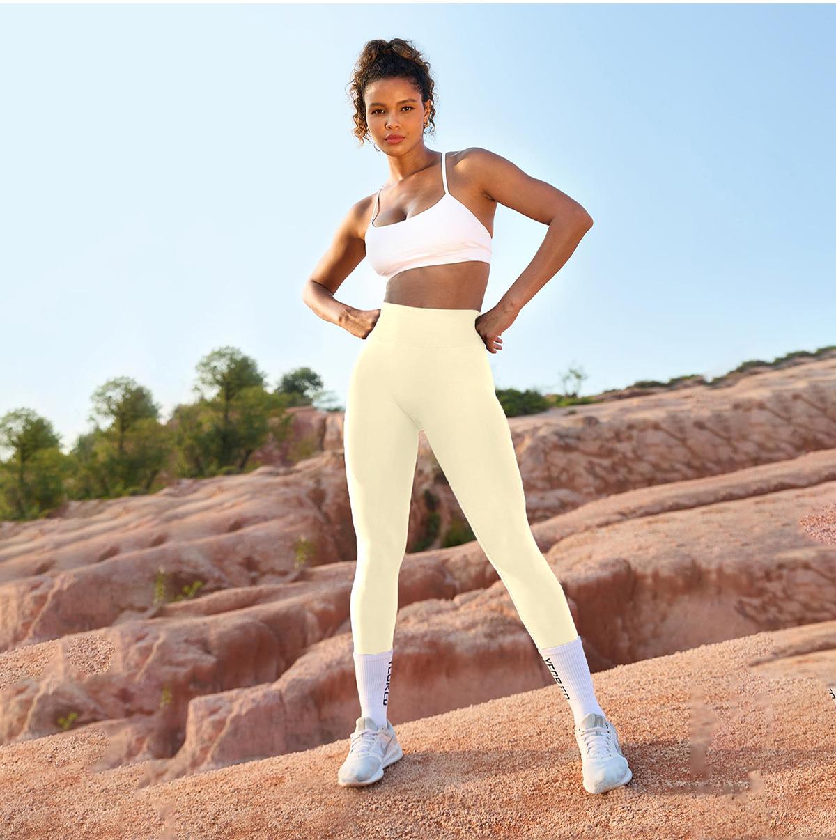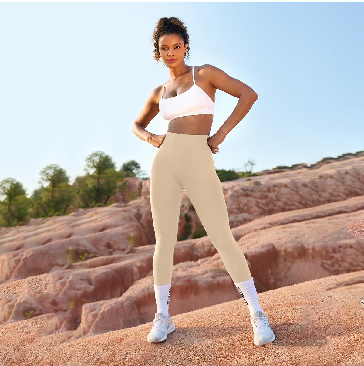 Pantalones deportivos de fitness nuevos, transfronterizos, europeos y americanos, sin costuras, con cintura en V, ajustados al vientre y a la cadera, para mujer, para correr al aire libre, de secado rápido, para yoga