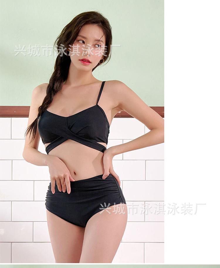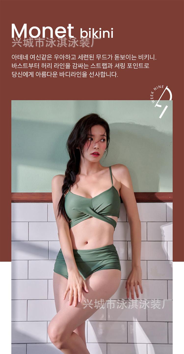 Traje de baño para mujer, estilo coreano, con abertura, push-up, bikini sexy con tirantes y cintura alta, que cubre el vientre y adelgaza las aguas termales.
