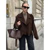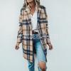 Compra rápida en eBay, otoño e invierno, nueva ropa transfronteriza para mujer, abrigo largo holgado de lana a cuadros con solapa 2022 para mujer