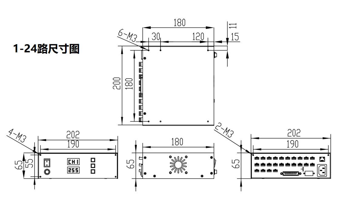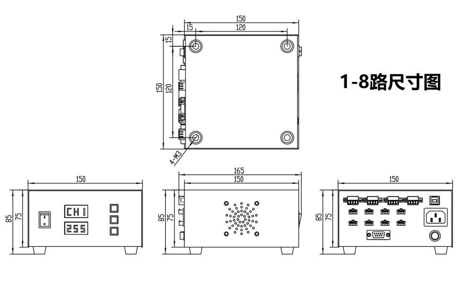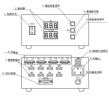 6. Operación simple, se puede ajustar mediante botones o PC, cada canal se puede controlar por separado, con 256 niveles de cambio de precisión, puede controlar el brillo de la fuente de luz