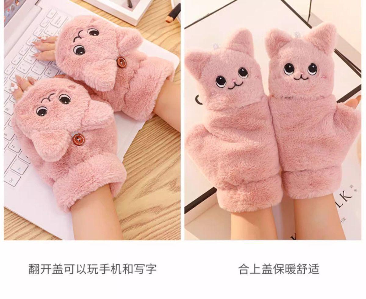 Cat style: [pink 1 pair in total] keeps you warm all day long, Cat style: [khaki, 1 pair in total] keeps you w...