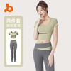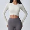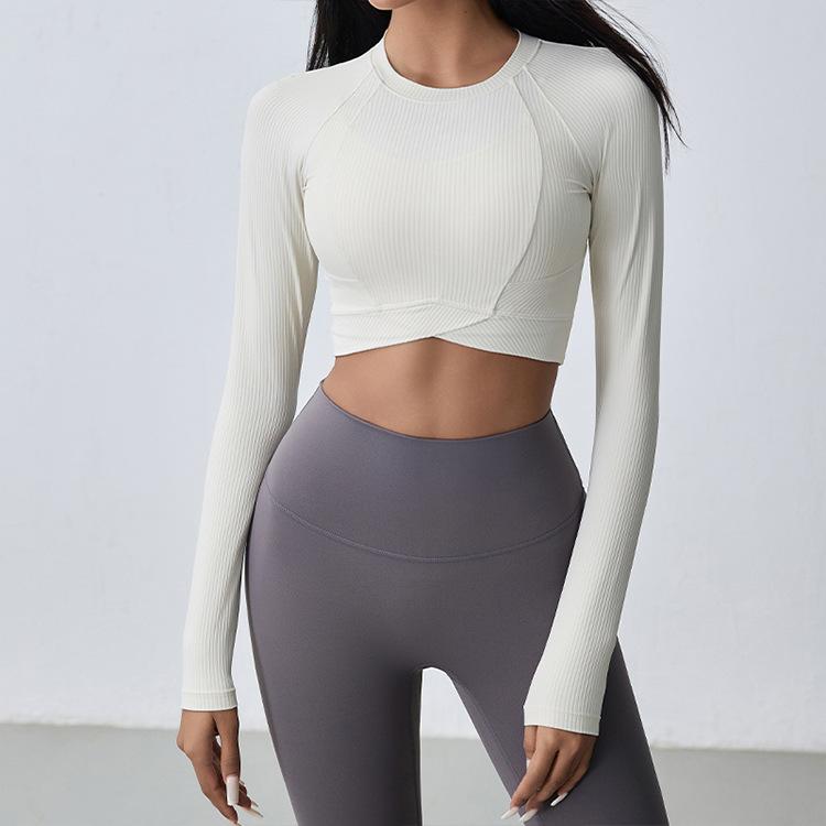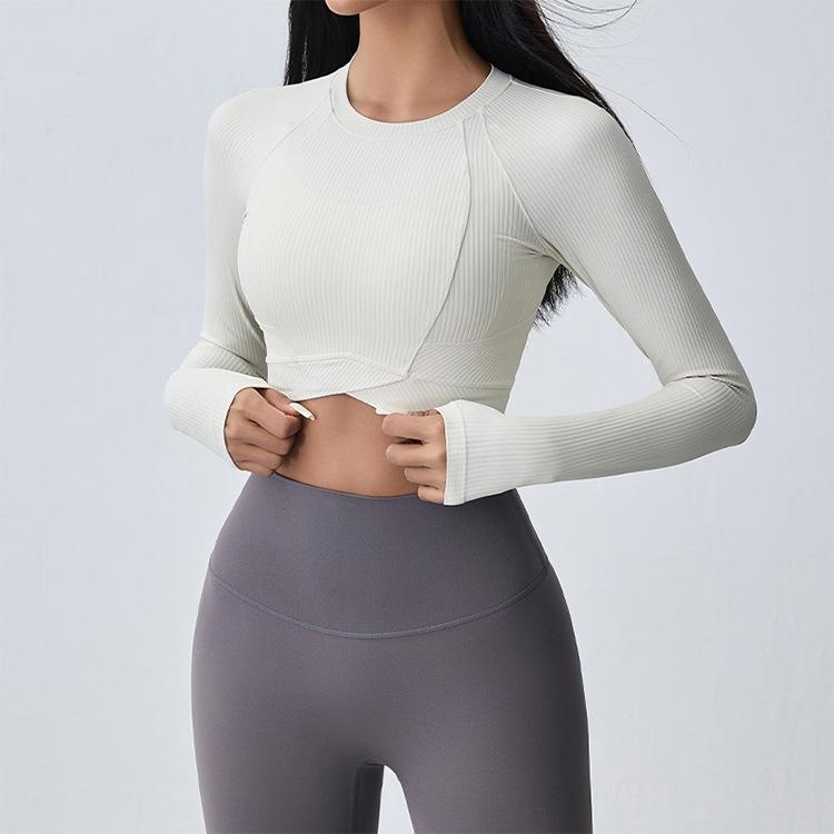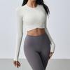 Traje de yoga Zheyan de manga larga con rosca y mangas raglán para mujer, con dobladillo cruzado, para entrenamiento y fitness, para correr, top deportivo de otoño