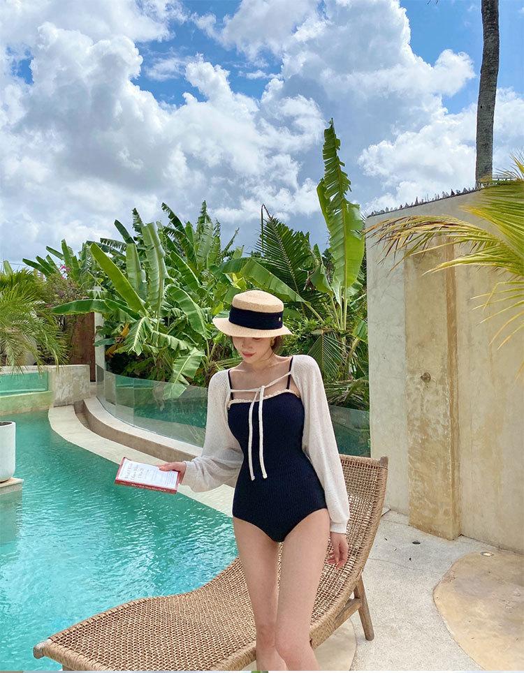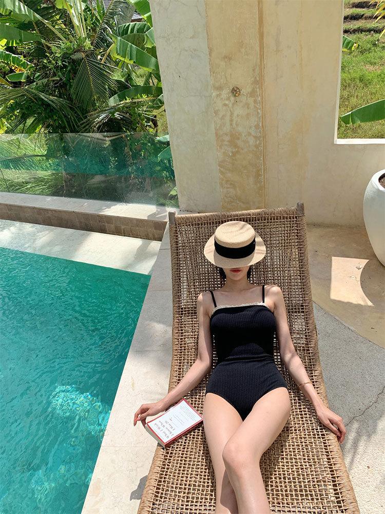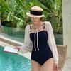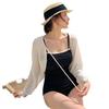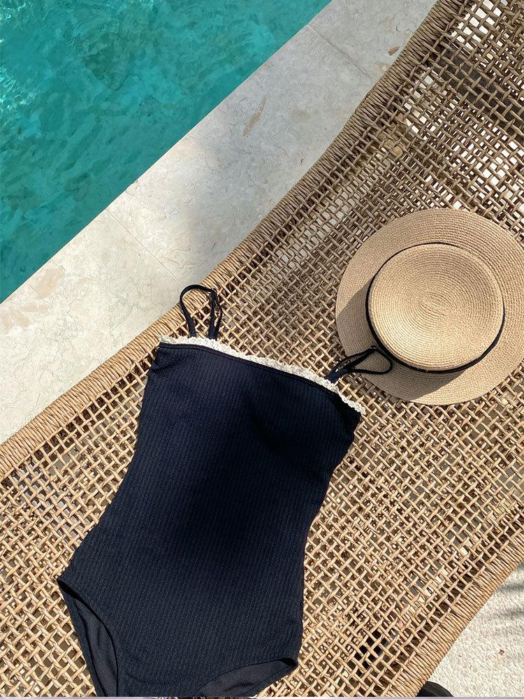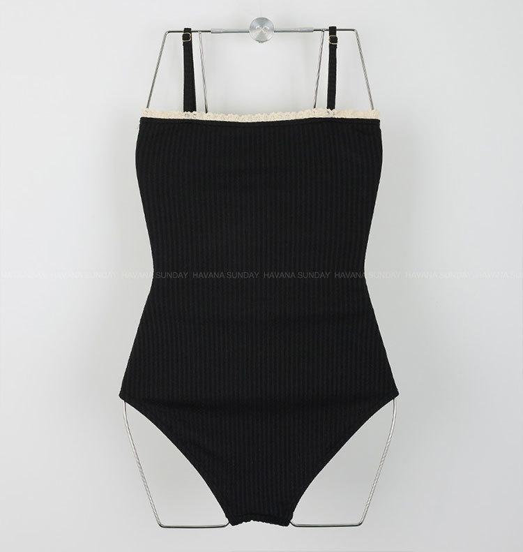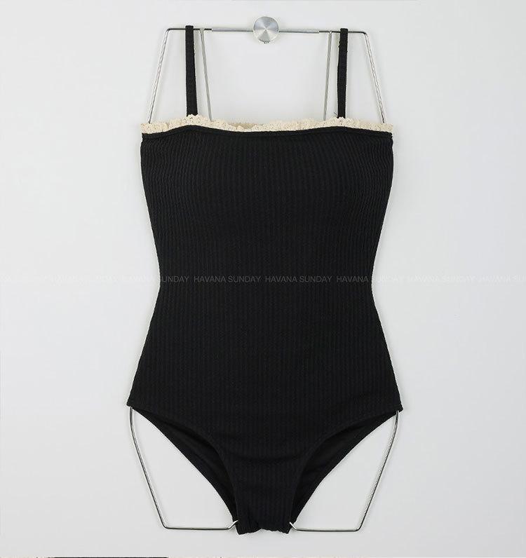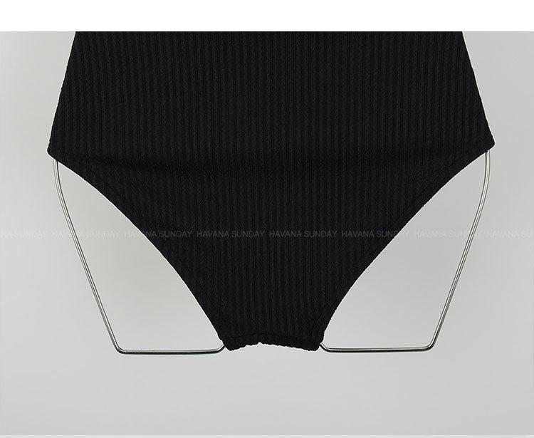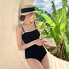Nuevo bikini de una pieza triangular simple francés retro en blanco y negro para mujer, traje de baño sexy, ajustado y conservador para aguas termales.