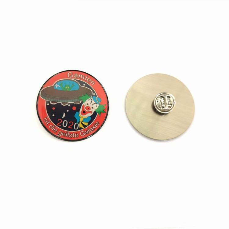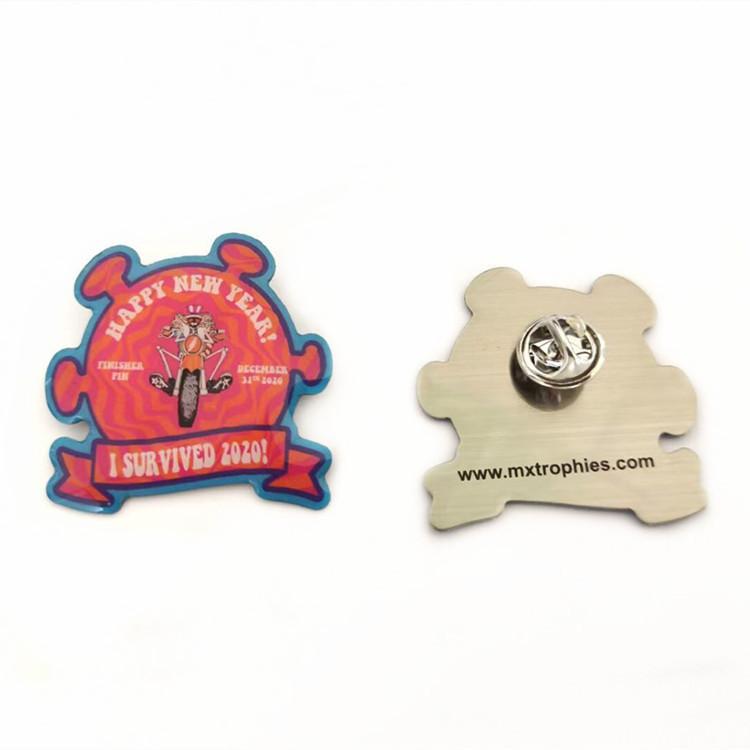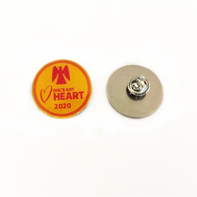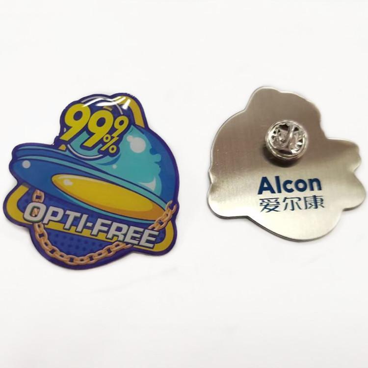 Insignia sólida hecha de fábrica con impresión a color de acero inoxidable, pin metálico con mariposa, suministro de insignia de epoxi cristal