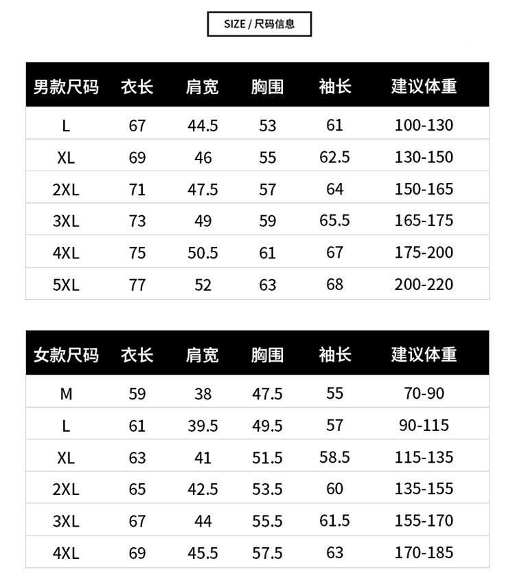 M, L, XL, XXL, XXXL, 4XL, 5XL
