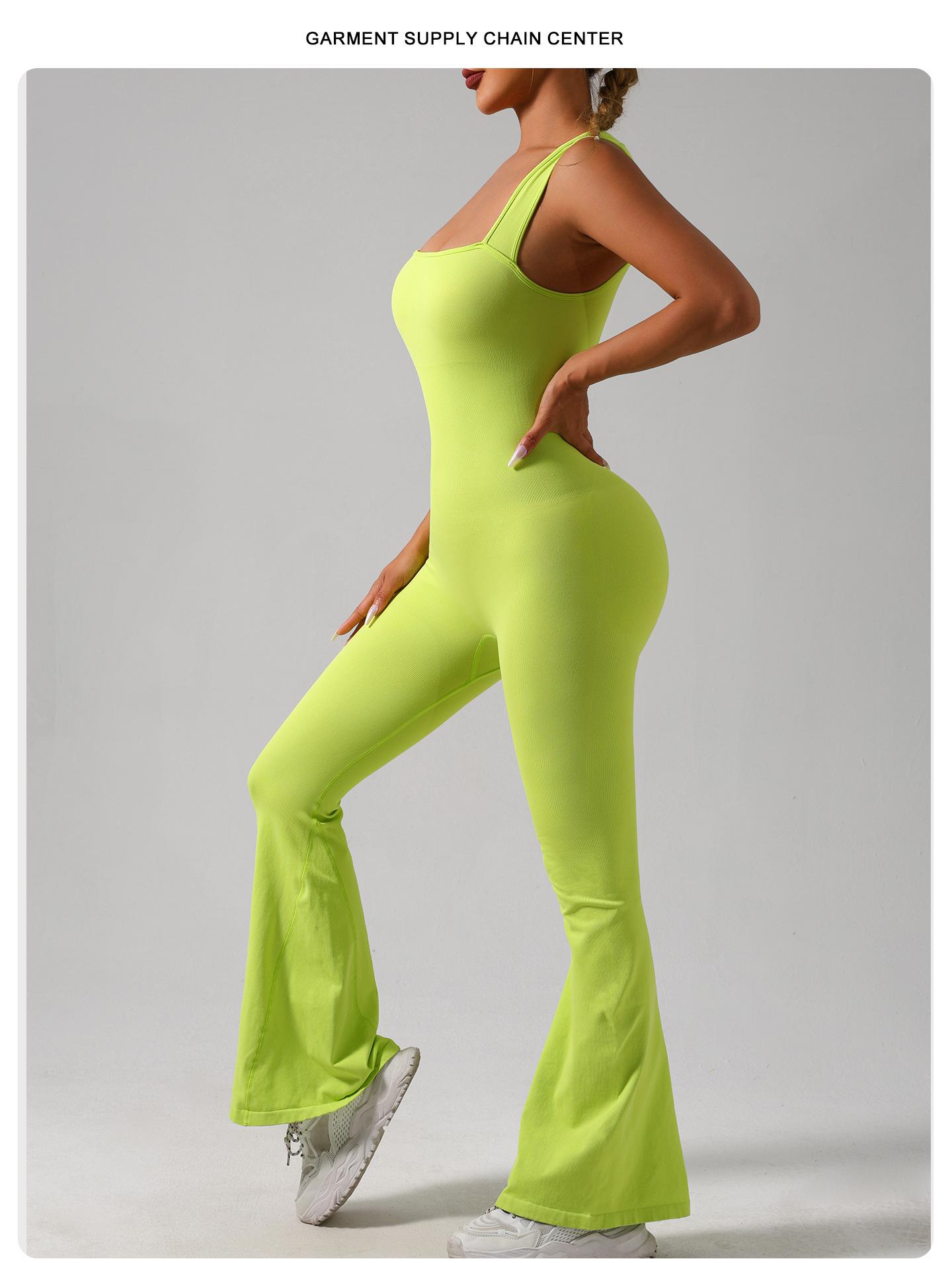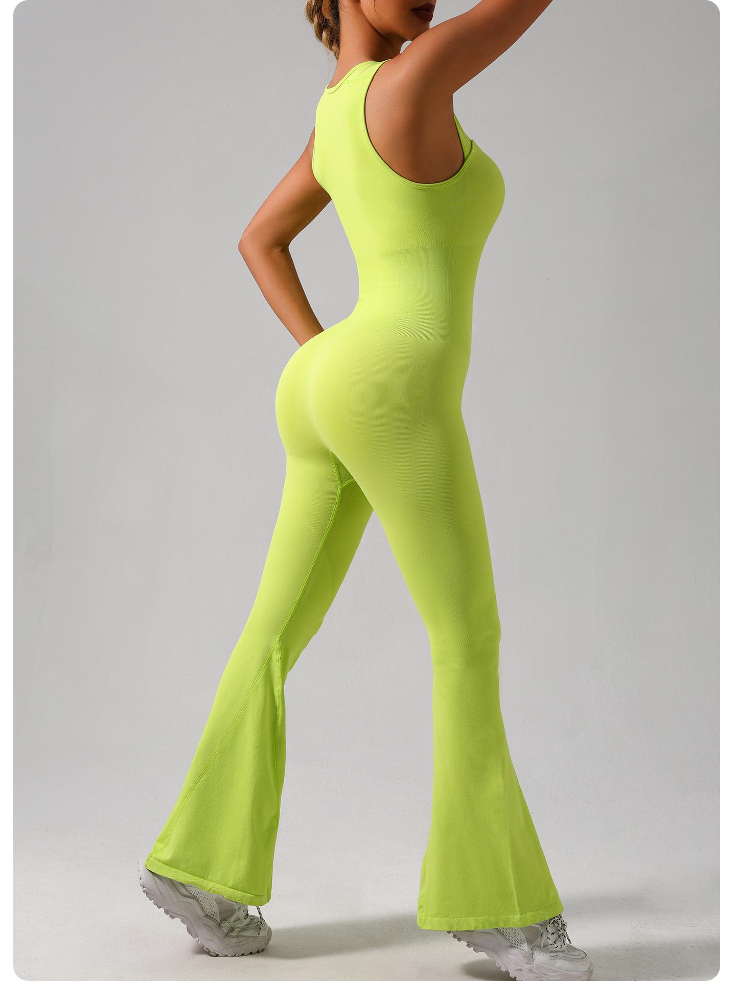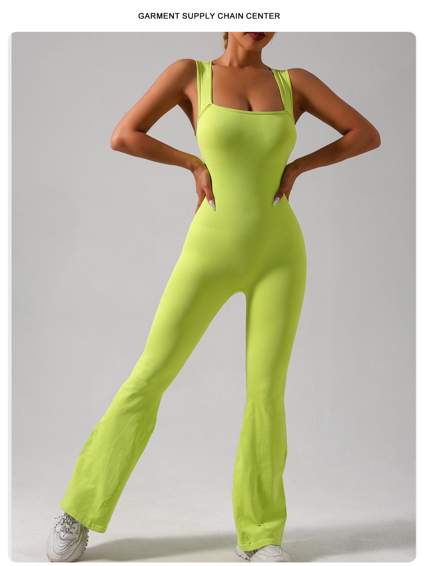[Zhejin] Mono chaleco de yoga europeo y americano deportivo fitness levantamiento de cadera pantalones acampanados mono ajustado traje de yoga
