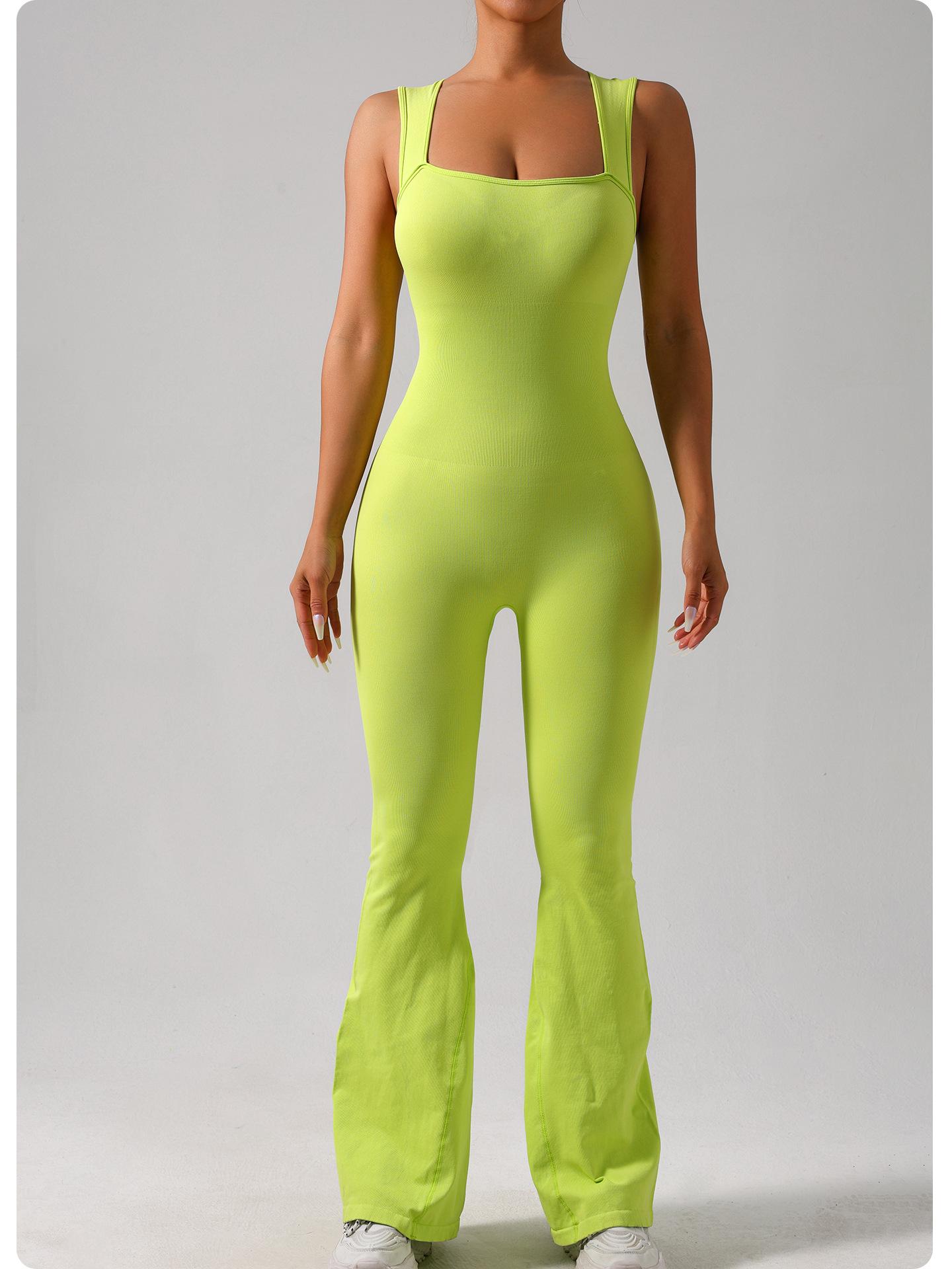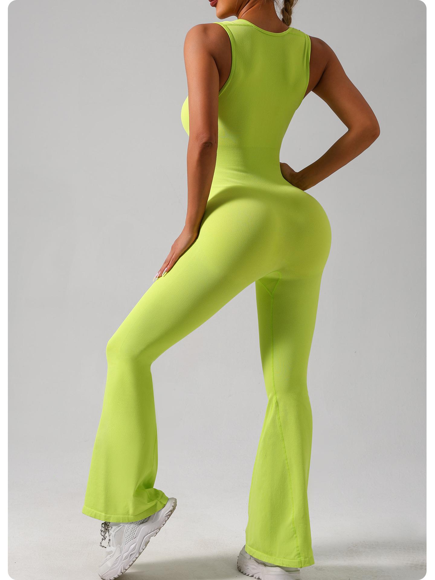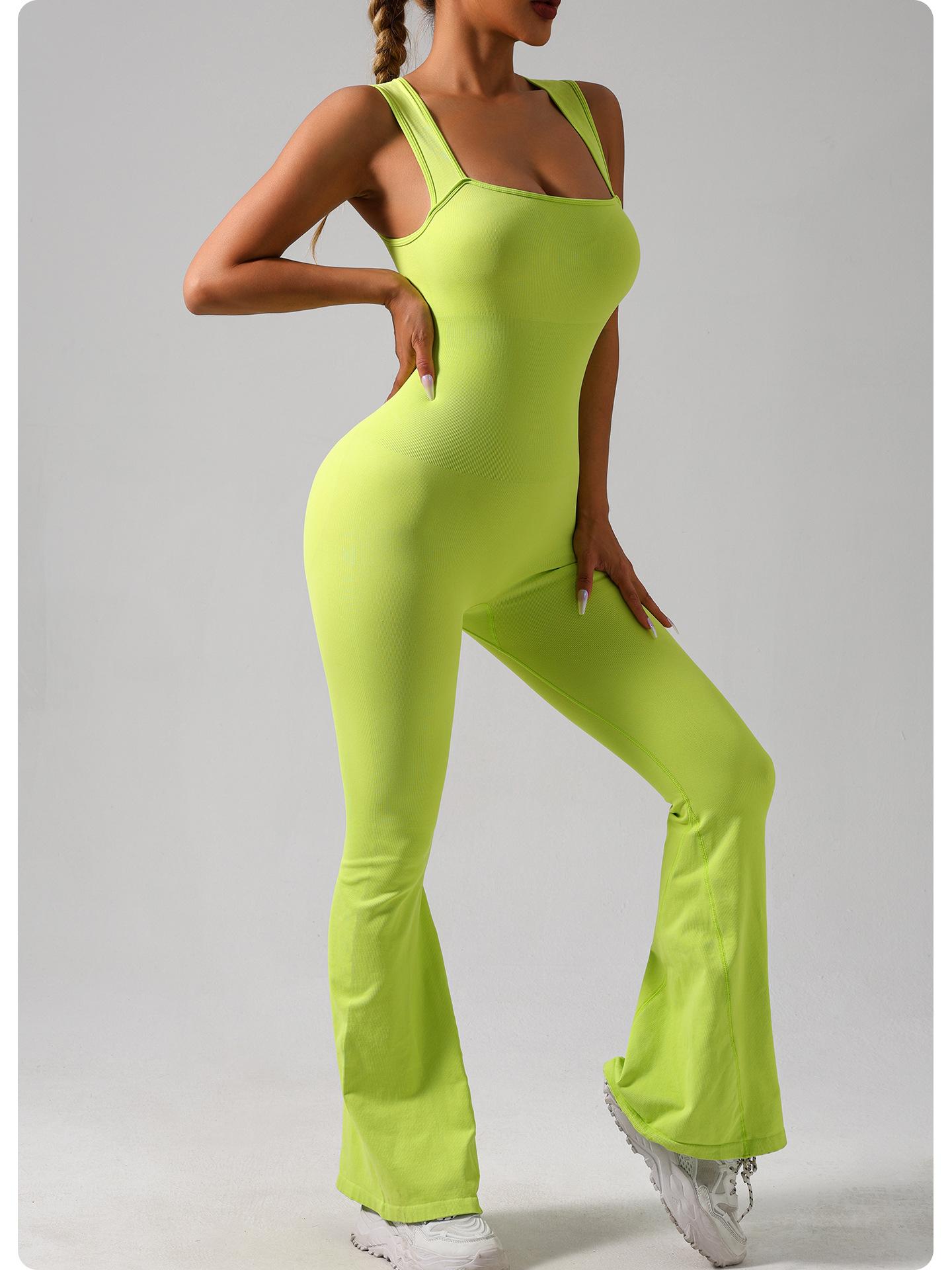 [Zhejin] Mono chaleco de yoga europeo y americano deportivo fitness levantamiento de cadera pantalones acampanados mono ajustado traje de yoga