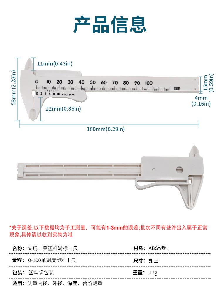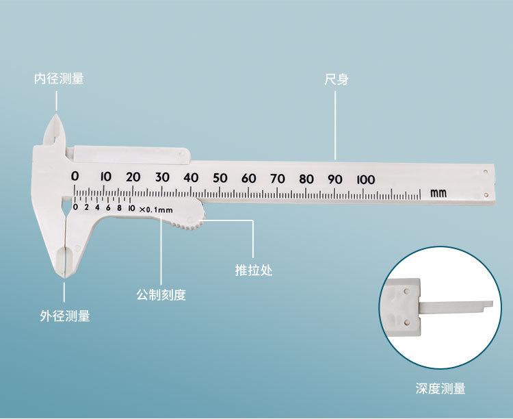Calibrador Vernier de plástico de una sola escala 0-100 Wen juego de medición calibrador de estudiante mini calibrador herramienta de medición