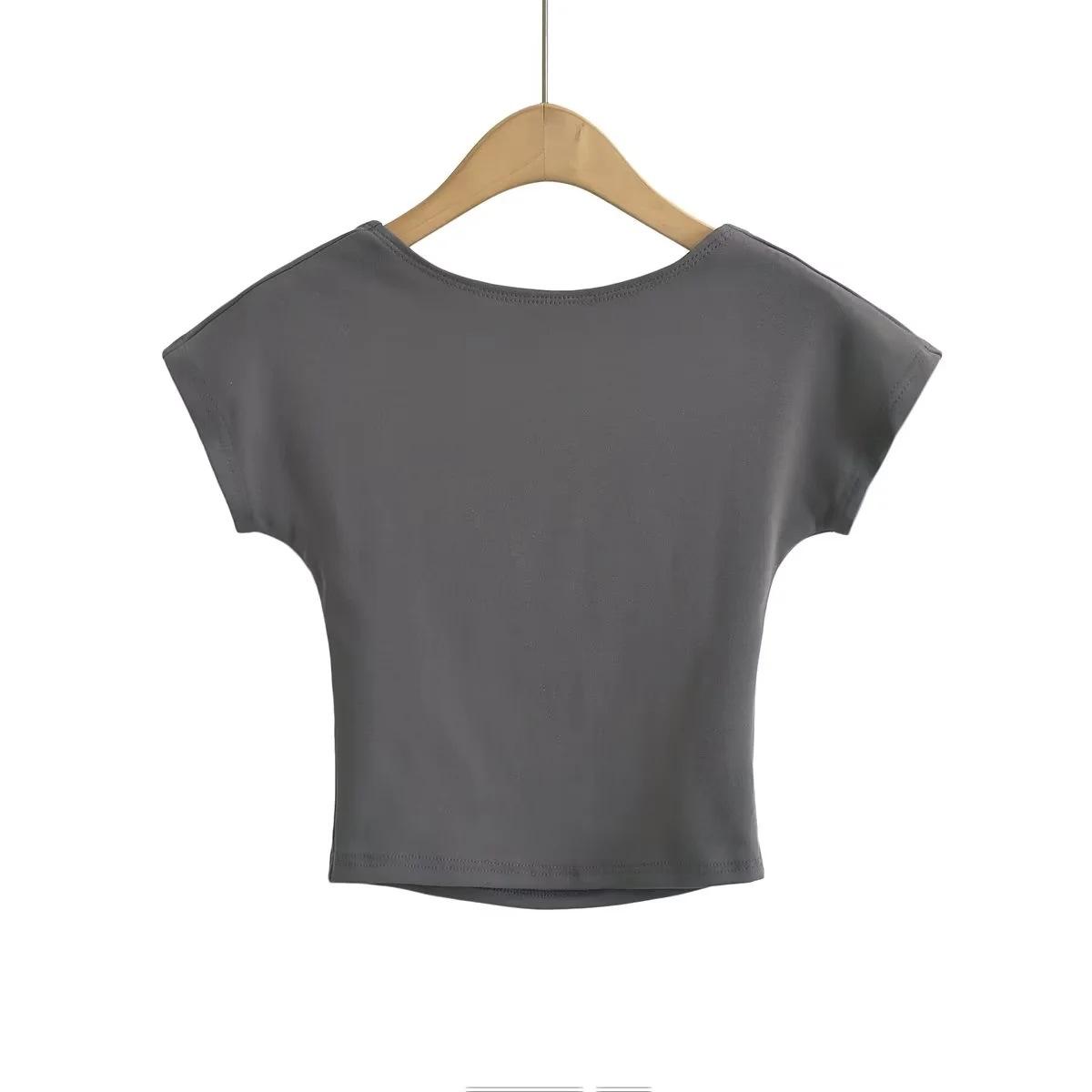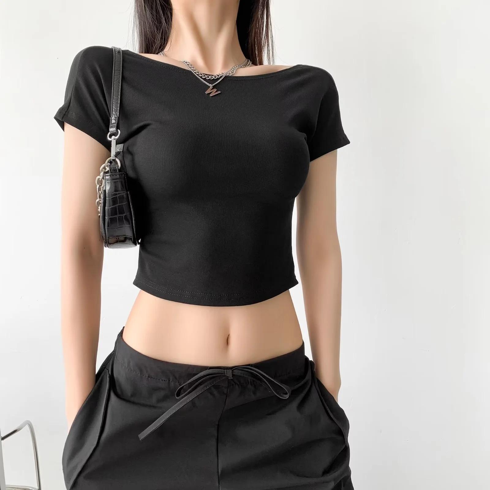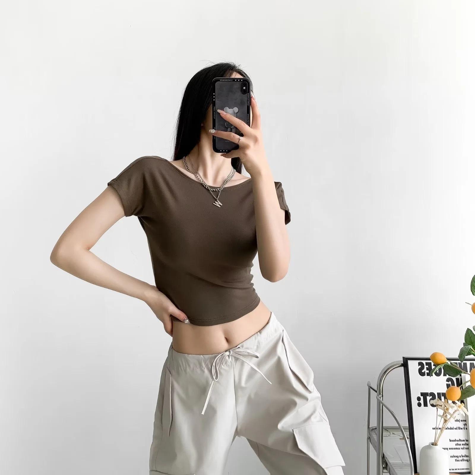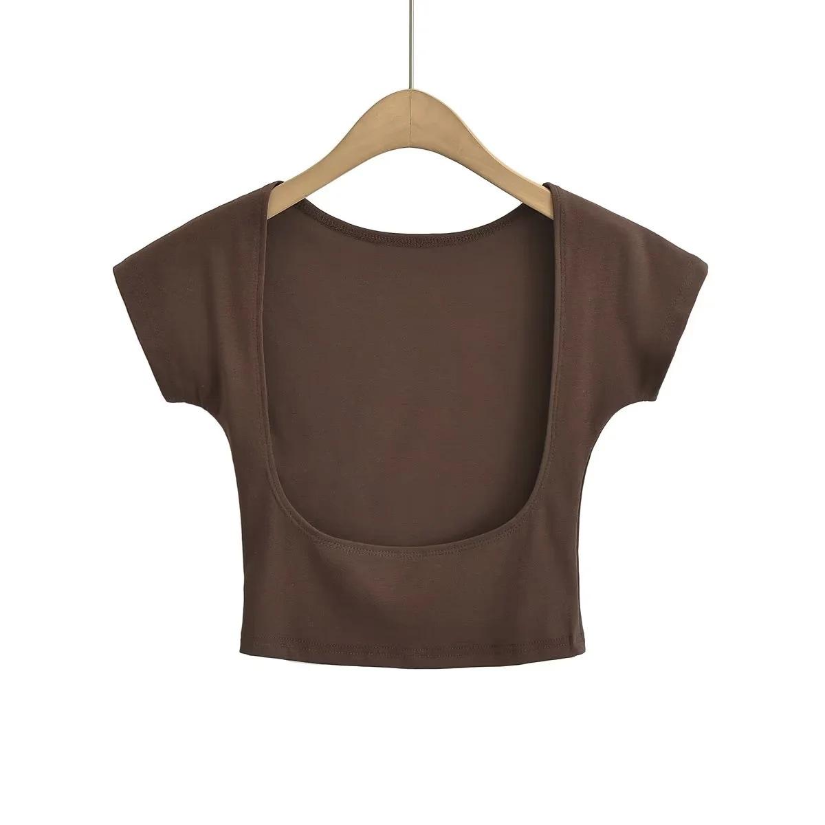 Camiseta básica de verano 2023 de celebridades de Internet europeas y americanas, de manga corta, con espalda descubierta y ombligo al descubierto.