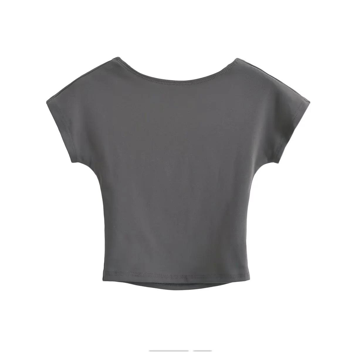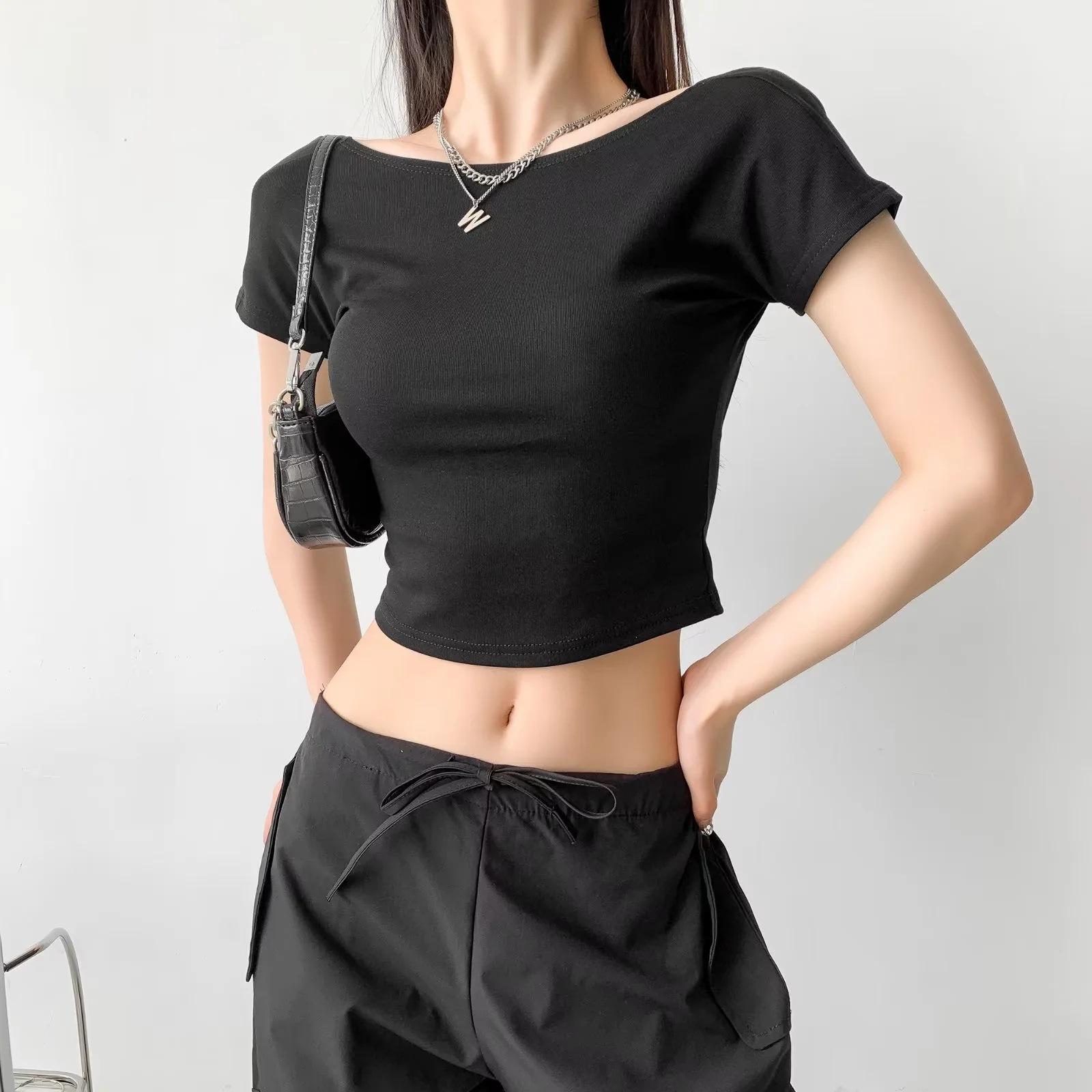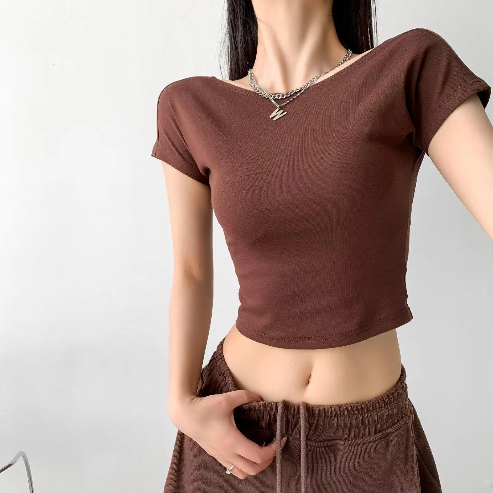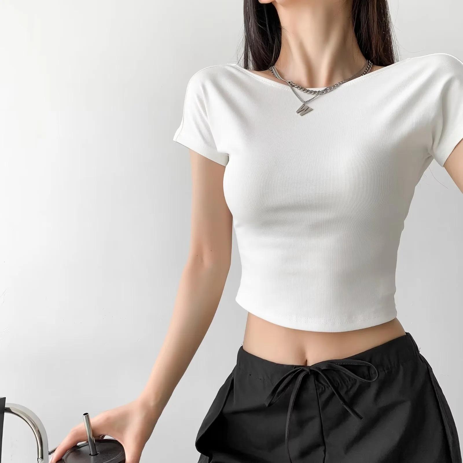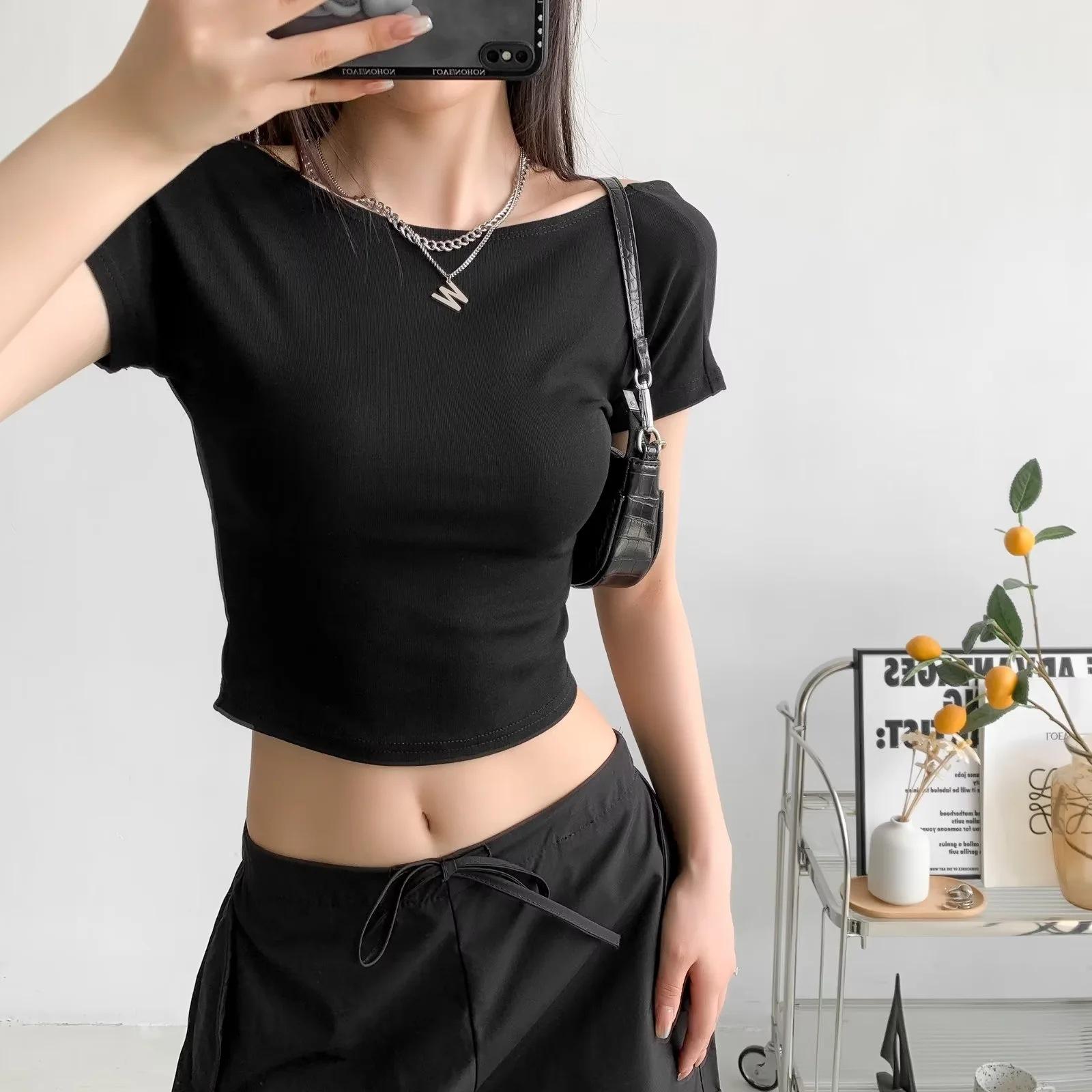 Camiseta básica de verano 2023 de celebridades de Internet europeas y americanas, de manga corta, con espalda descubierta y ombligo al descubierto.