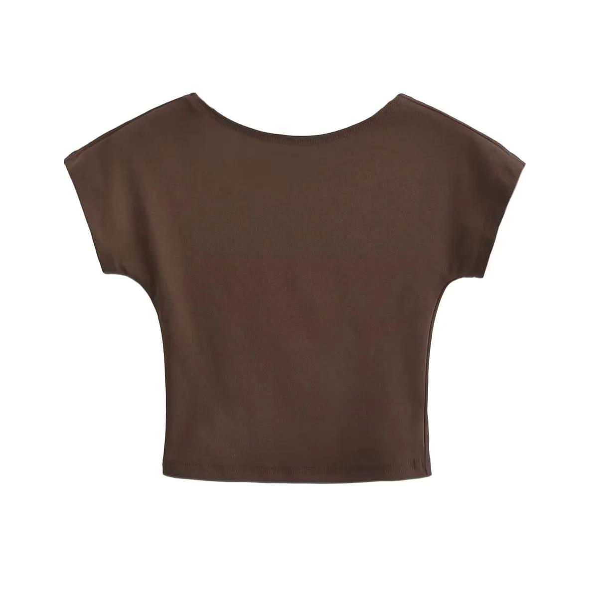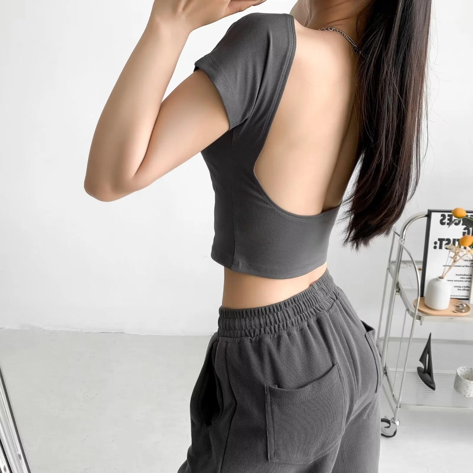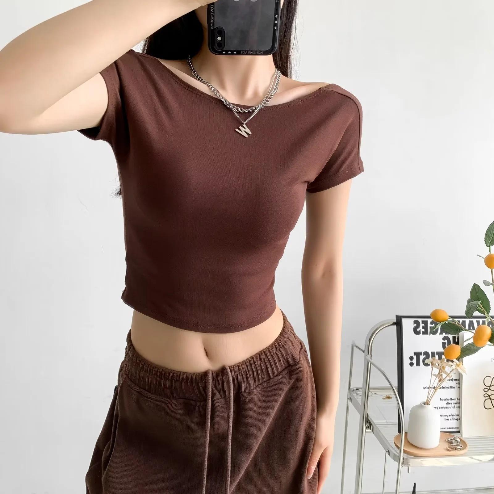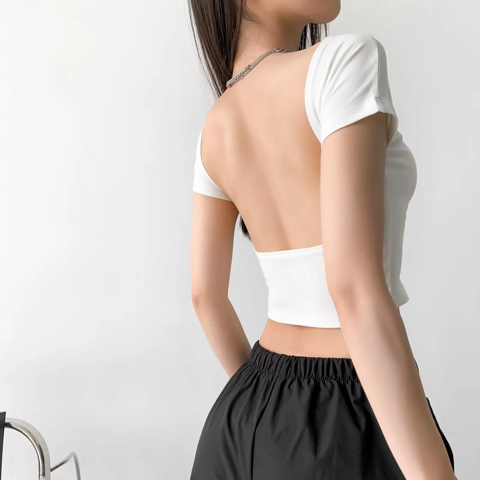 Camiseta básica de verano 2023 de celebridades de Internet europeas y americanas, de manga corta, con espalda descubierta y ombligo al descubierto.