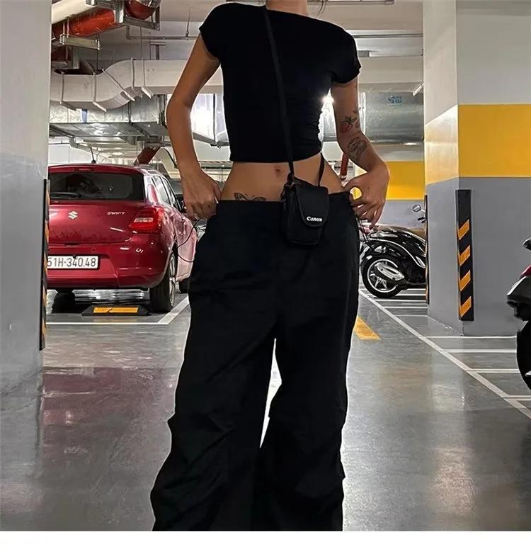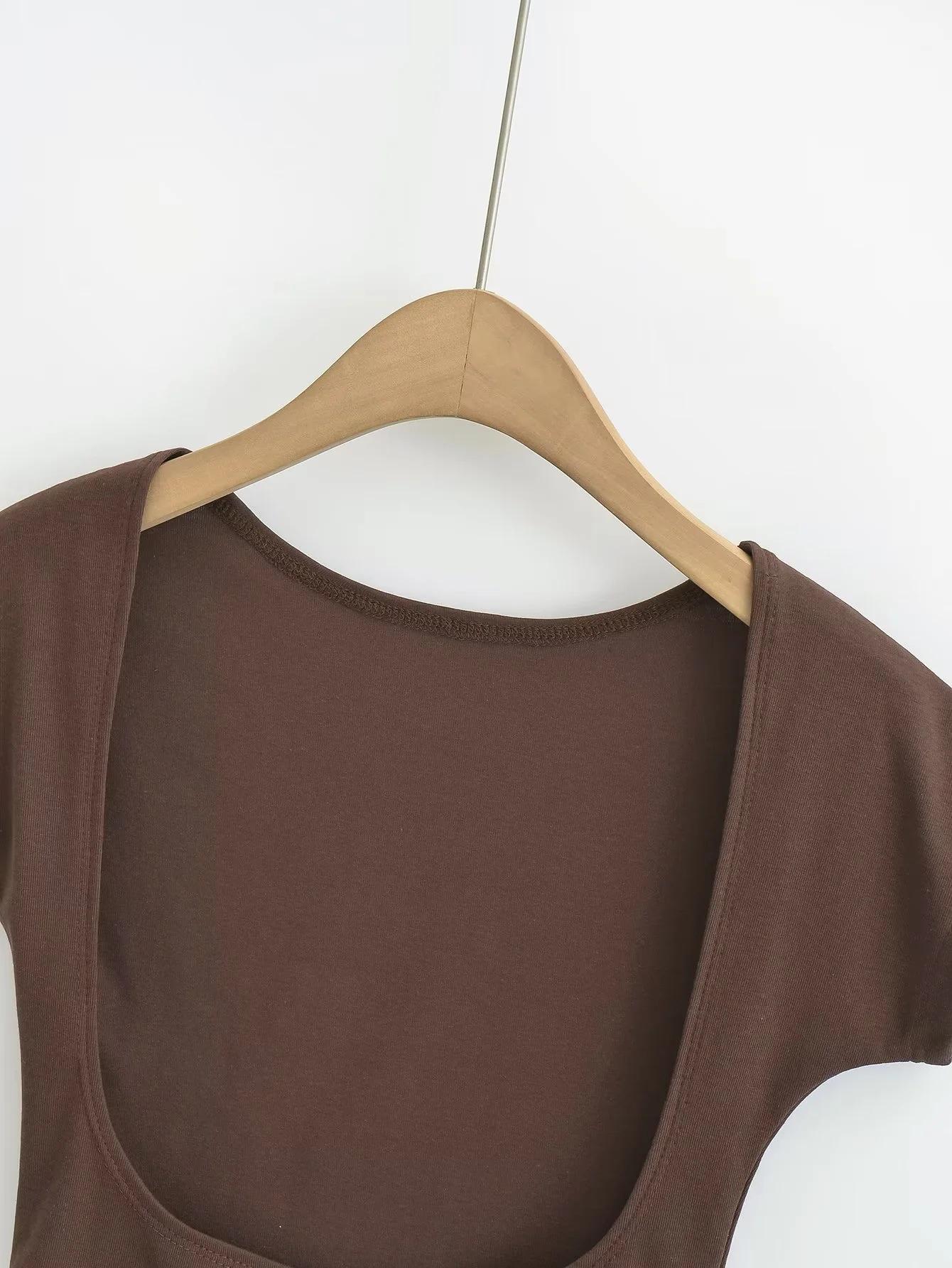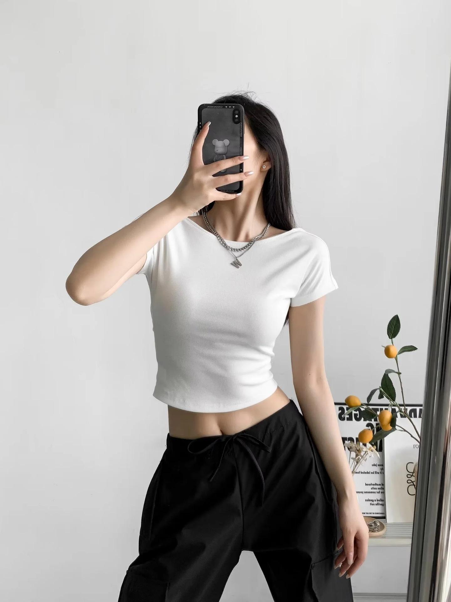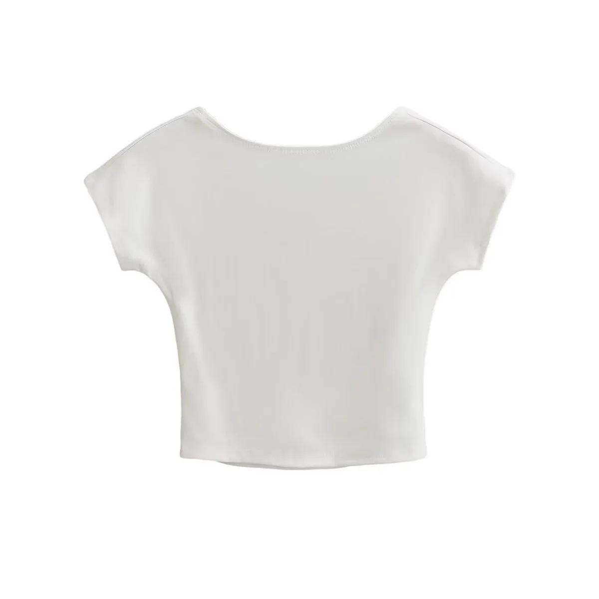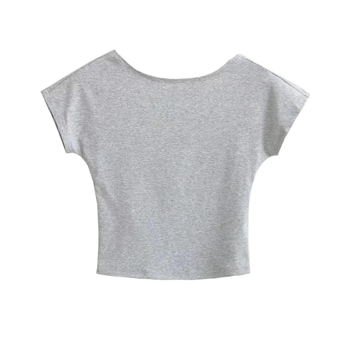Camiseta básica de verano 2023 de celebridades de Internet europeas y americanas, de manga corta, con espalda descubierta y ombligo al descubierto.