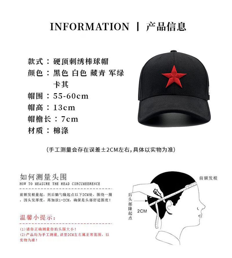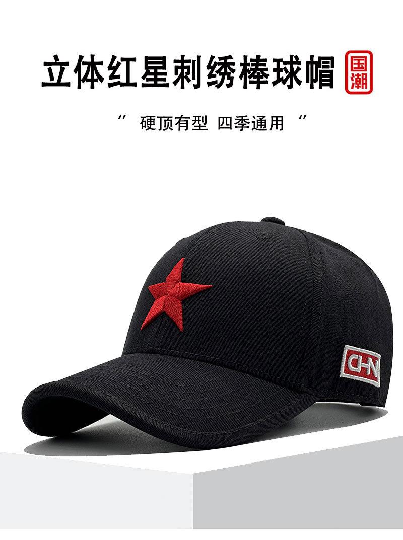 Gorra de béisbol rígida para hombre, estilo nacional, de primavera y verano, clásica, con estrella roja de cinco puntas bordada, informal y de moda.