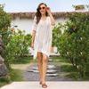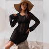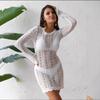 Blusa de traje de baño de punto para playa, de cuello redondo, sin espalda, hueca, de color liso, para mujer, estilo transfronterizo europeo y americano, para vacaciones, sexy