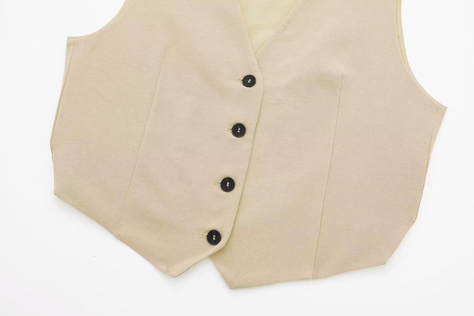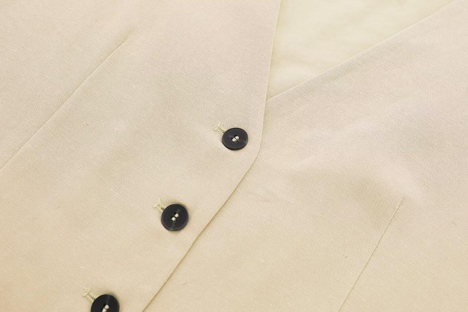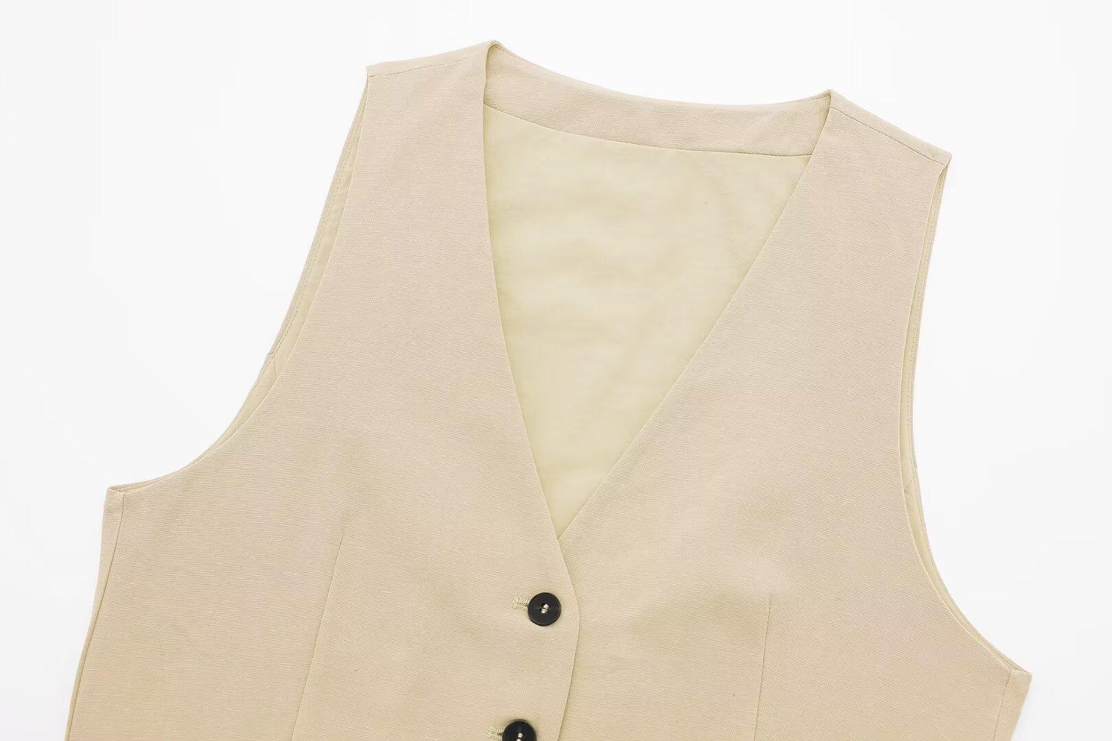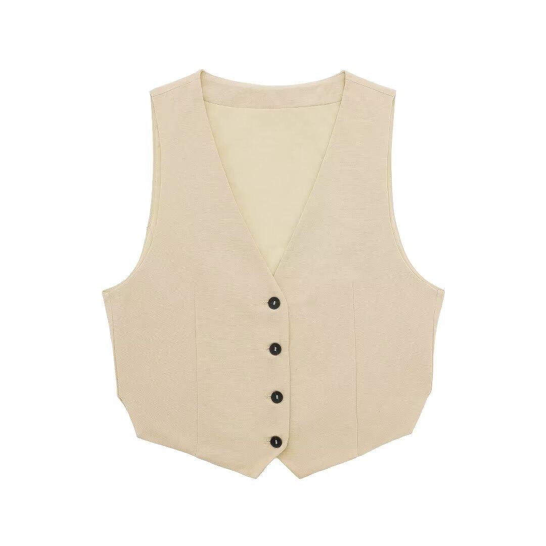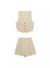 Chaleco con Abertura Estilo Europeo y Americano para Mujer Primavera Verano 2024 + Shorts de Color Sólido de Cintura Alta Estilo Casual