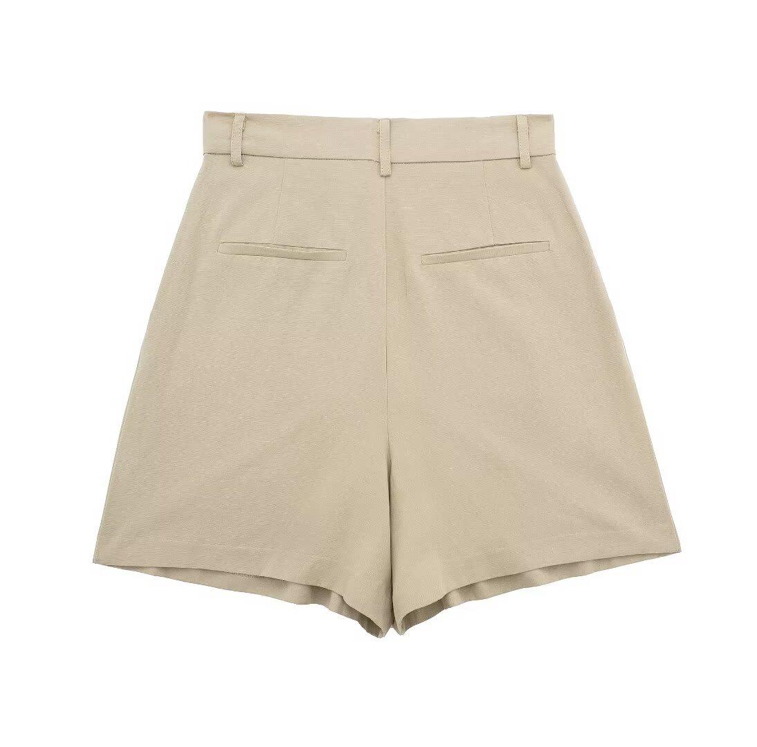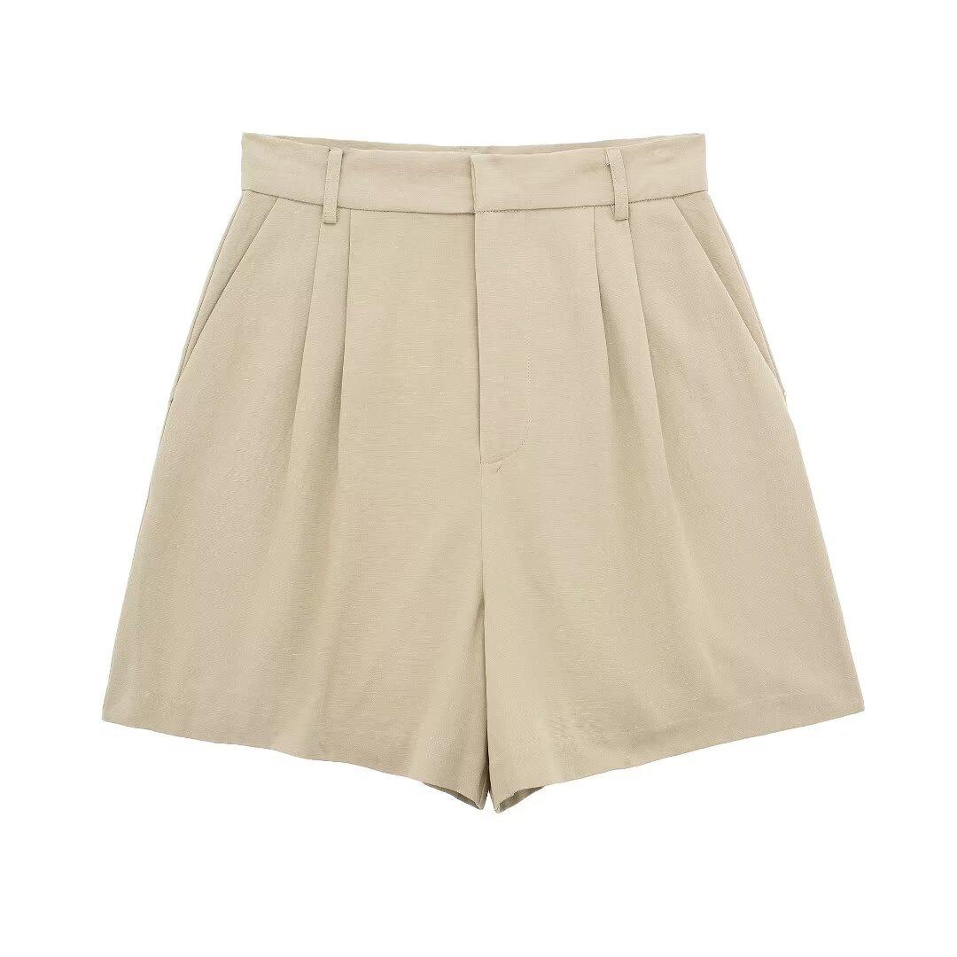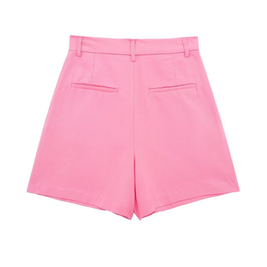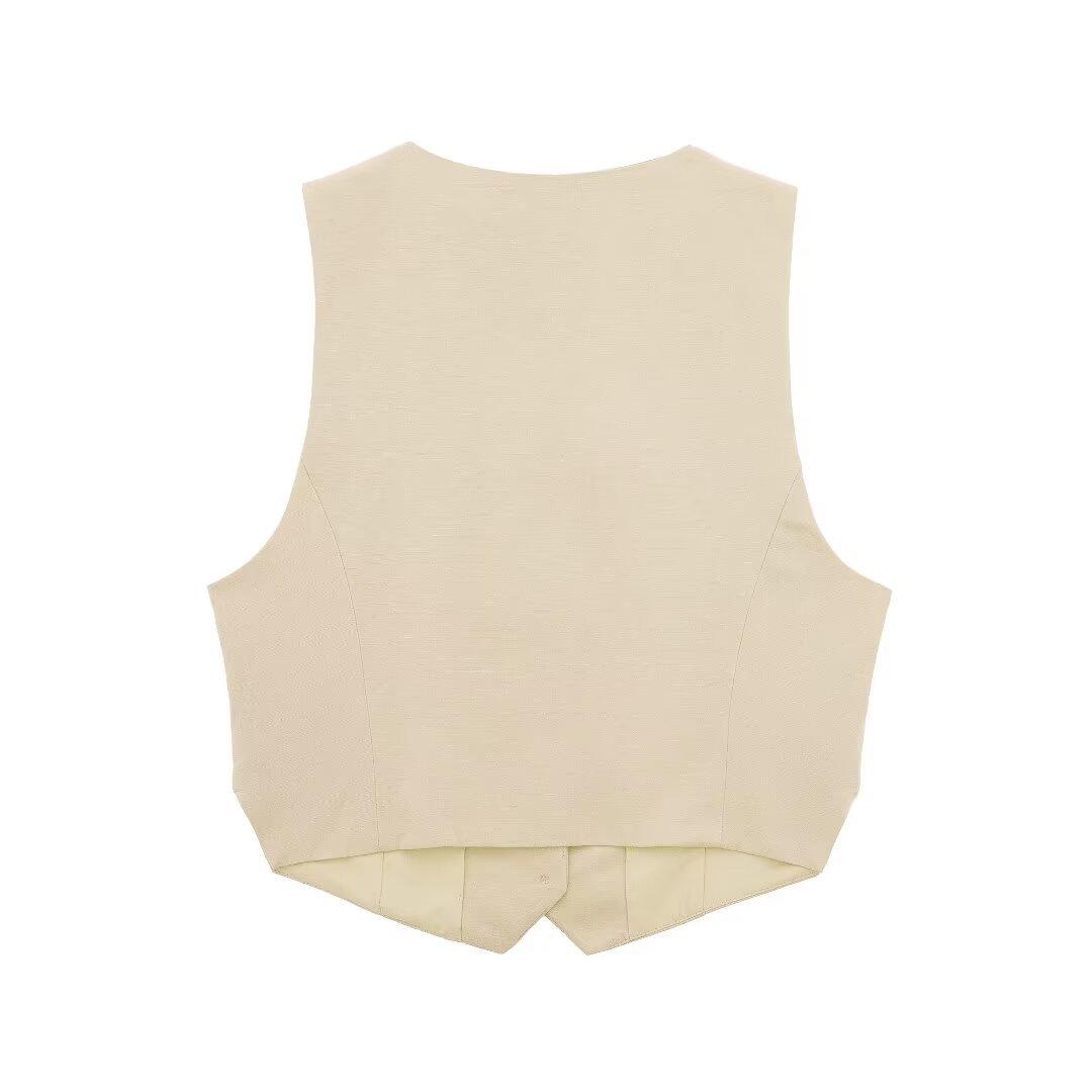 Chaleco con Abertura Estilo Europeo y Americano para Mujer Primavera Verano 2024 + Shorts de Color Sólido de Cintura Alta Estilo Casual