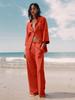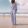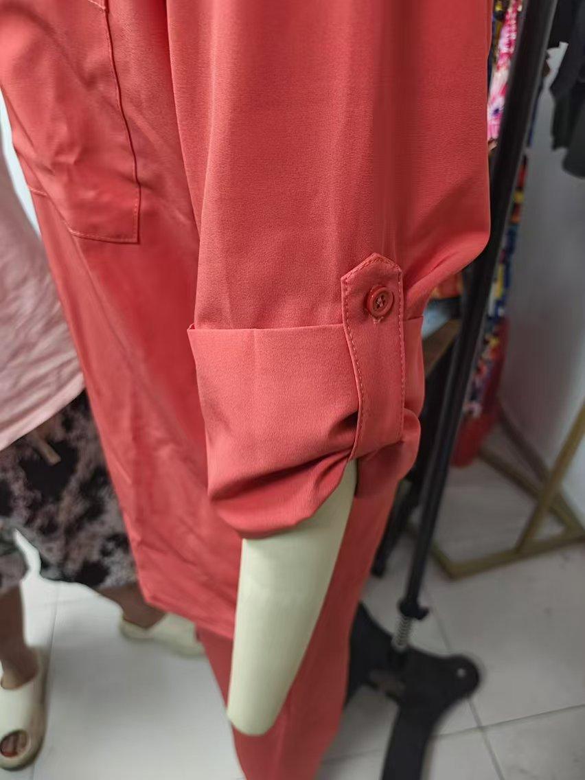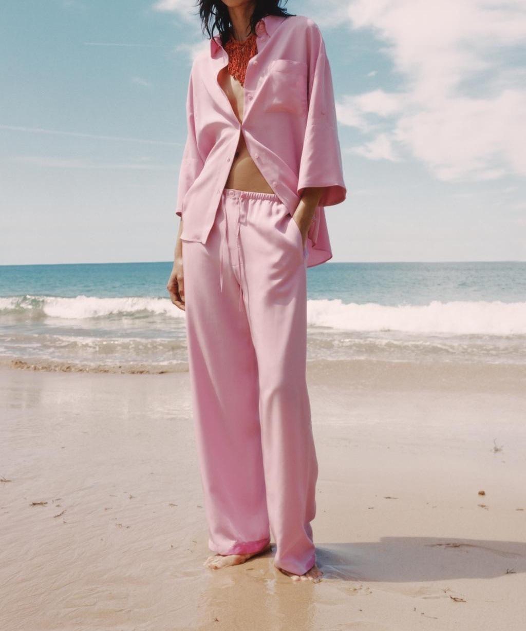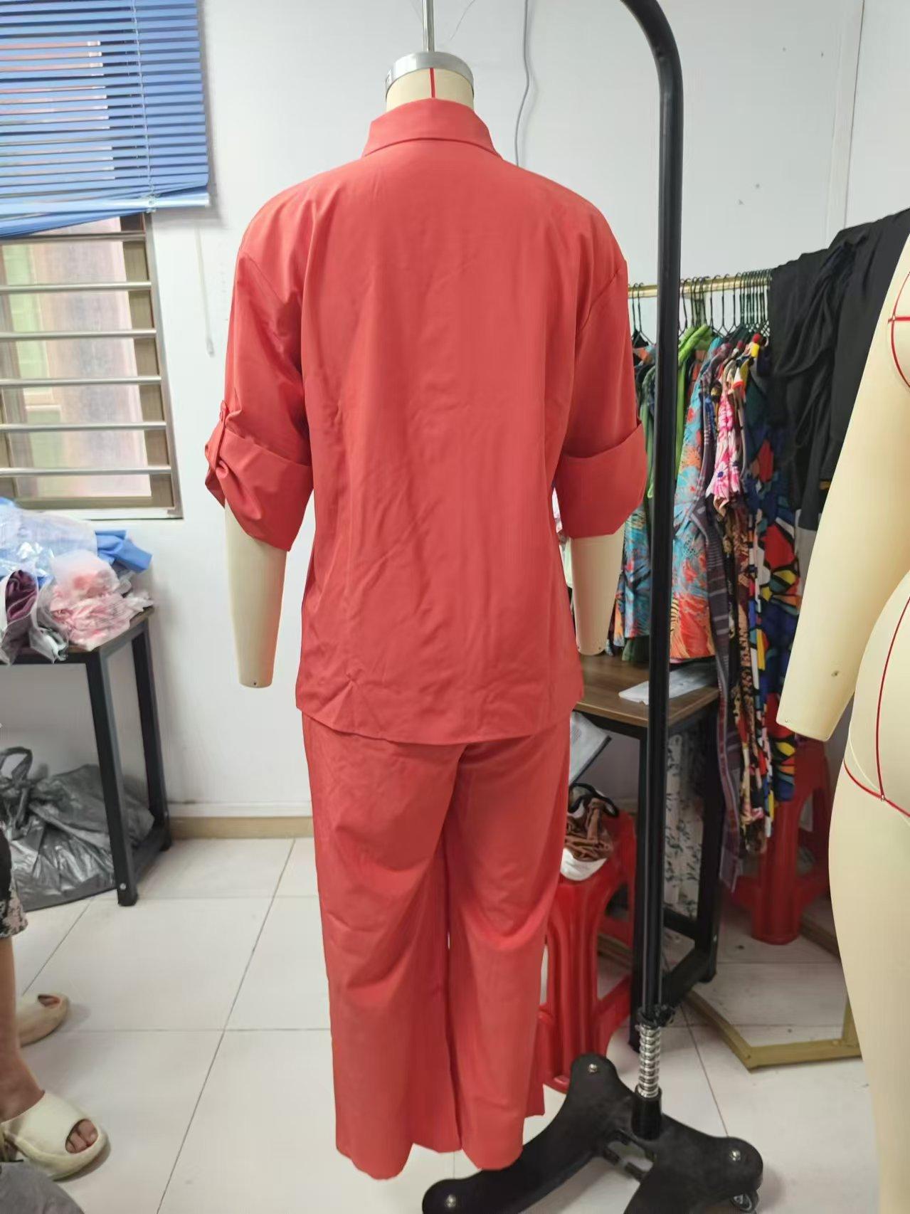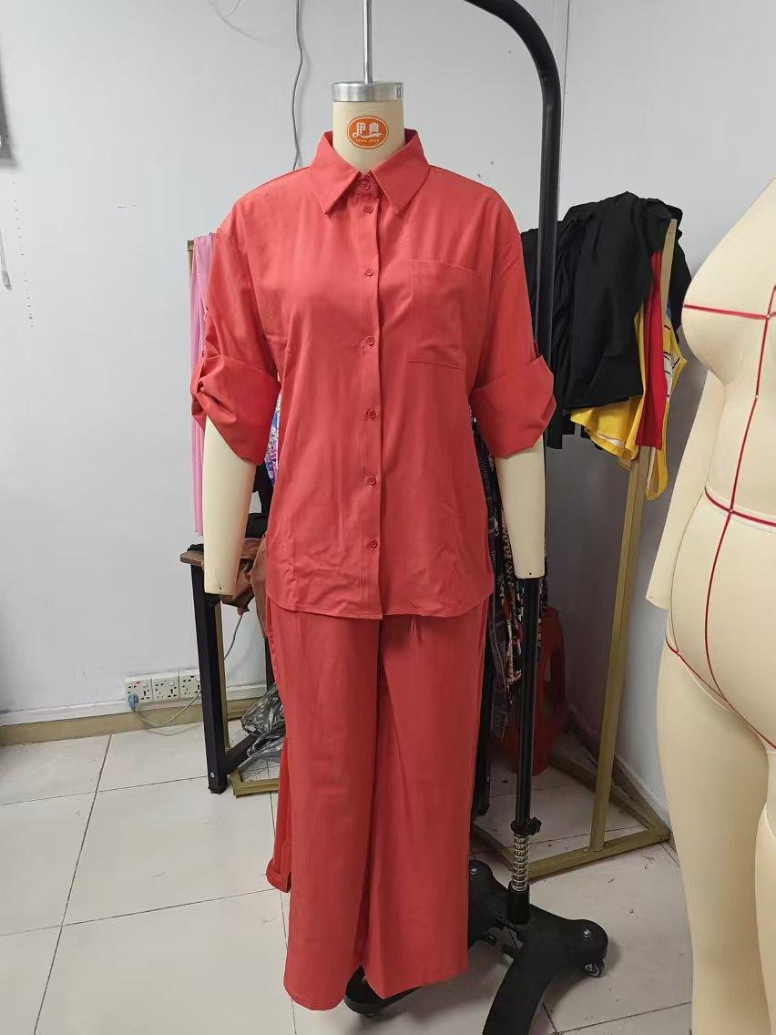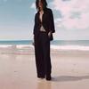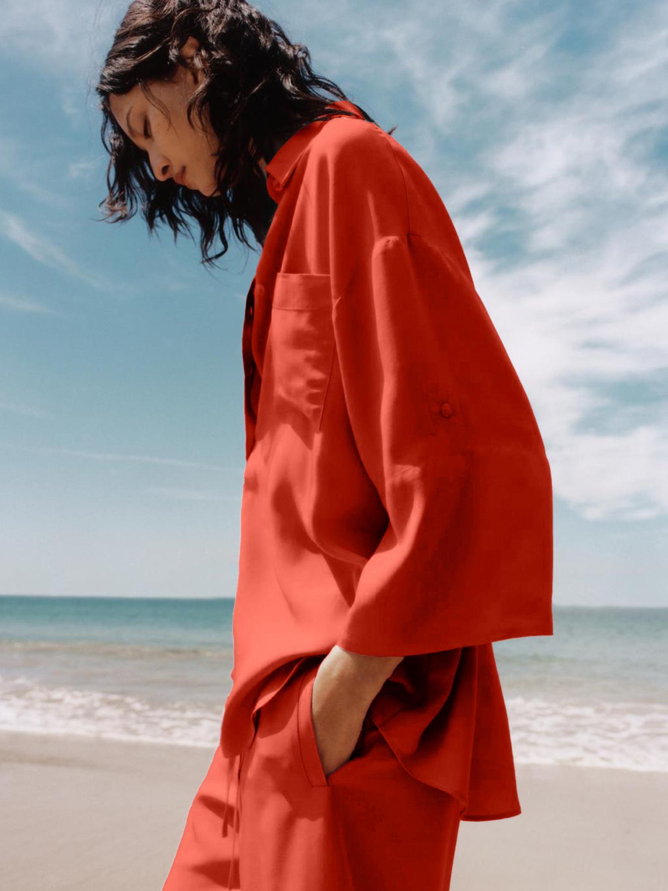 Traje de dos piezas con botones y camisa de color sólido con textura de satén de seda para mujer, estilo europeo y americano, verano 2024