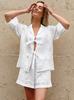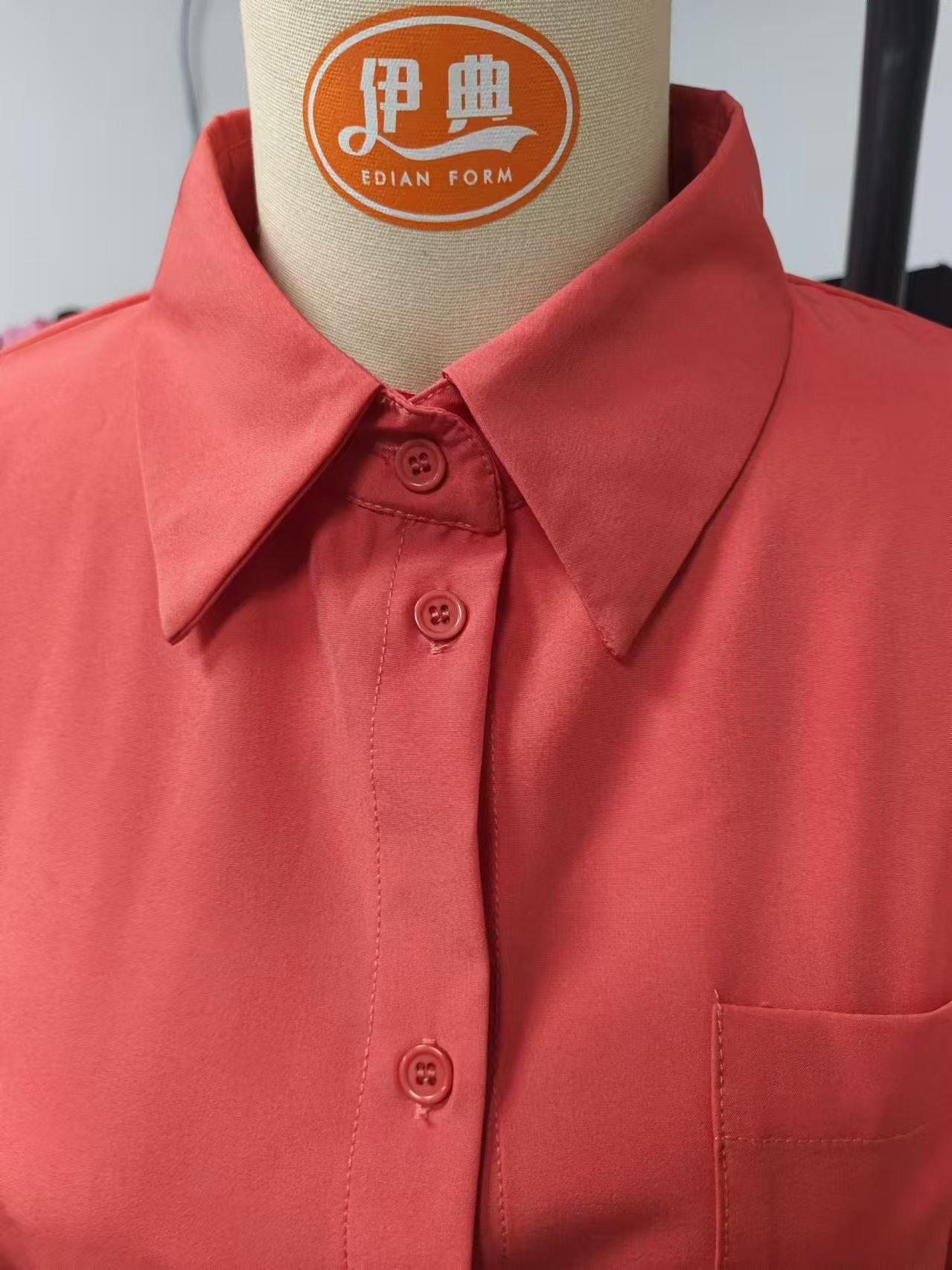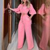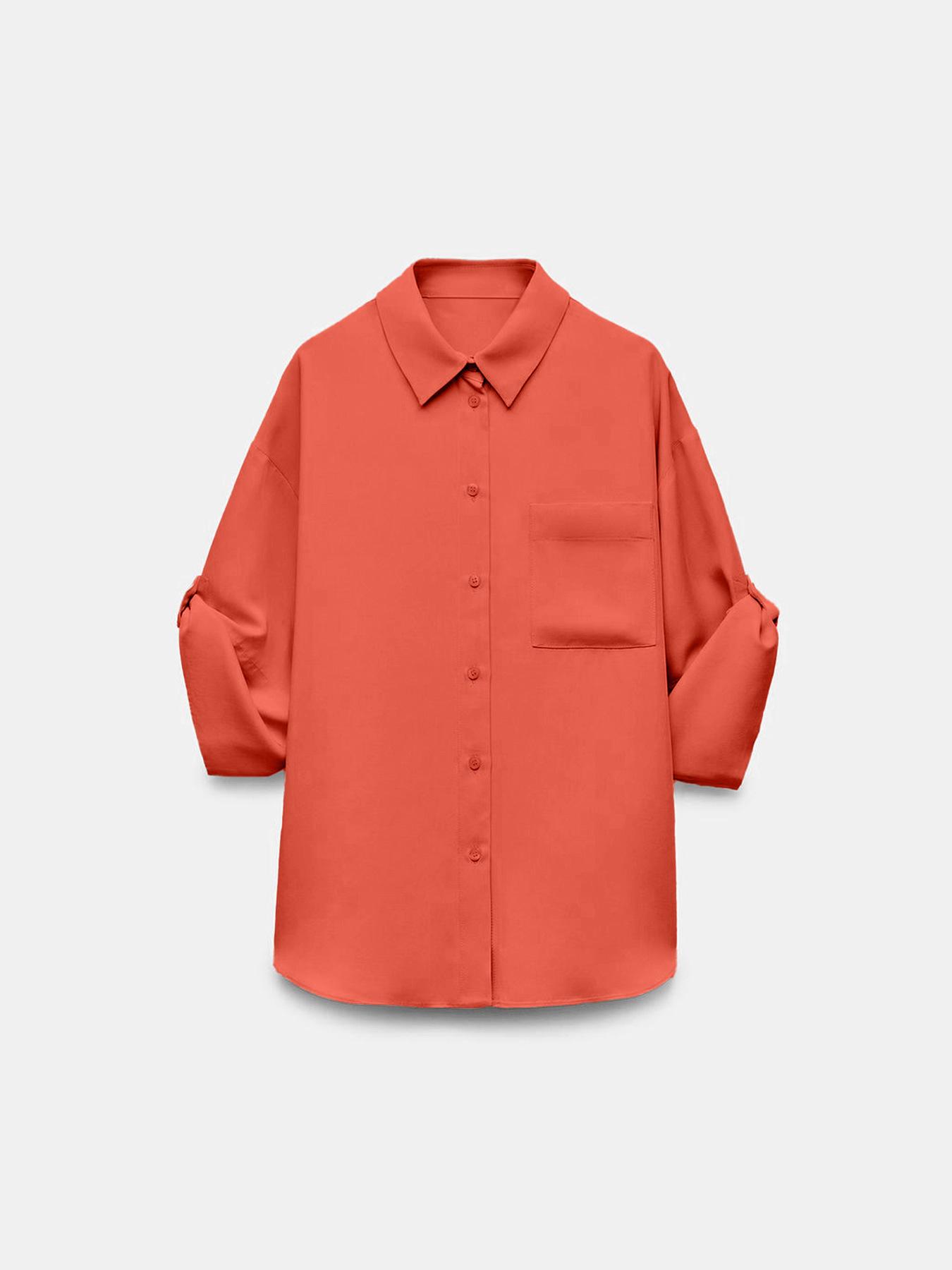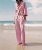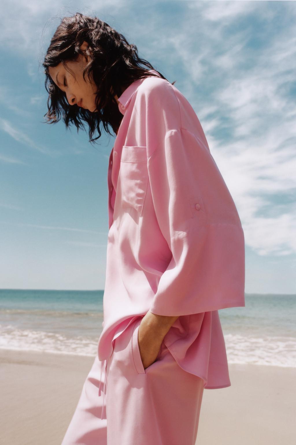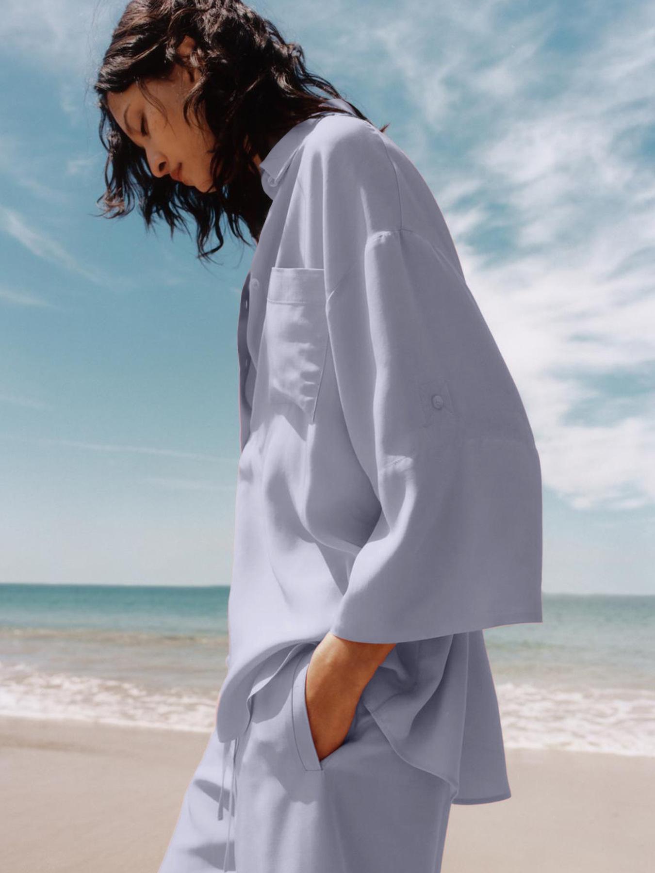 Traje de dos piezas con botones y camisa de color sólido con textura de satén de seda para mujer, estilo europeo y americano, verano 2024