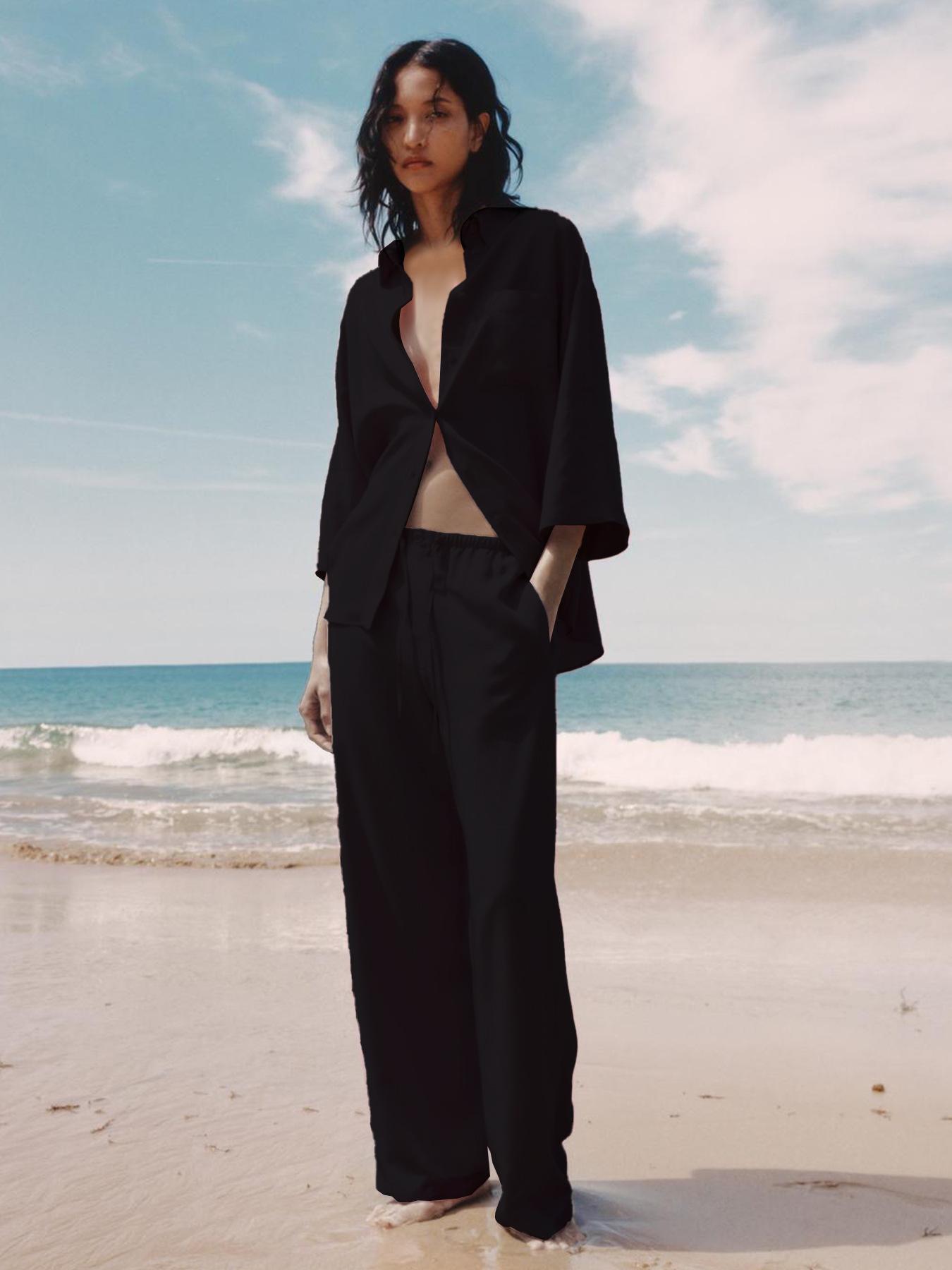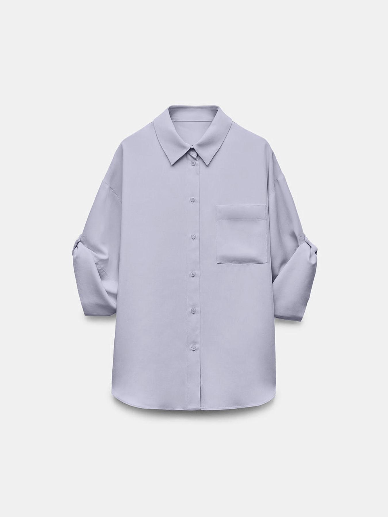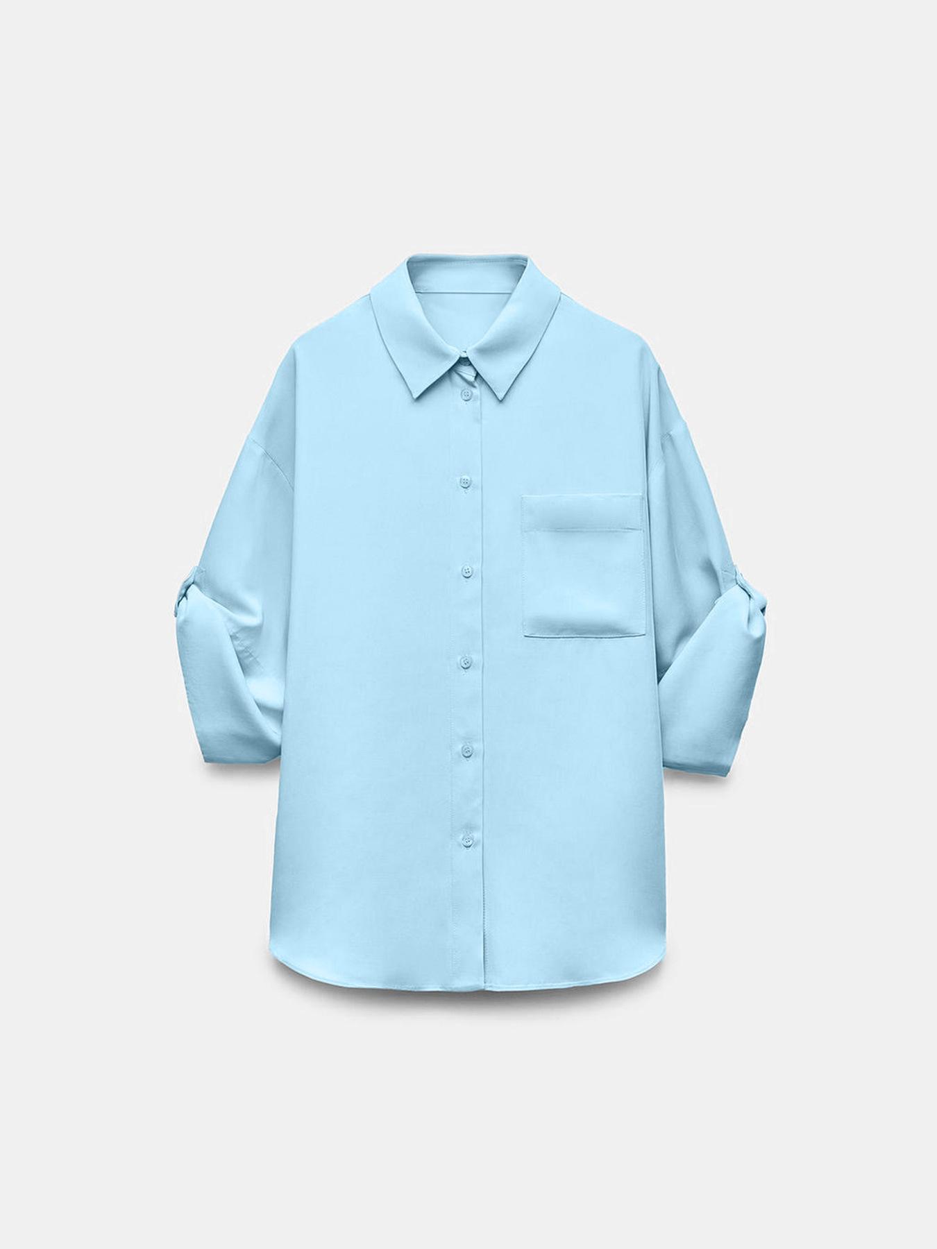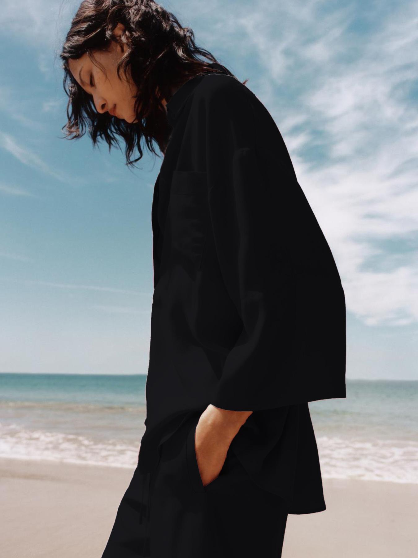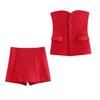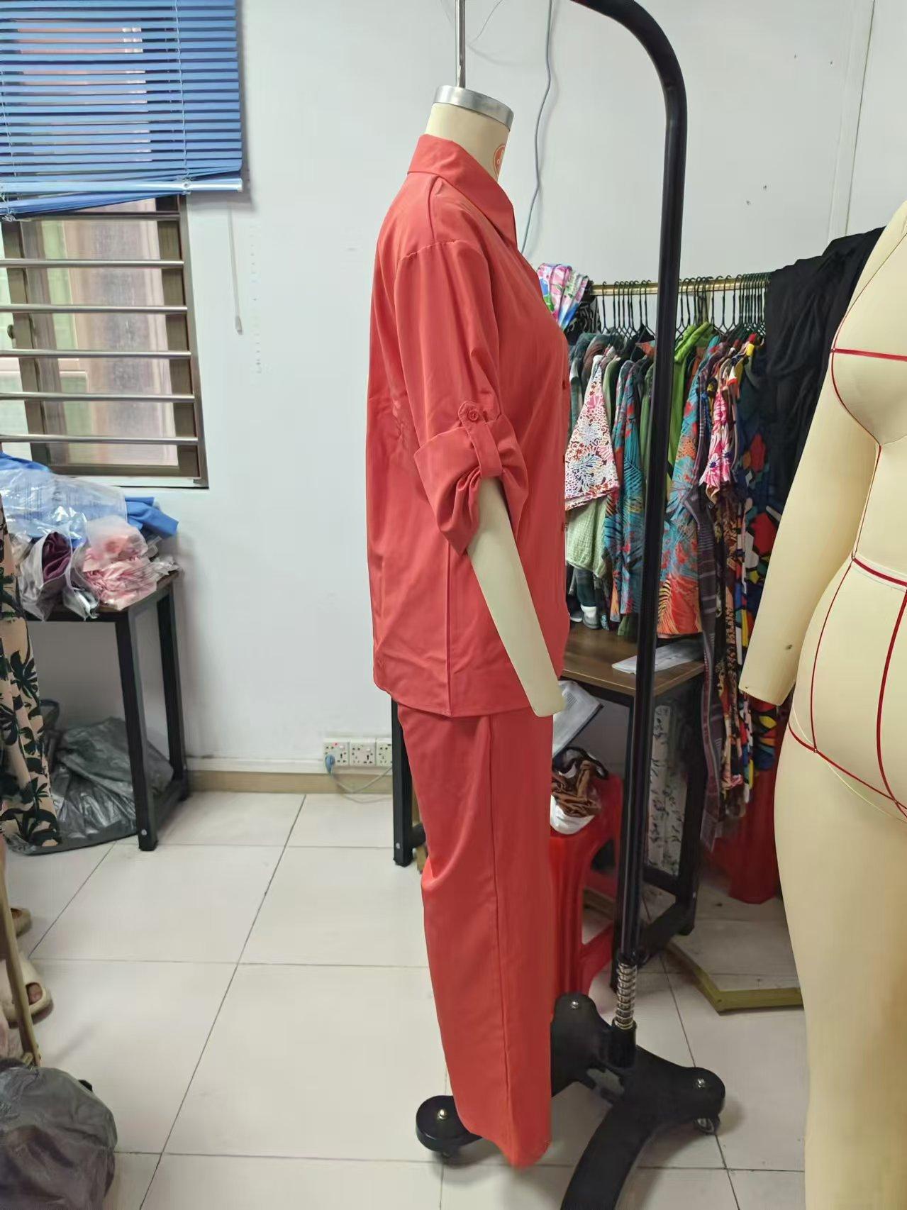 Traje de dos piezas con botones y camisa de color sólido con textura de satén de seda para mujer, estilo europeo y americano, verano 2024