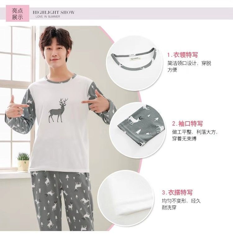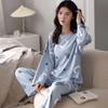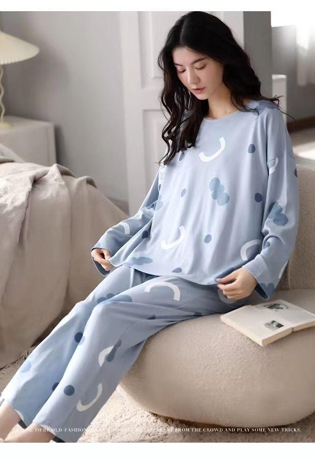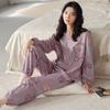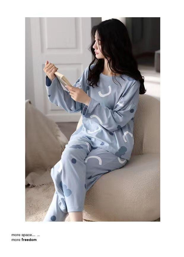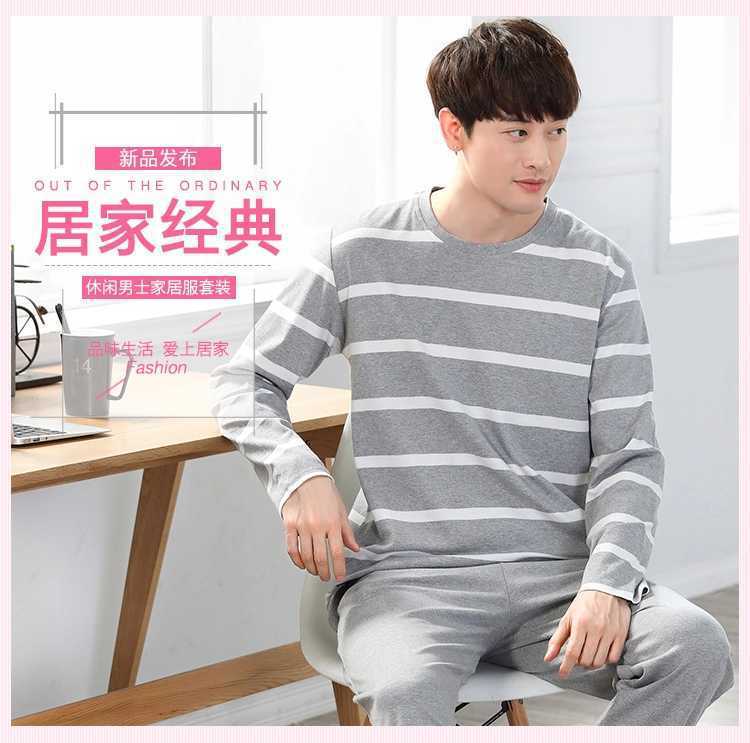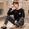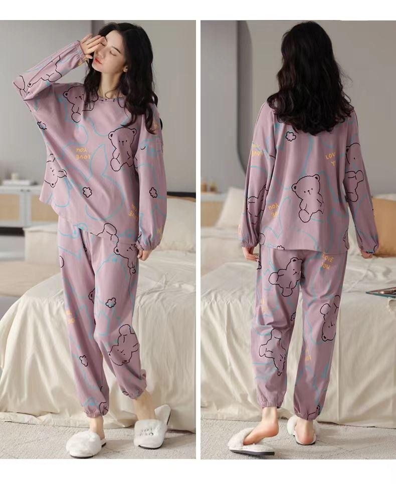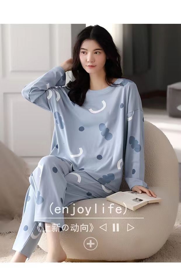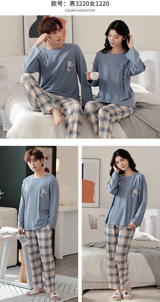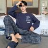 Pijamas de pareja de otoño, pantalones de manga larga para mujer, traje holgado de algodón similar al otoño e invierno para el hogar, venta al por mayor transfronteriza sin impresión
