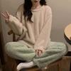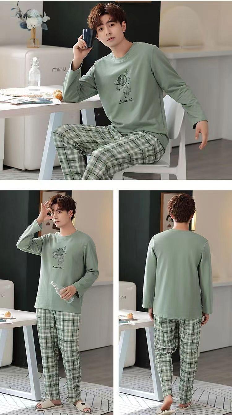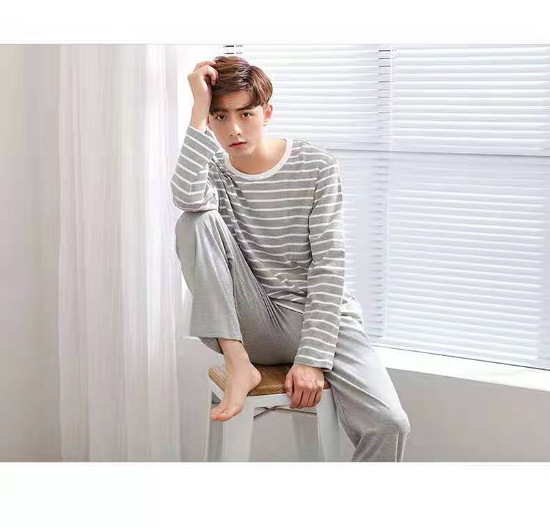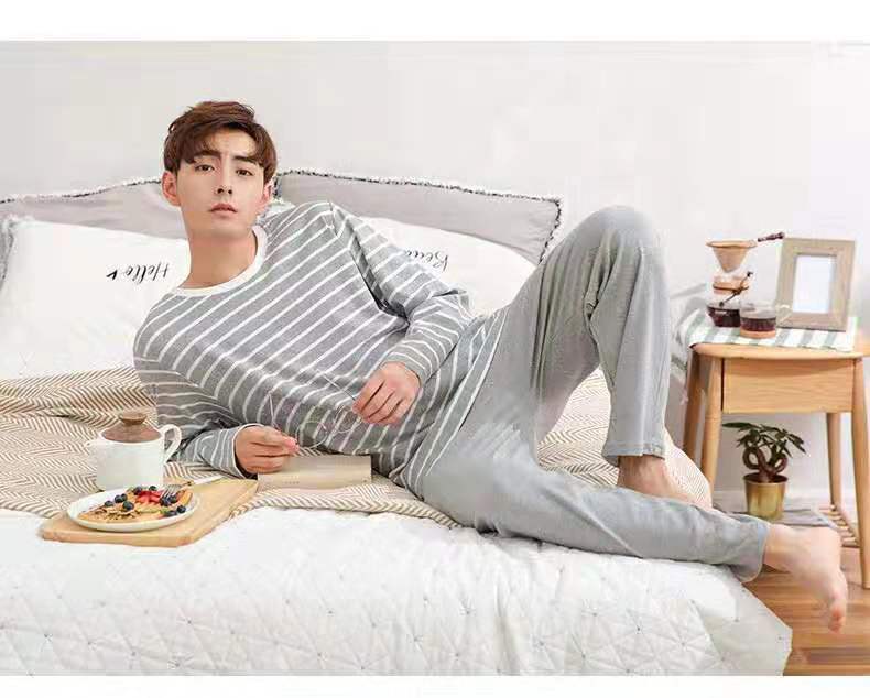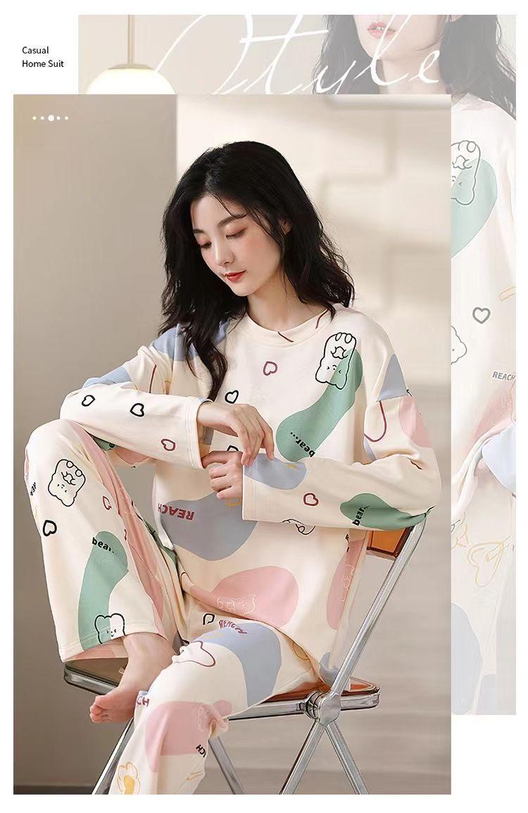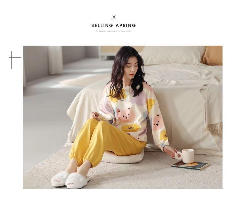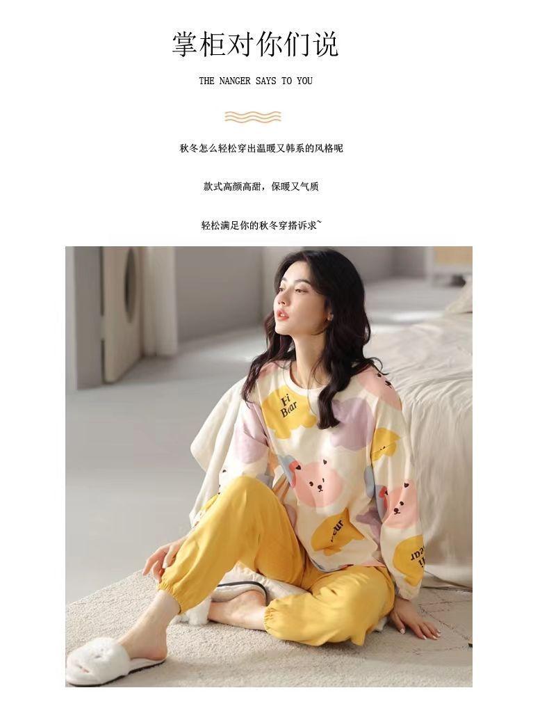 Pijamas de pareja de otoño, pantalones de manga larga para mujer, traje holgado de algodón similar al otoño e invierno para el hogar, venta al por mayor transfronteriza sin impresión