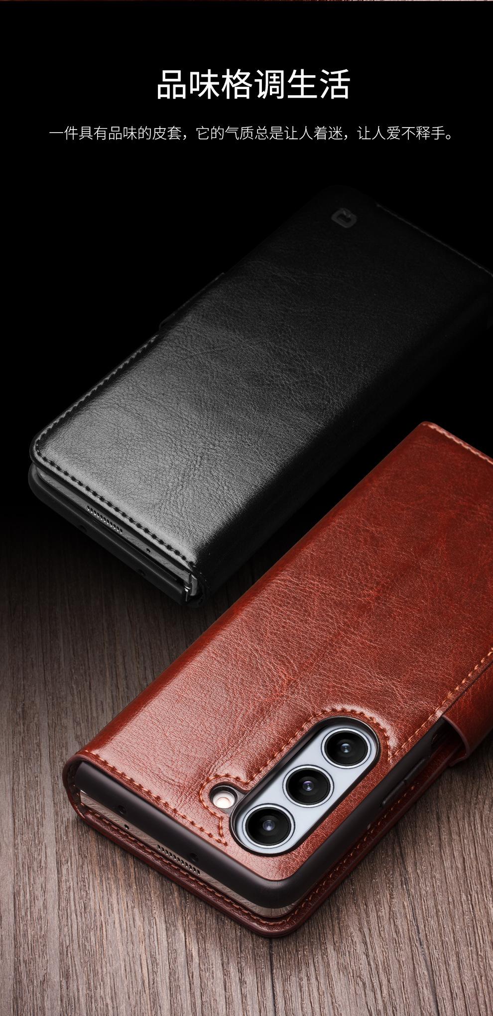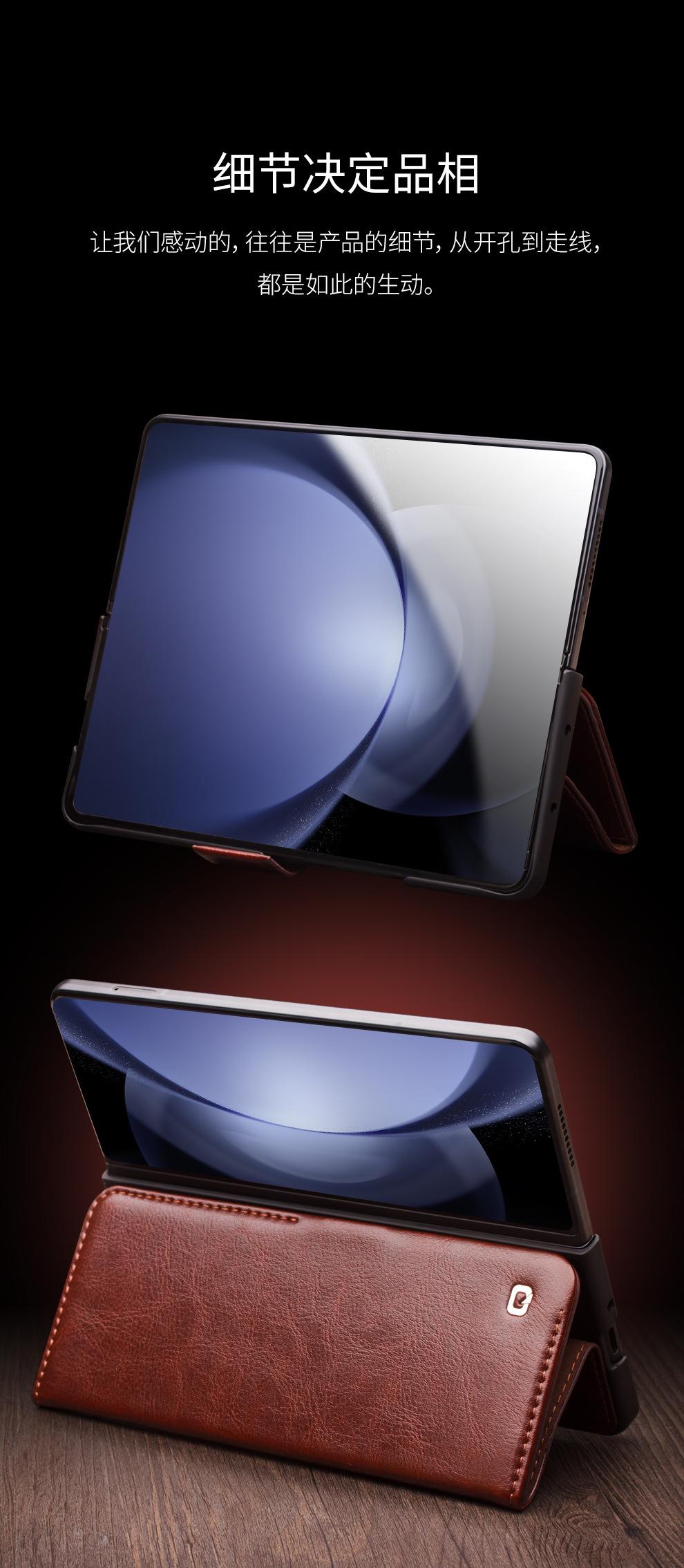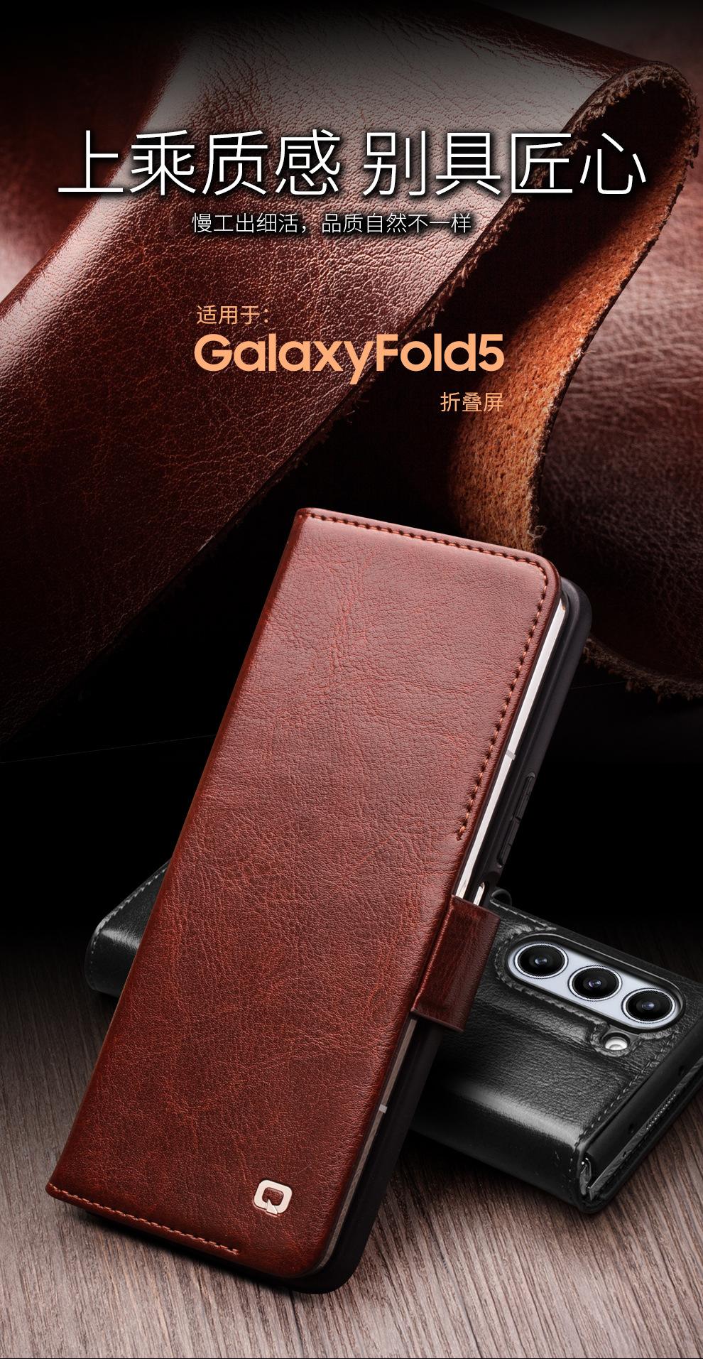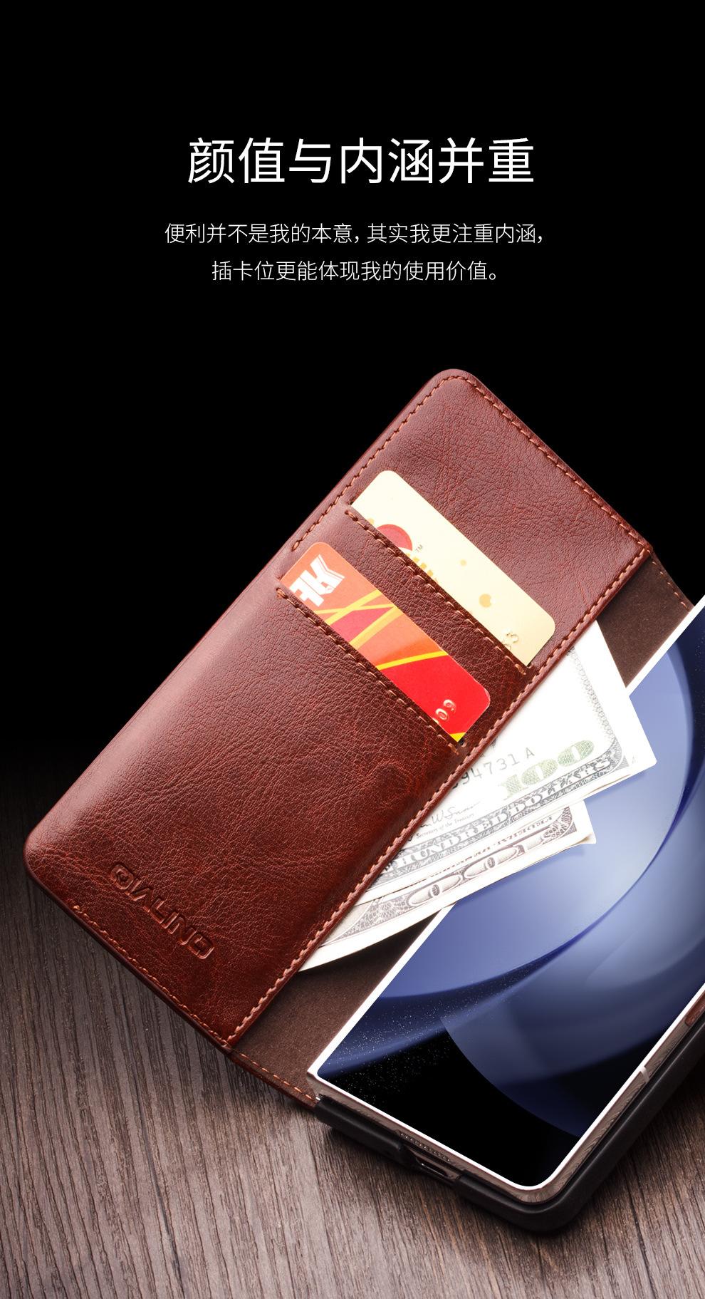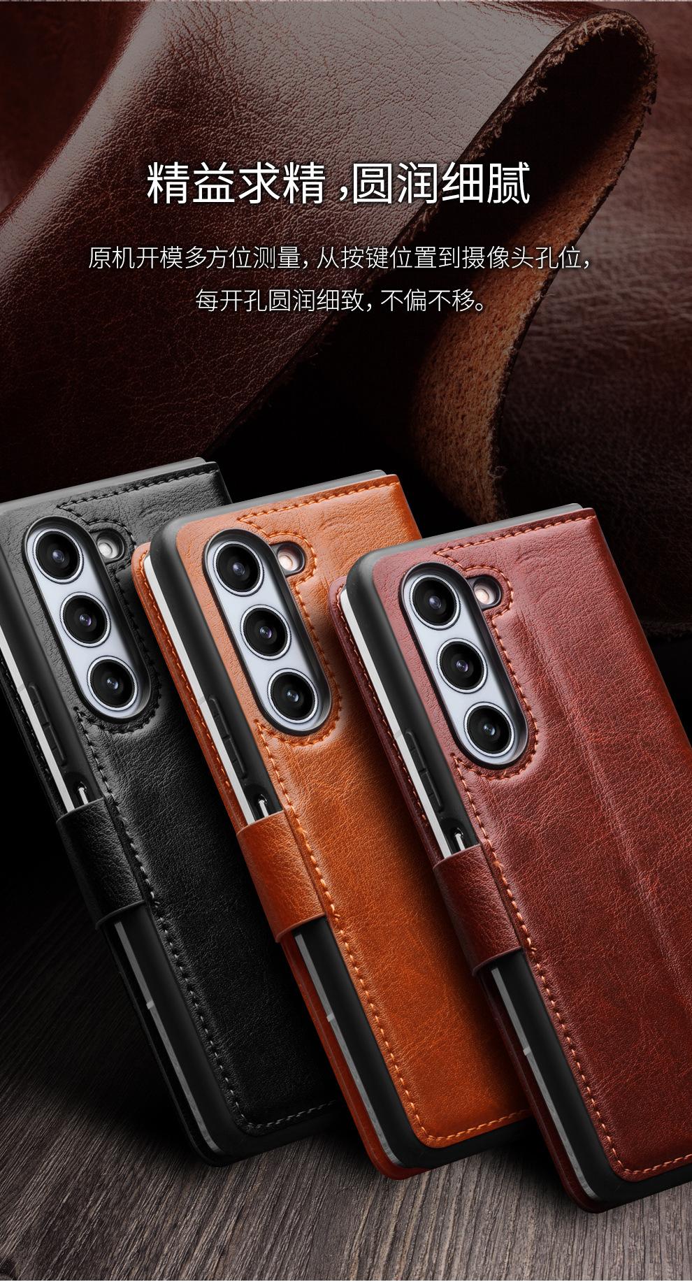 Adecuado para Samsung Z Fold 30% de descuento Pantalla Apilada Cuero Genuino Estuche para Teléfono de Negocios Fold6 Hebilla Flip Tarjeta Cubierta Protectora