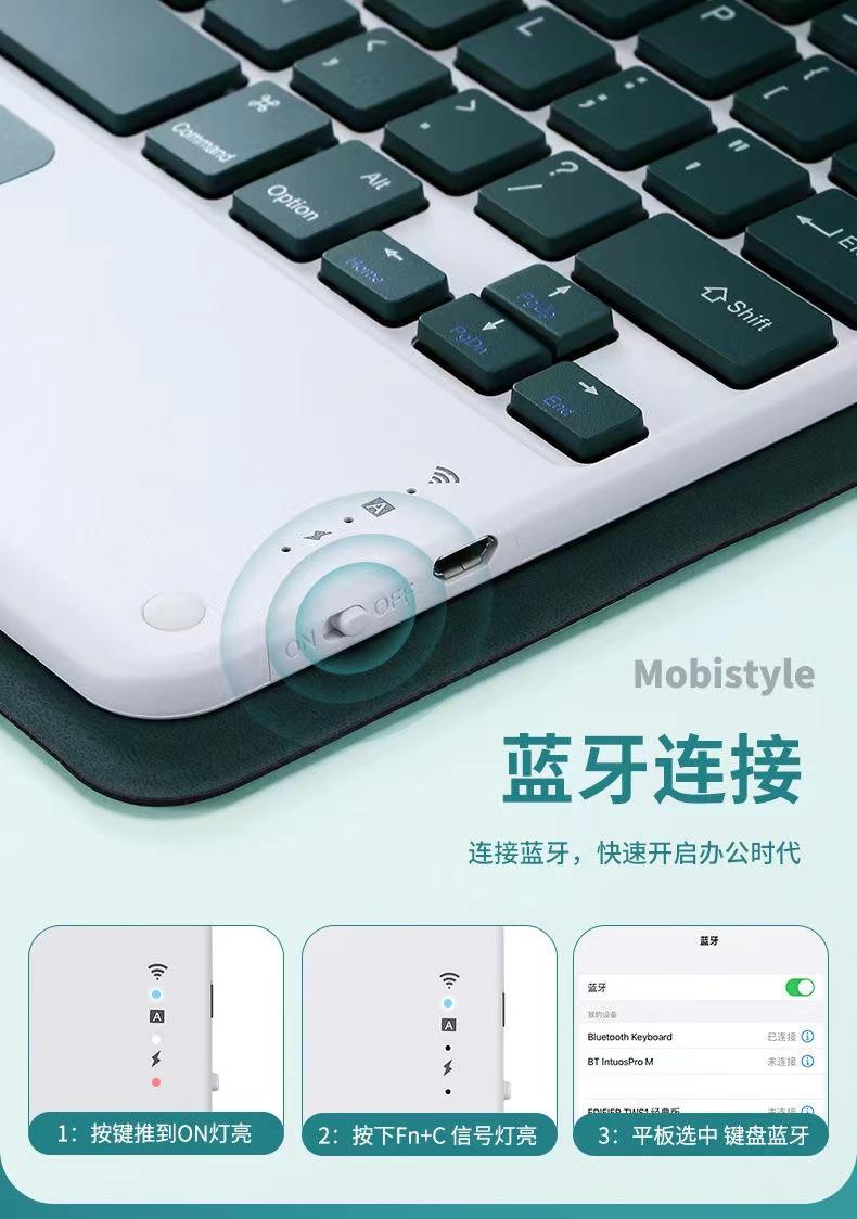Black round hat touch Backlit Keyboard & Dark Night green leather case without Pen slot