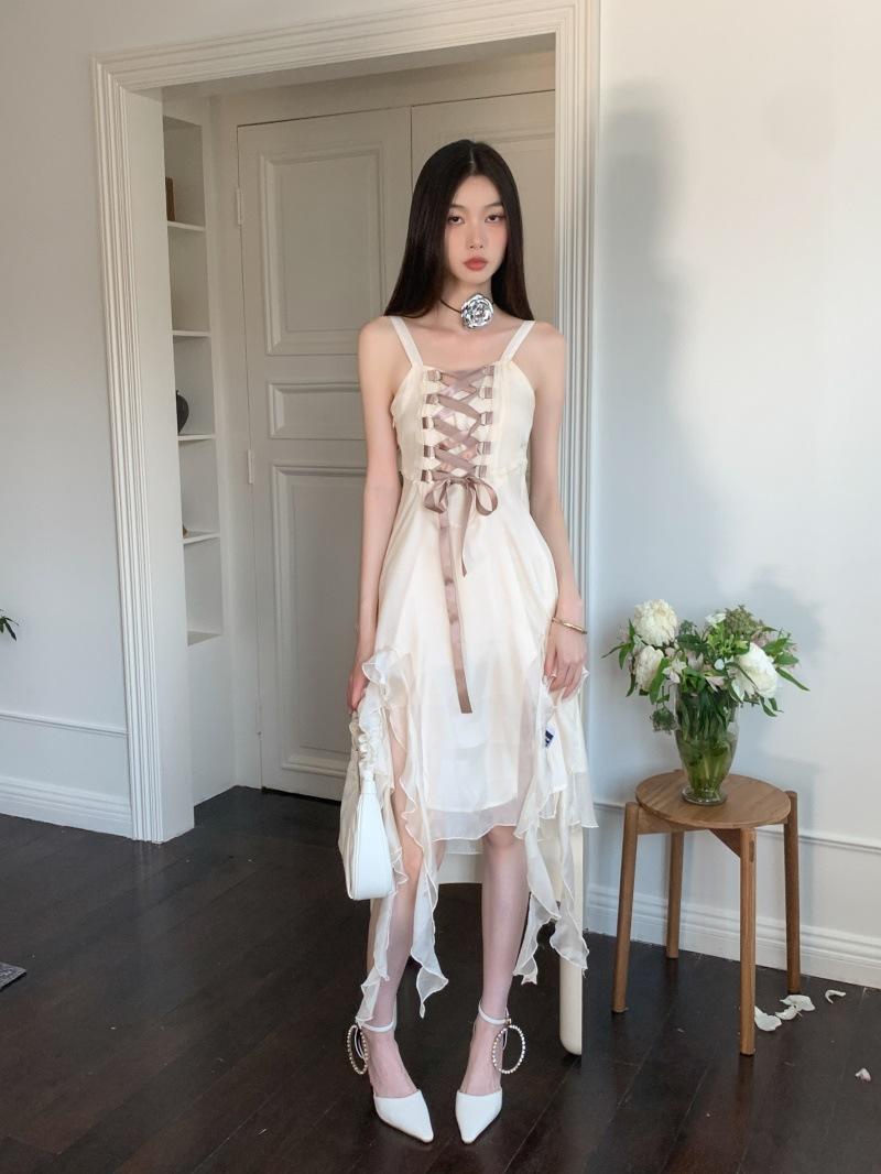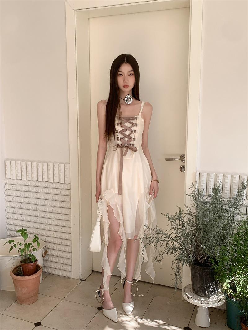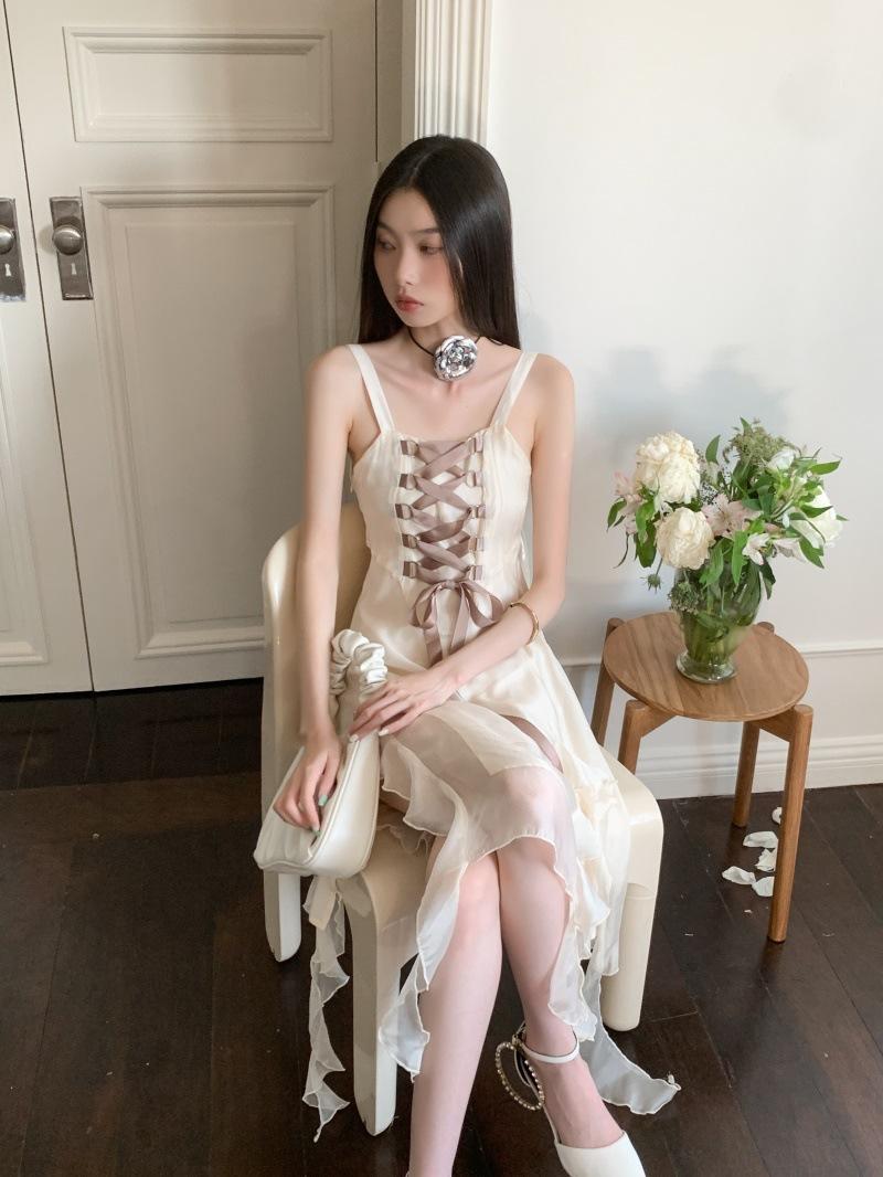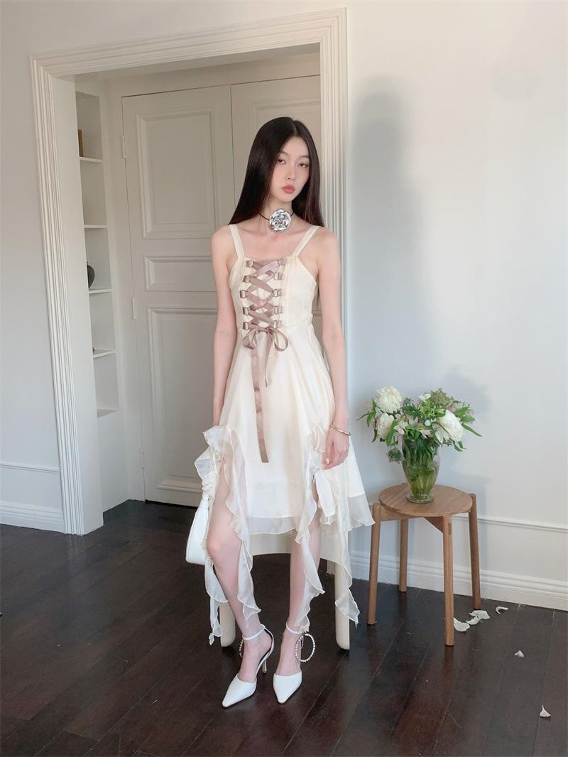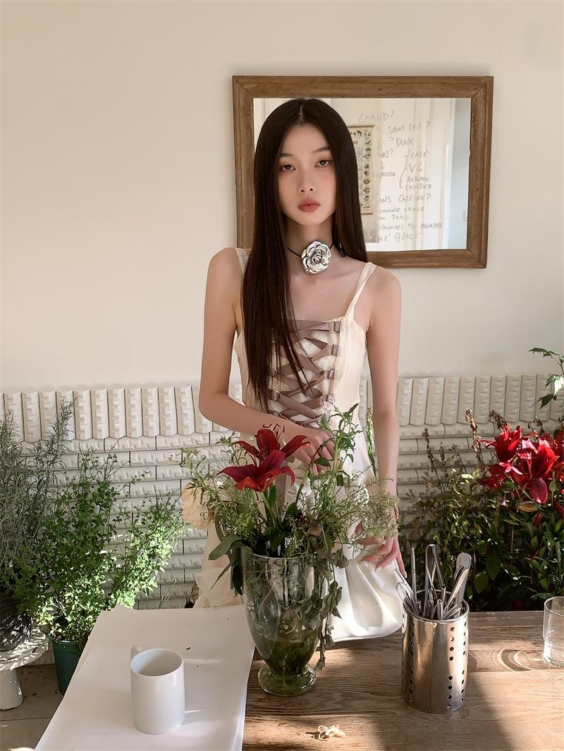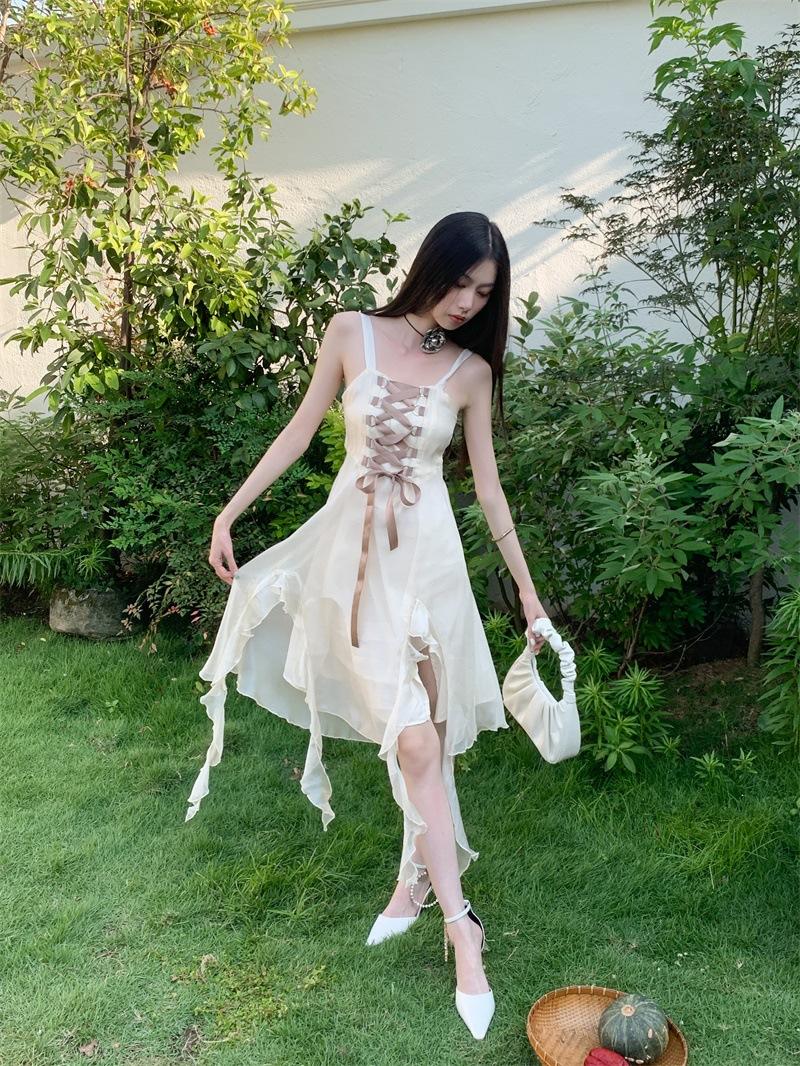 Vestido de tirantes largo para mujer, foto real en el lugar