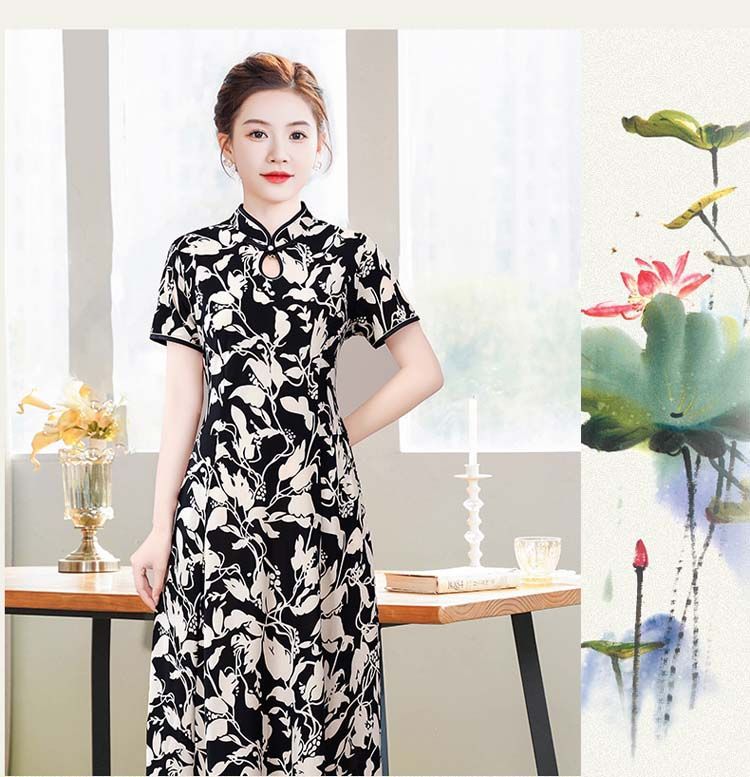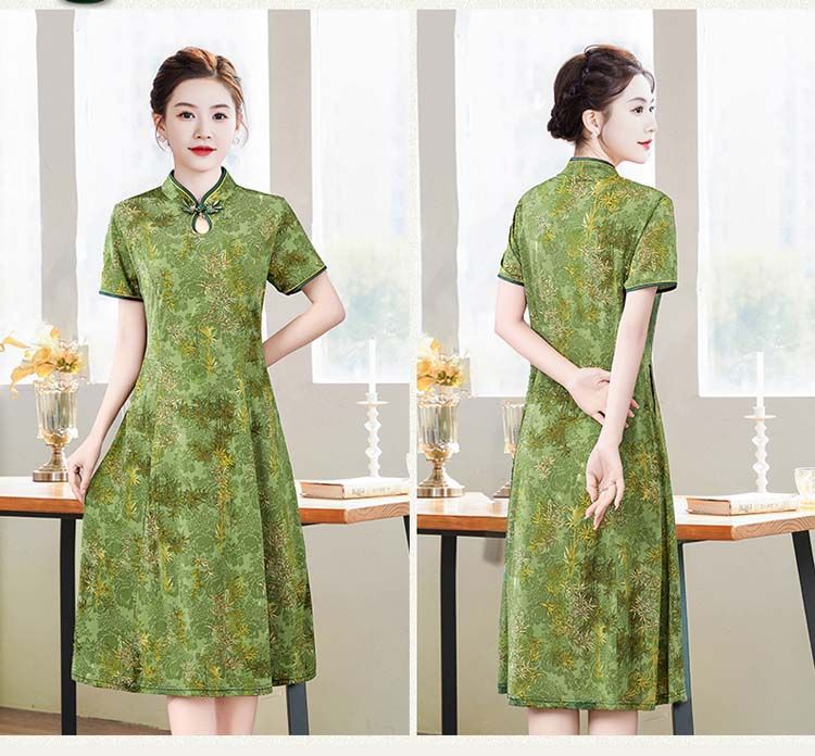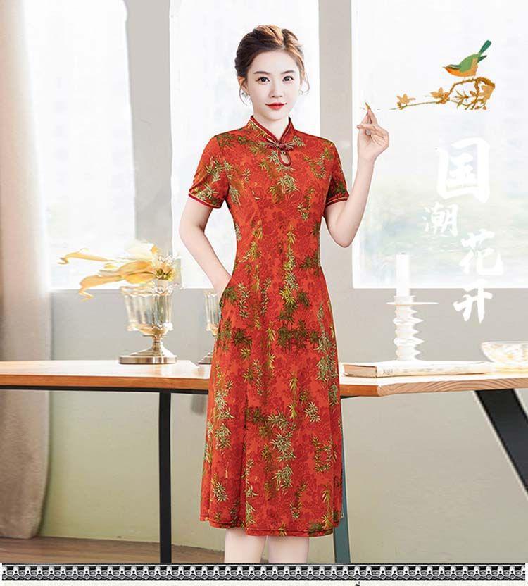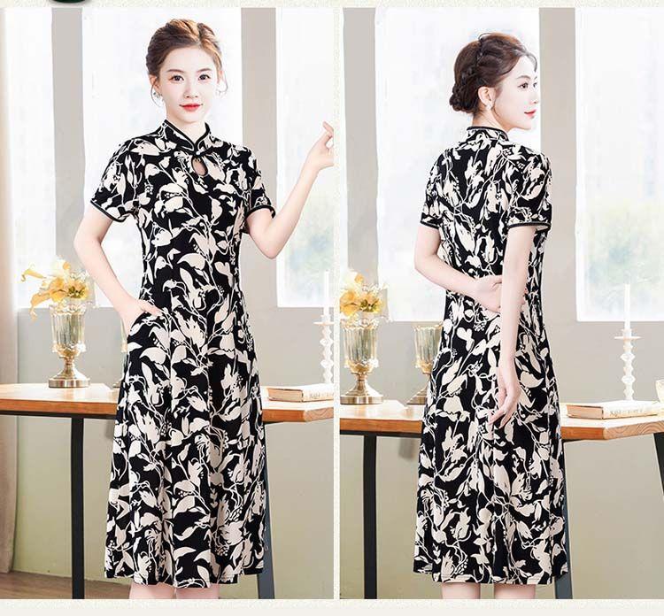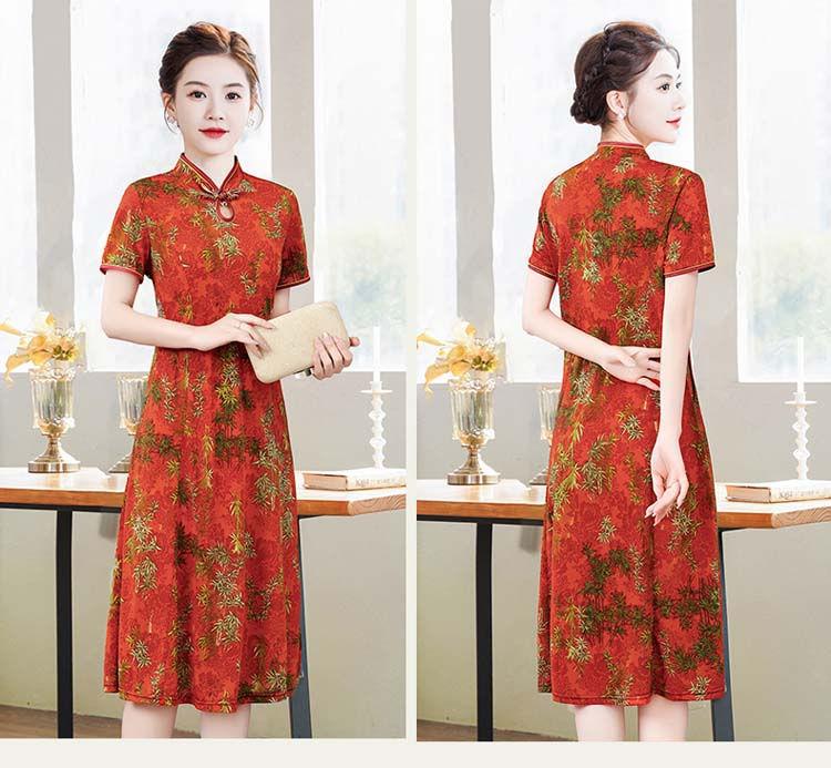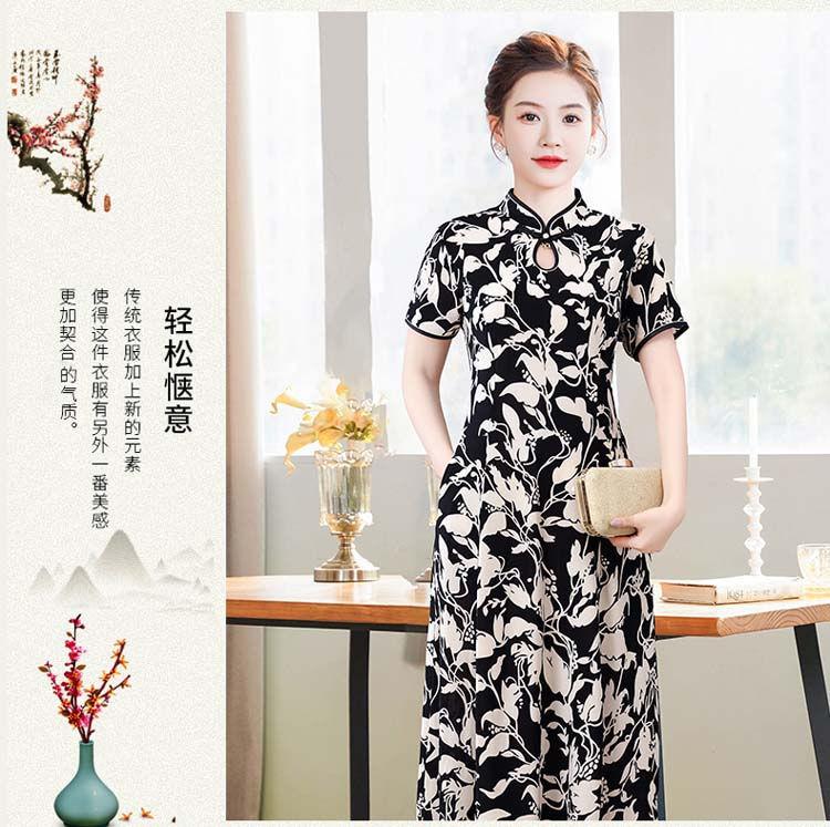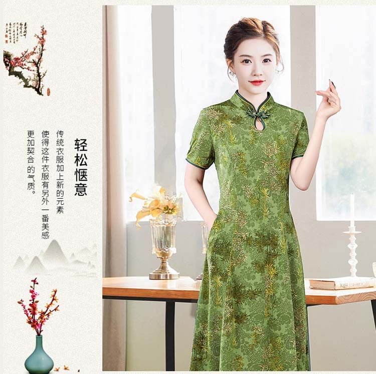 Vestido de verano para madres, vestido cheongsam mejorado, manga corta, retro, novedad de 2024, falda cheongsam, falda para mujeres de mediana edad y mayores.