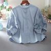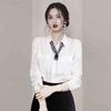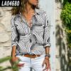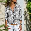 Camisa de manga larga holgada para mujer de Amazon con estampado en blanco y negro fino de primavera 2021