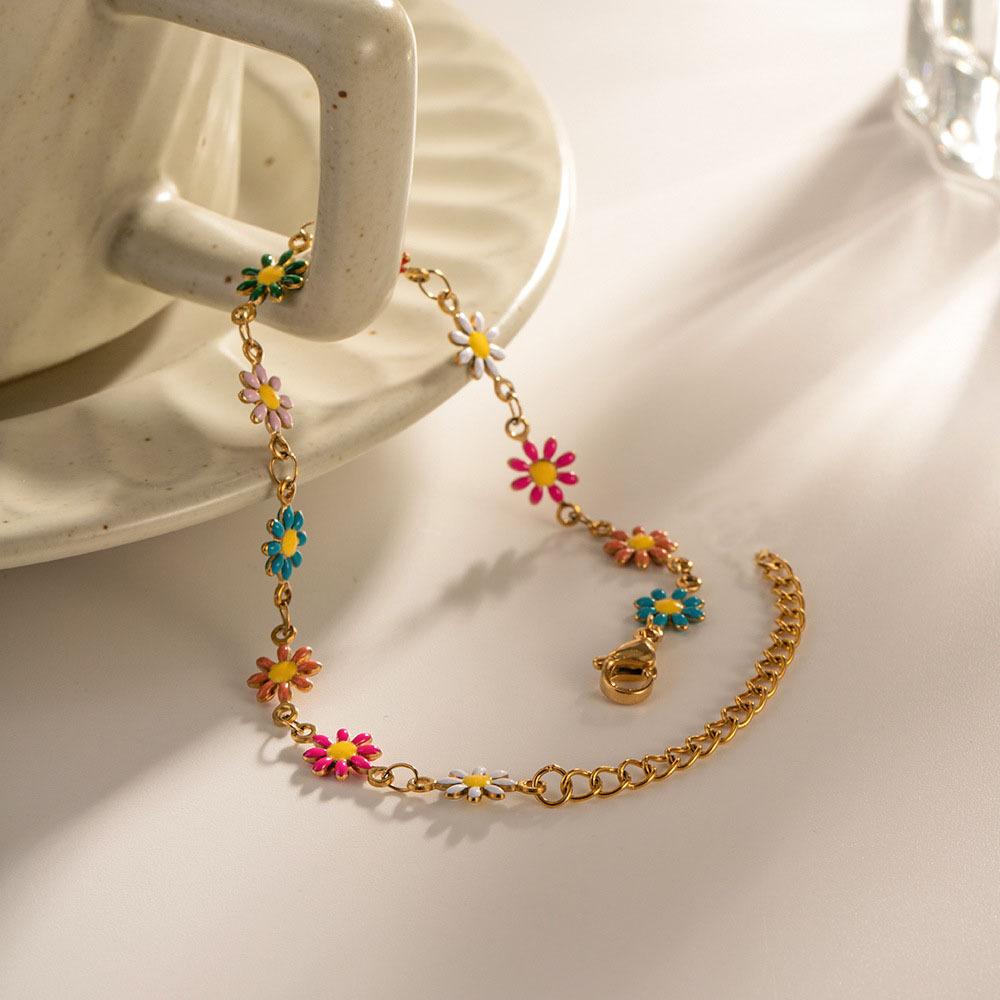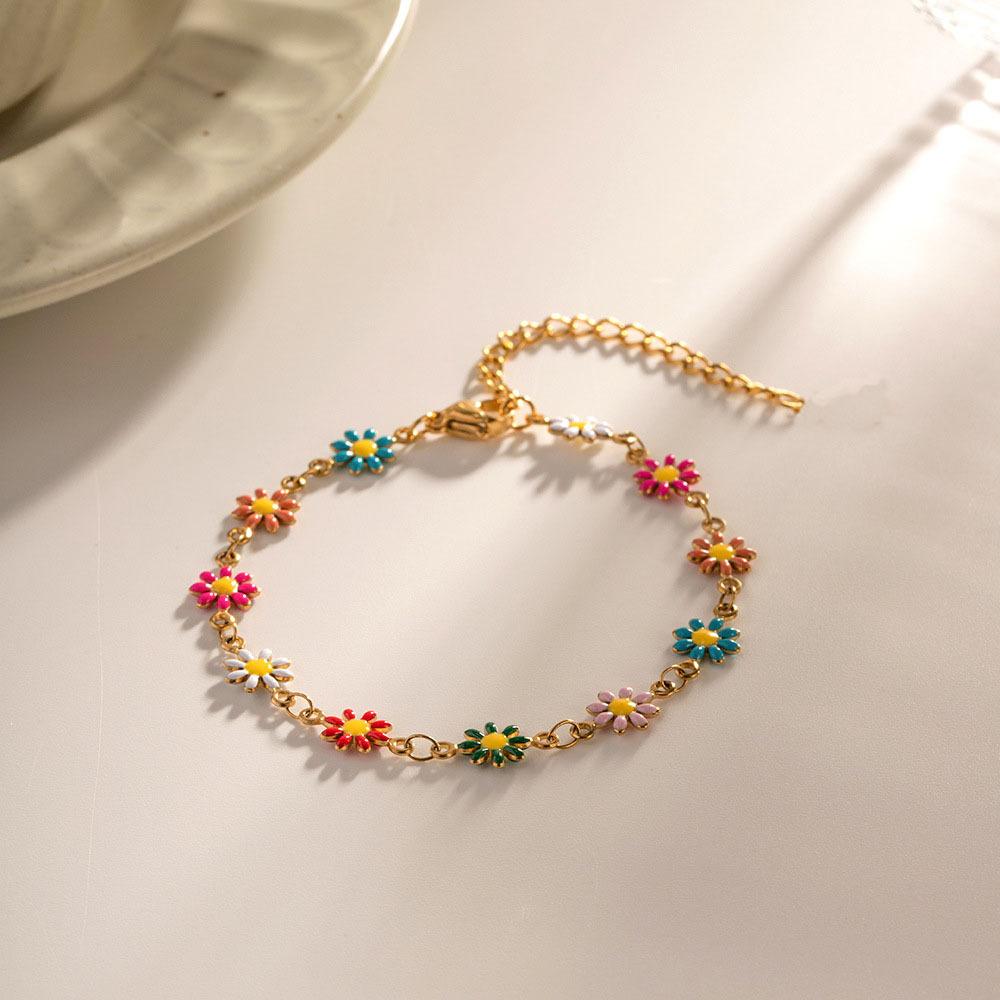 Pulsera de margaritas pequeñas con un toque de color de alta gama que combina con todo, con personalidad dulce y flores pequeñas frescas, venta al por mayor, entre Europa y Estados Unidos.