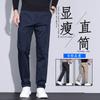 Pantalones casuales de cintura elástica de talla grande para hombre, pantalones finos de primavera y otoño para hombre, pantalones rectos con caída a la moda que combinan con todo.