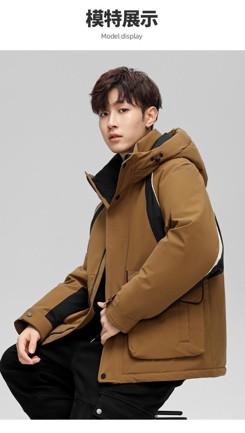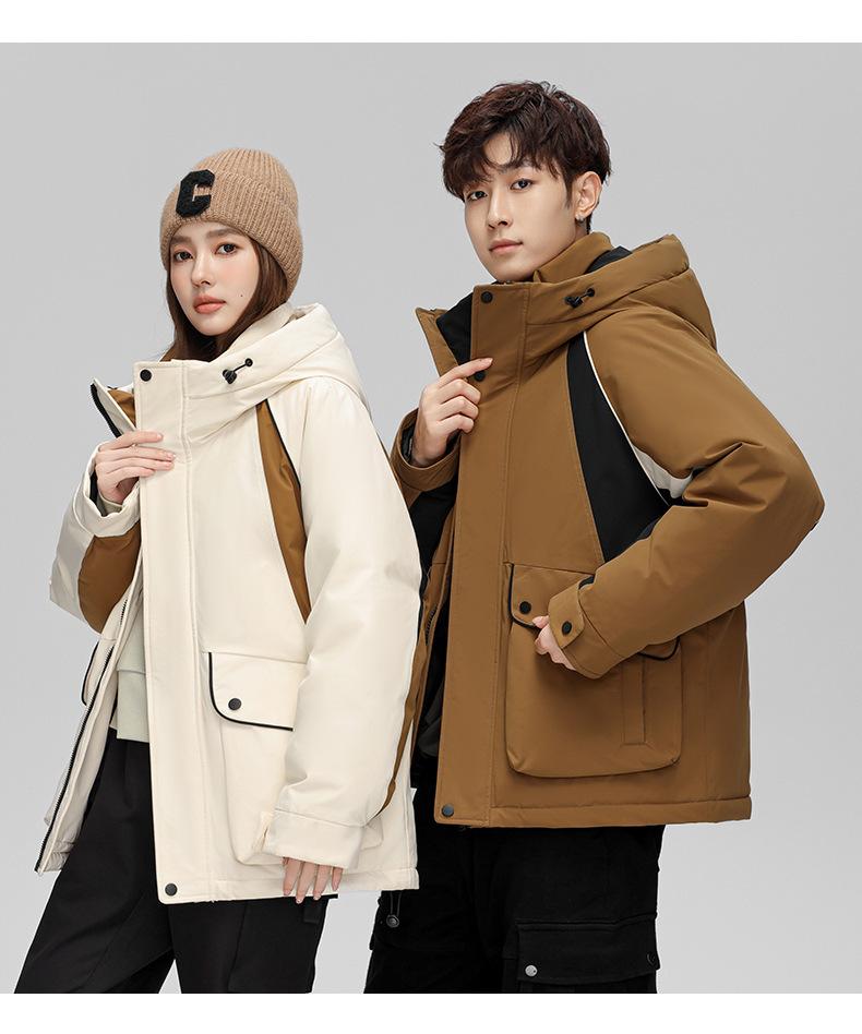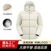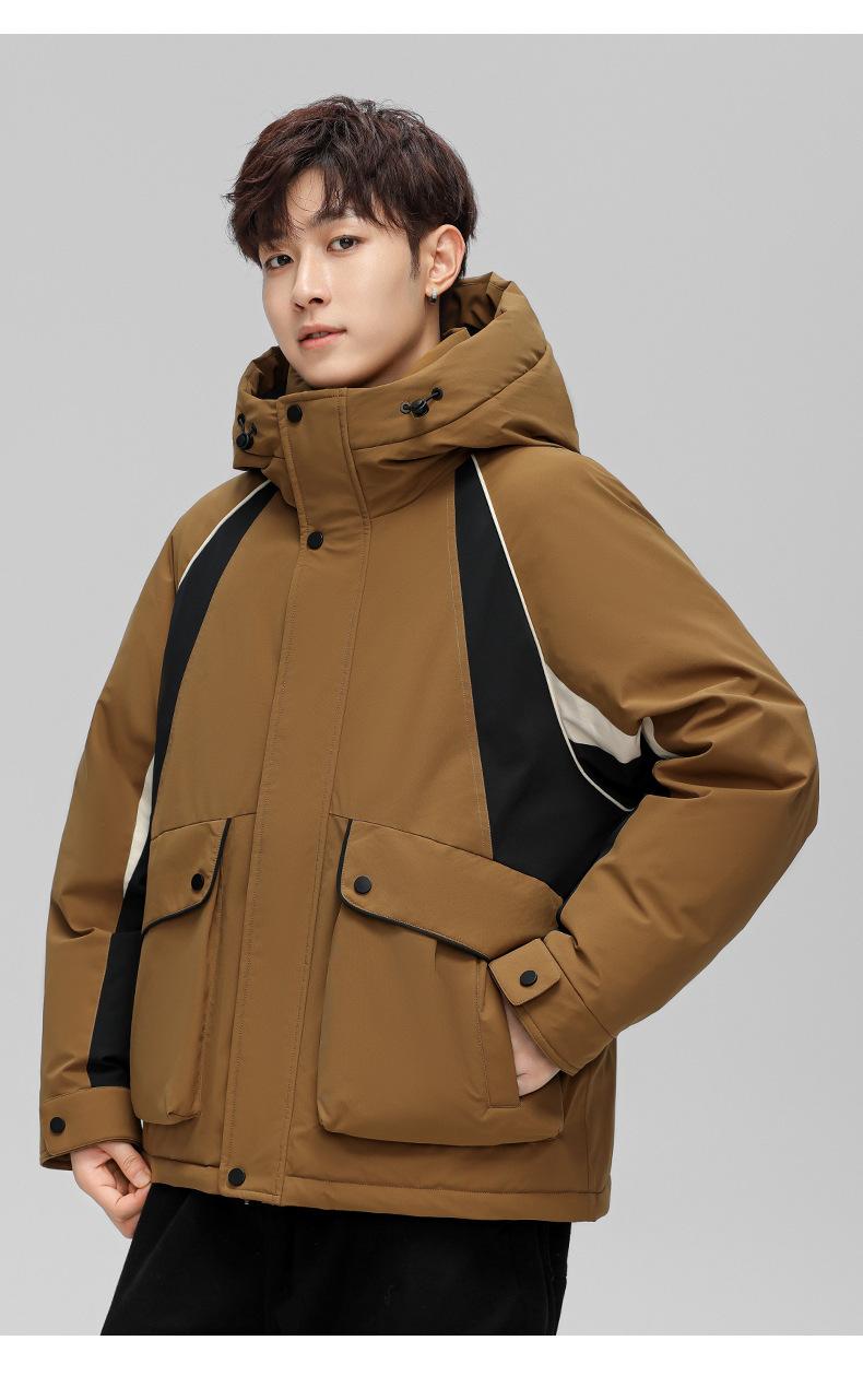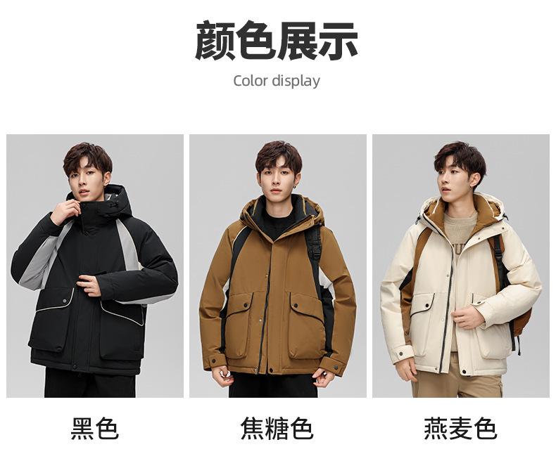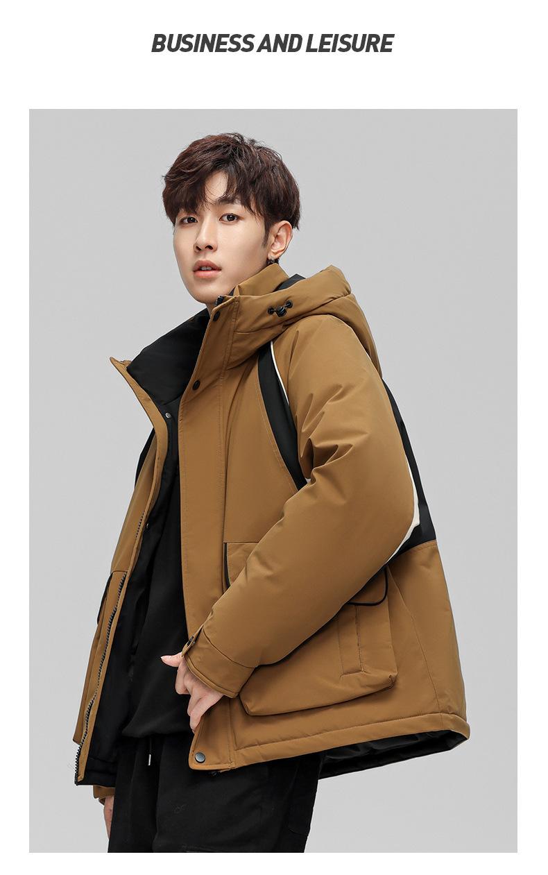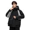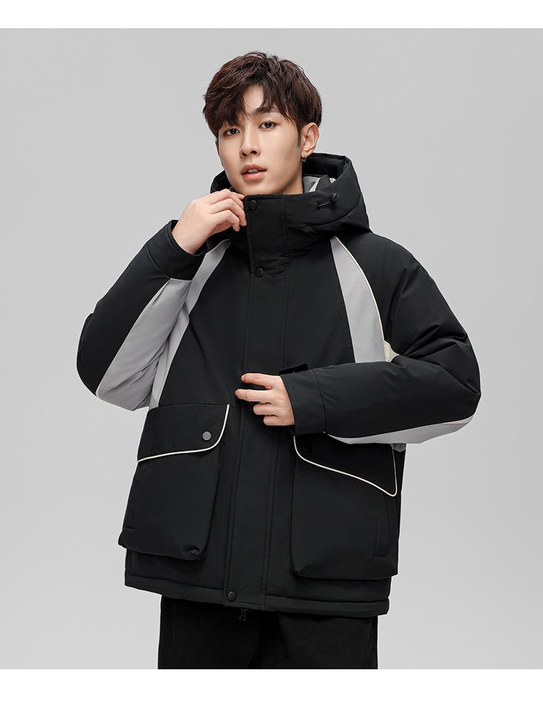 Chamarra de plumón de pato blanco 90 de cuello medio alto invierno marca estadounidense de moda empalmado chamarra de plumón para hombre adolescentes pareja top con capucha