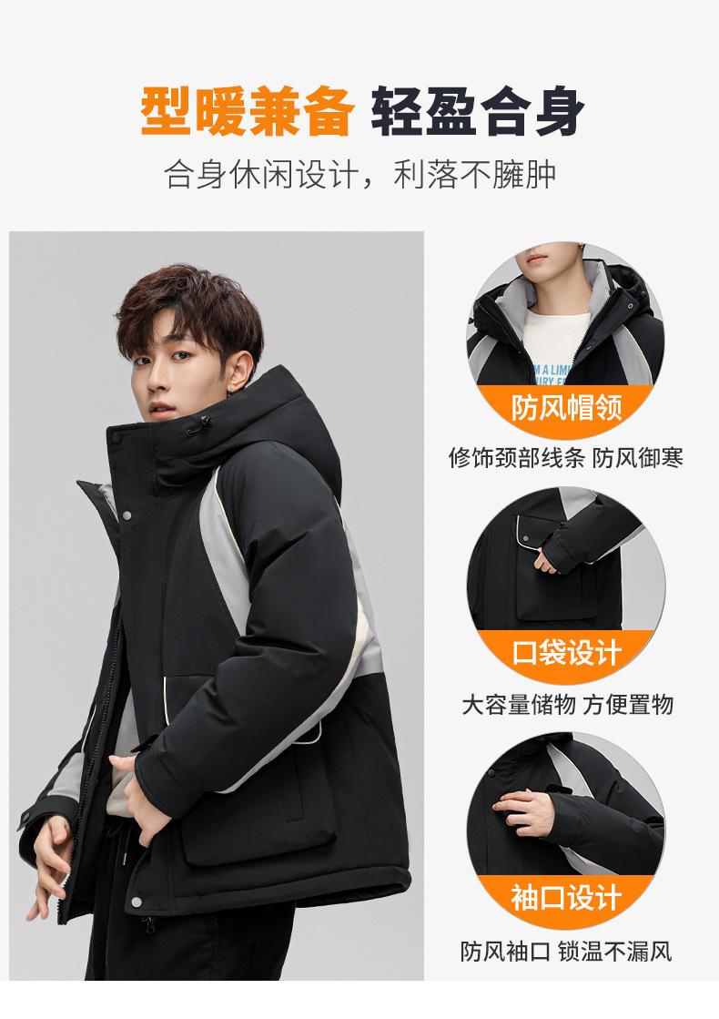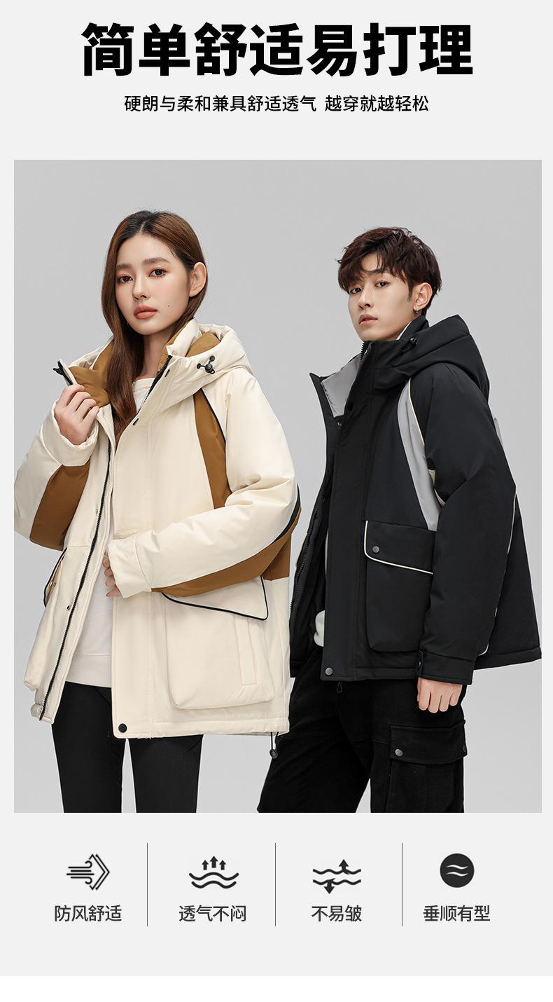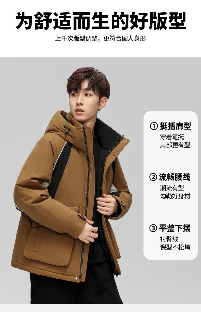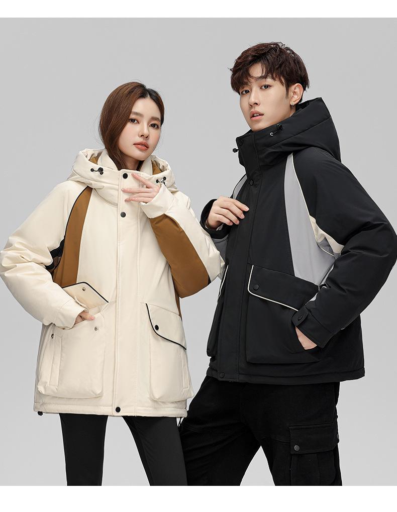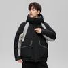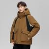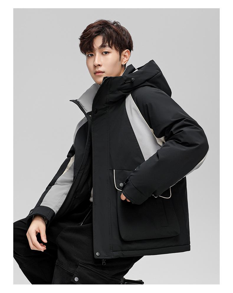 Chamarra de plumón de pato blanco 90 de cuello medio alto invierno marca estadounidense de moda empalmado chamarra de plumón para hombre adolescentes pareja top con capucha