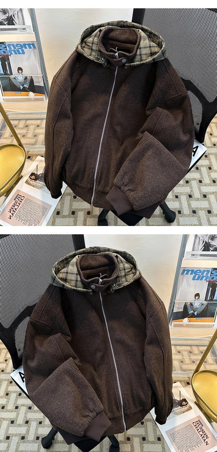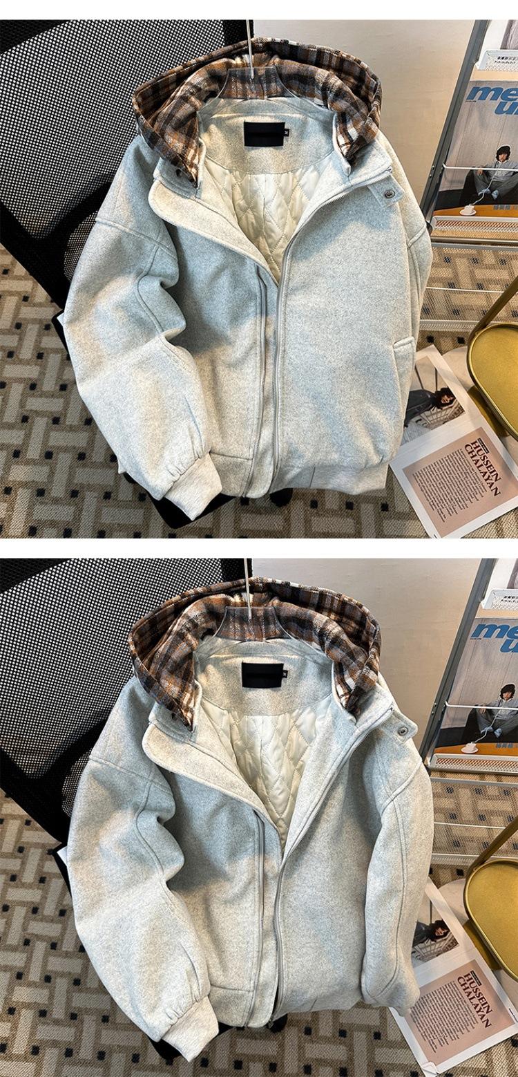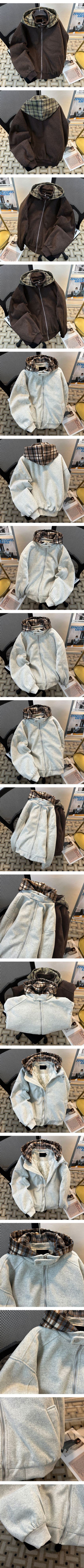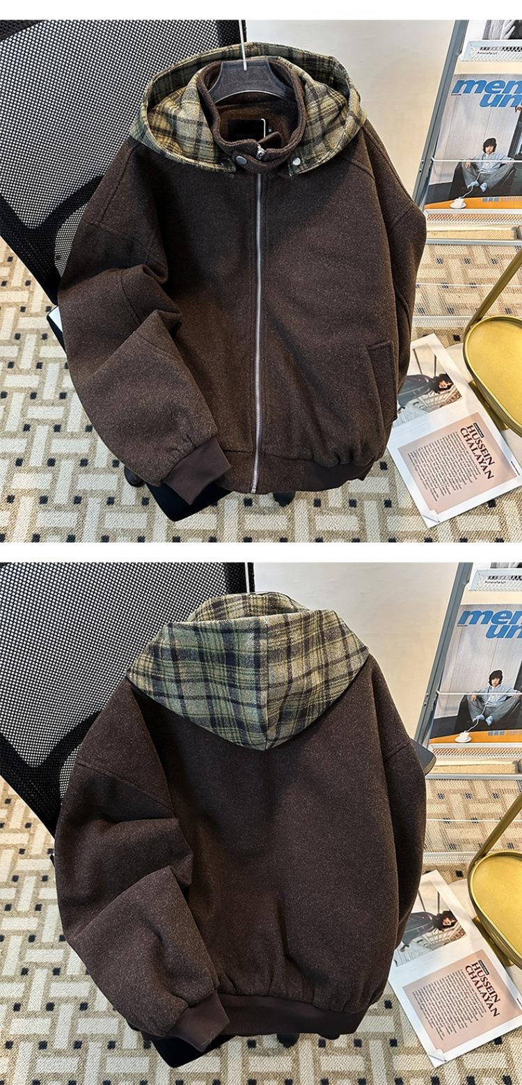 Chaqueta acolchada de algodón con capucha y cuadros escoceses de dos piezas, estilo americano, otoño e invierno 2024, para hombre y mujer, con cremallera urbana retro.