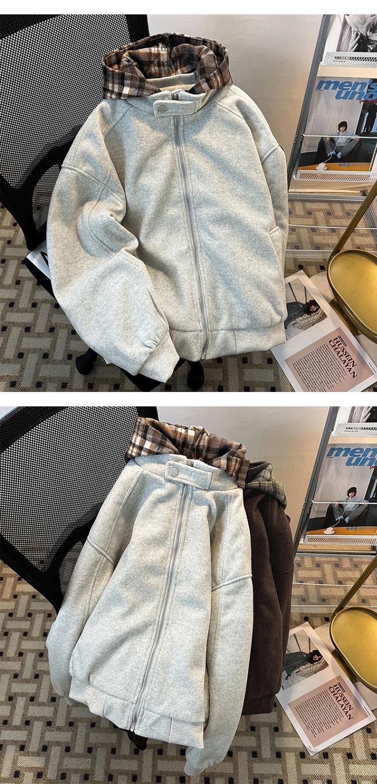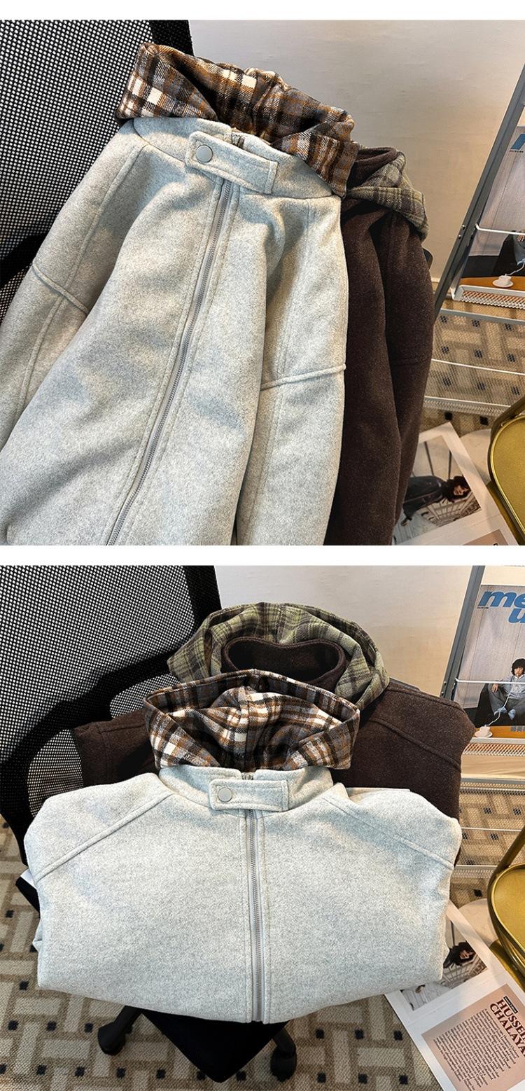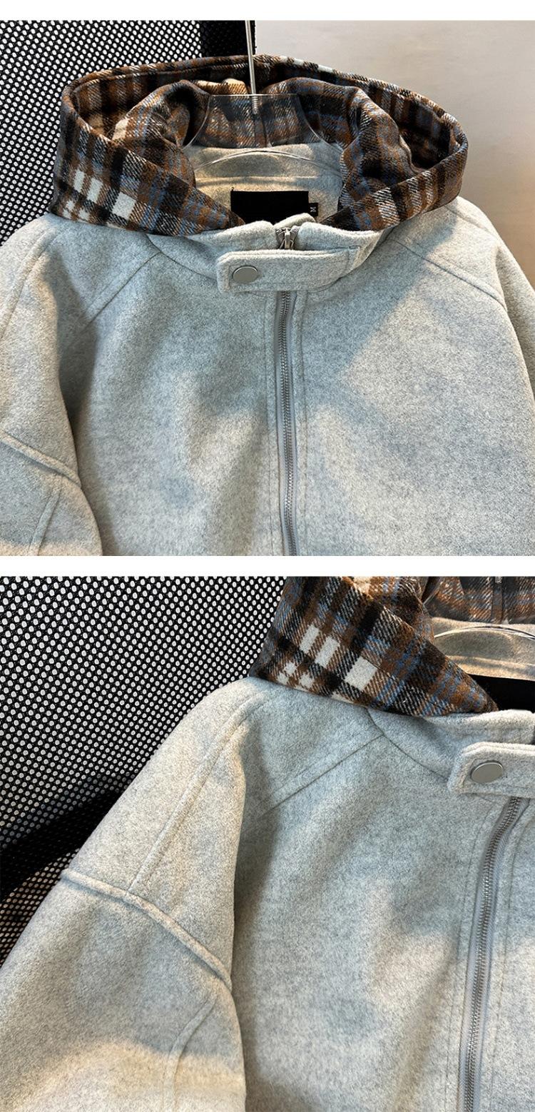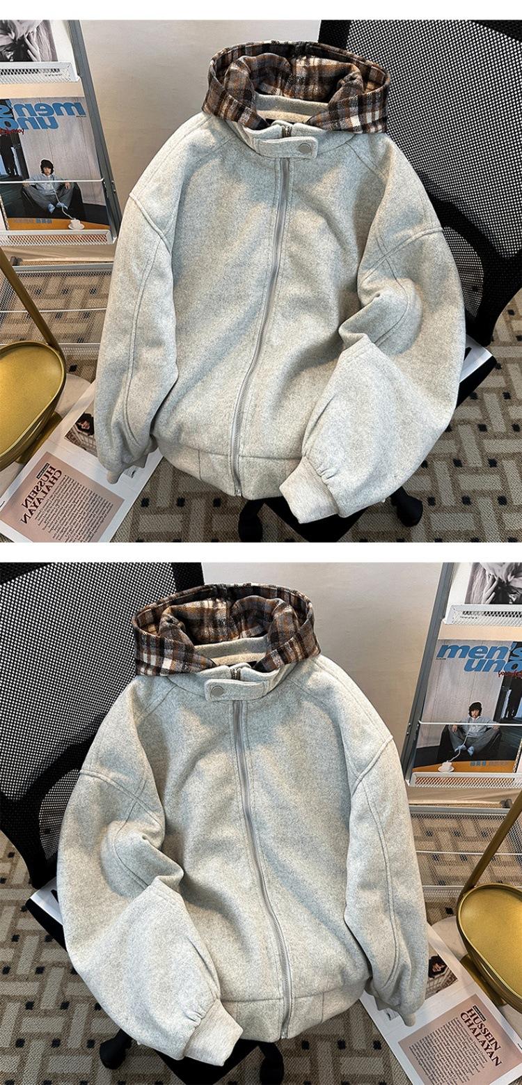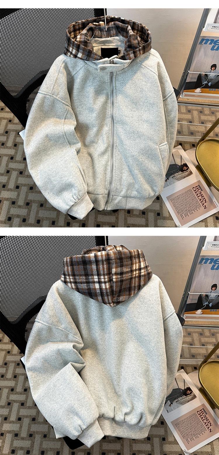 Chaqueta acolchada de algodón con capucha y cuadros escoceses de dos piezas, estilo americano, otoño e invierno 2024, para hombre y mujer, con cremallera urbana retro.