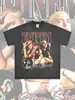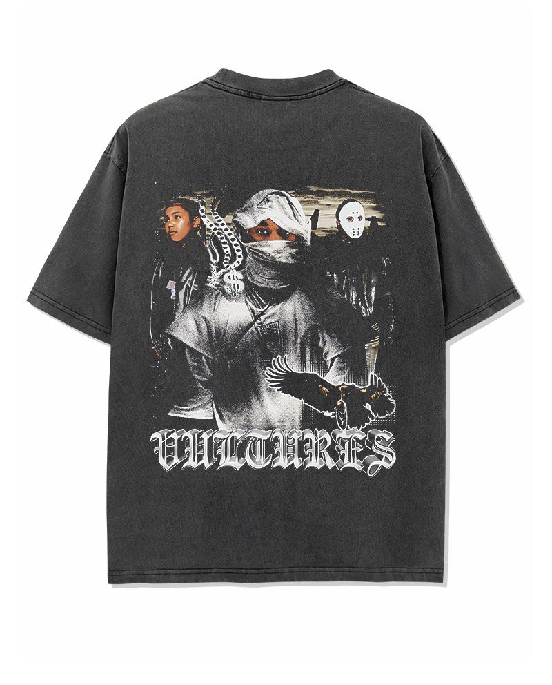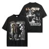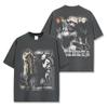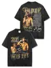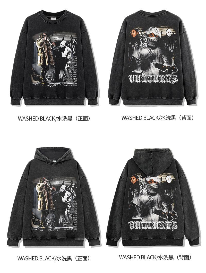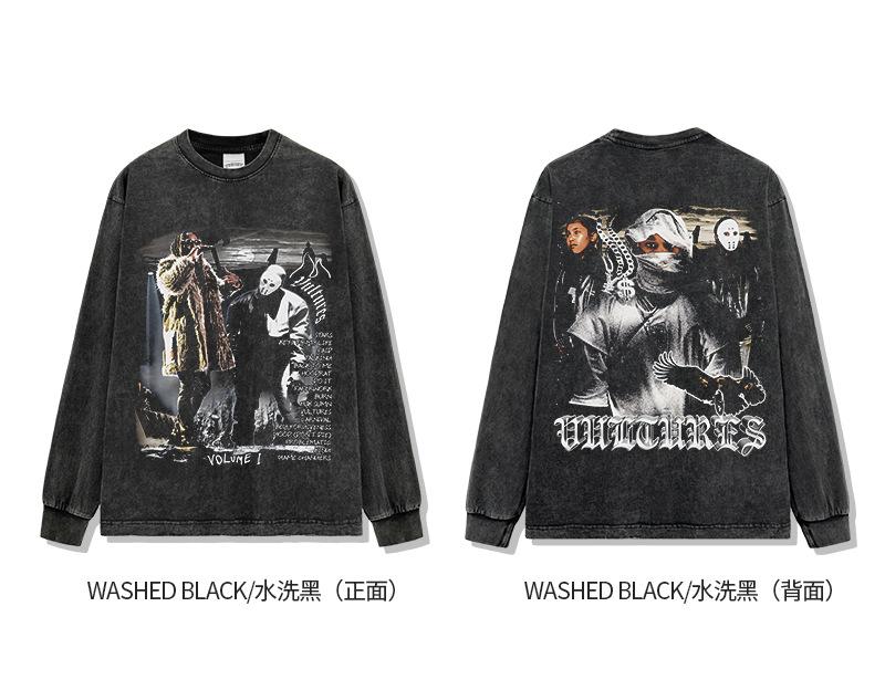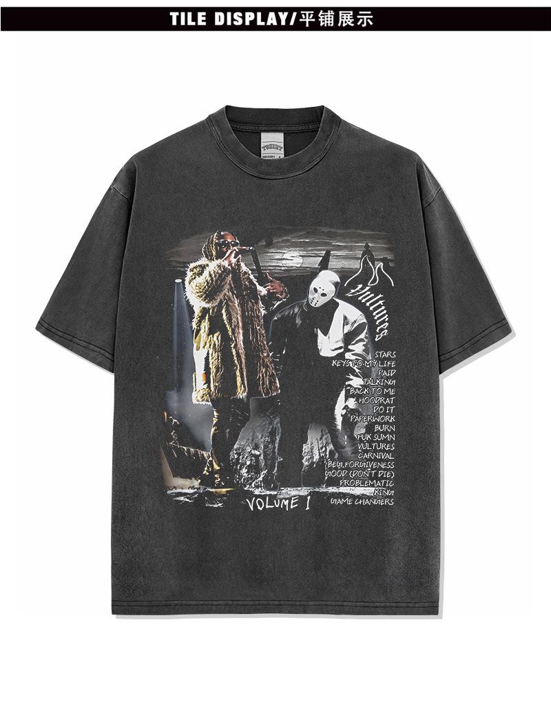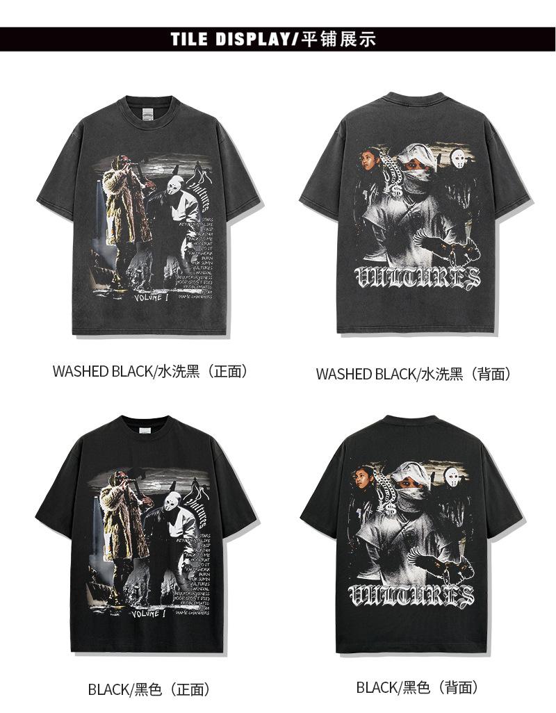 Camiseta de manga corta lavada con estampado de Kanye West, estilo hip-hop transfronterizo estadounidense, sudadera informal con cuello redondo y capucha para hombre